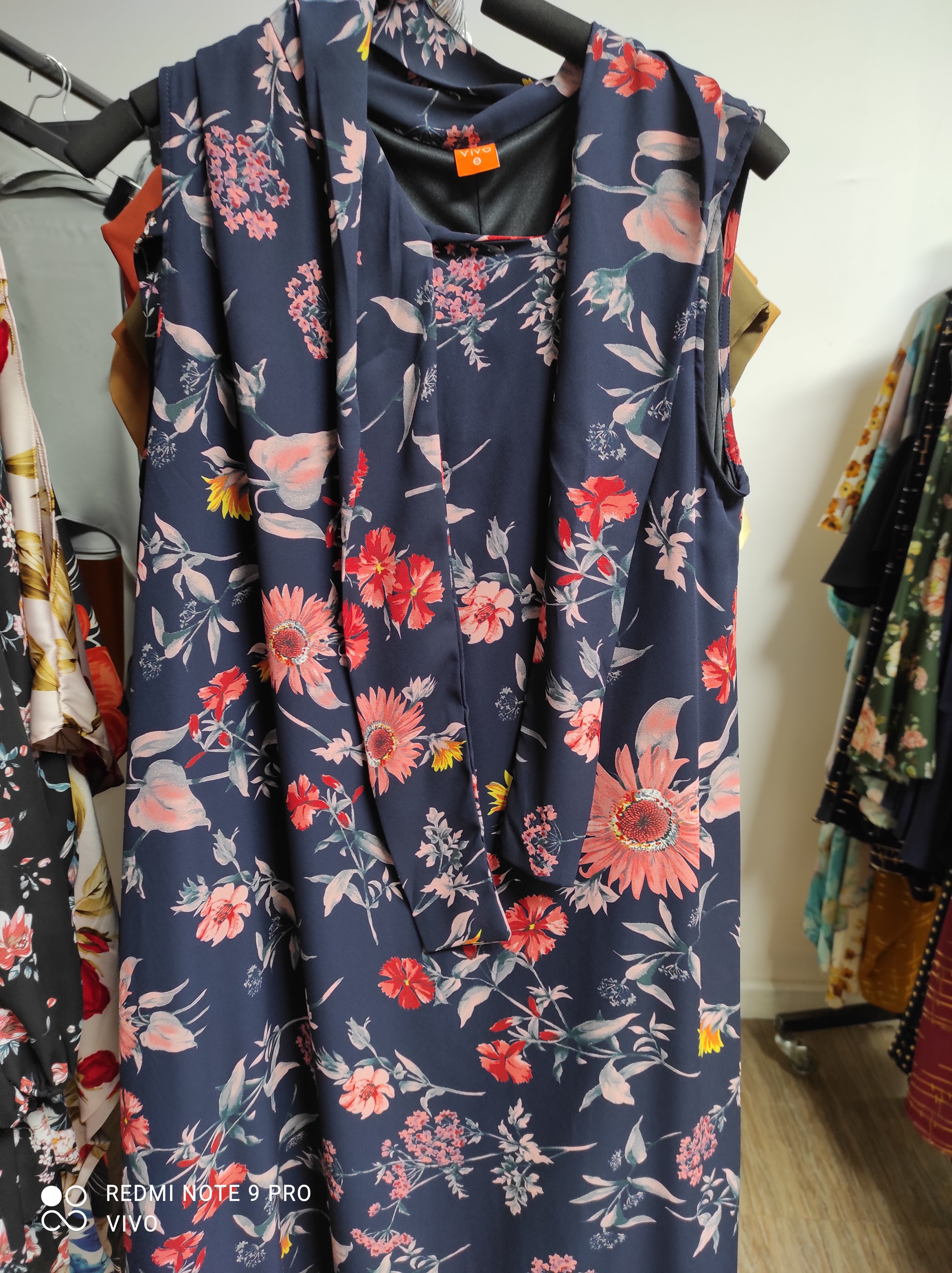 Vivo Bissa Sleeveless Knee Length Tent Dress - Navy / Pink Print