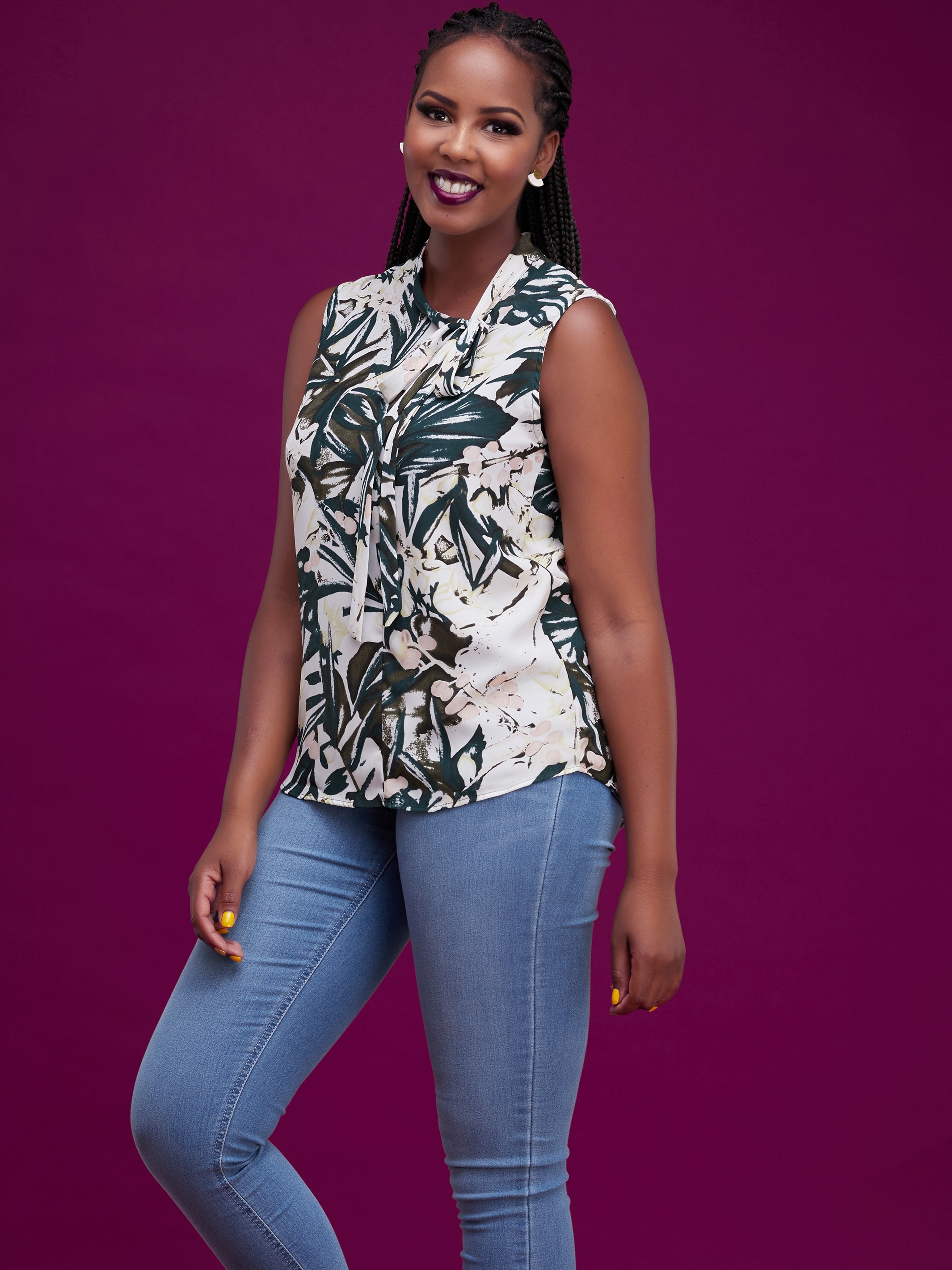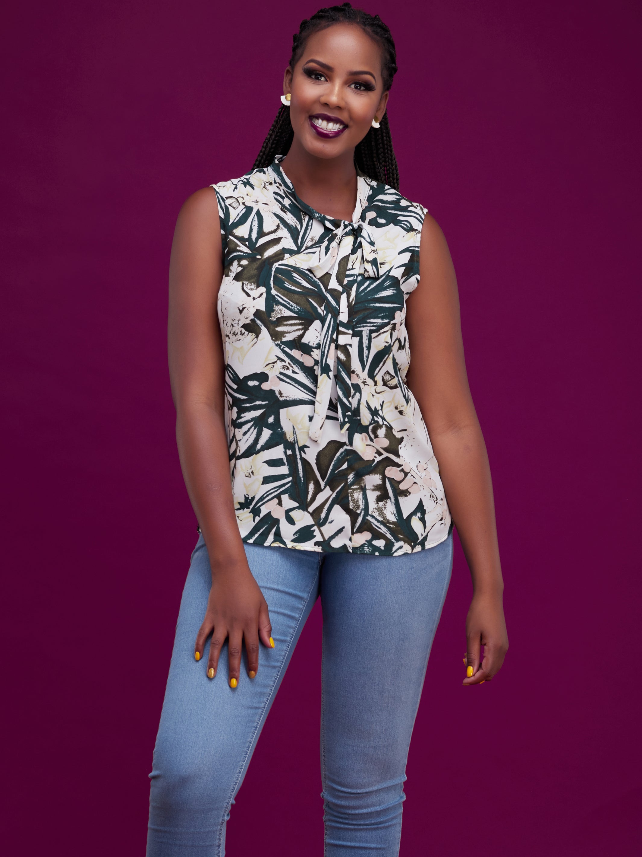 Vivo Bissa Sleeveless Side Bow Top - Green Print