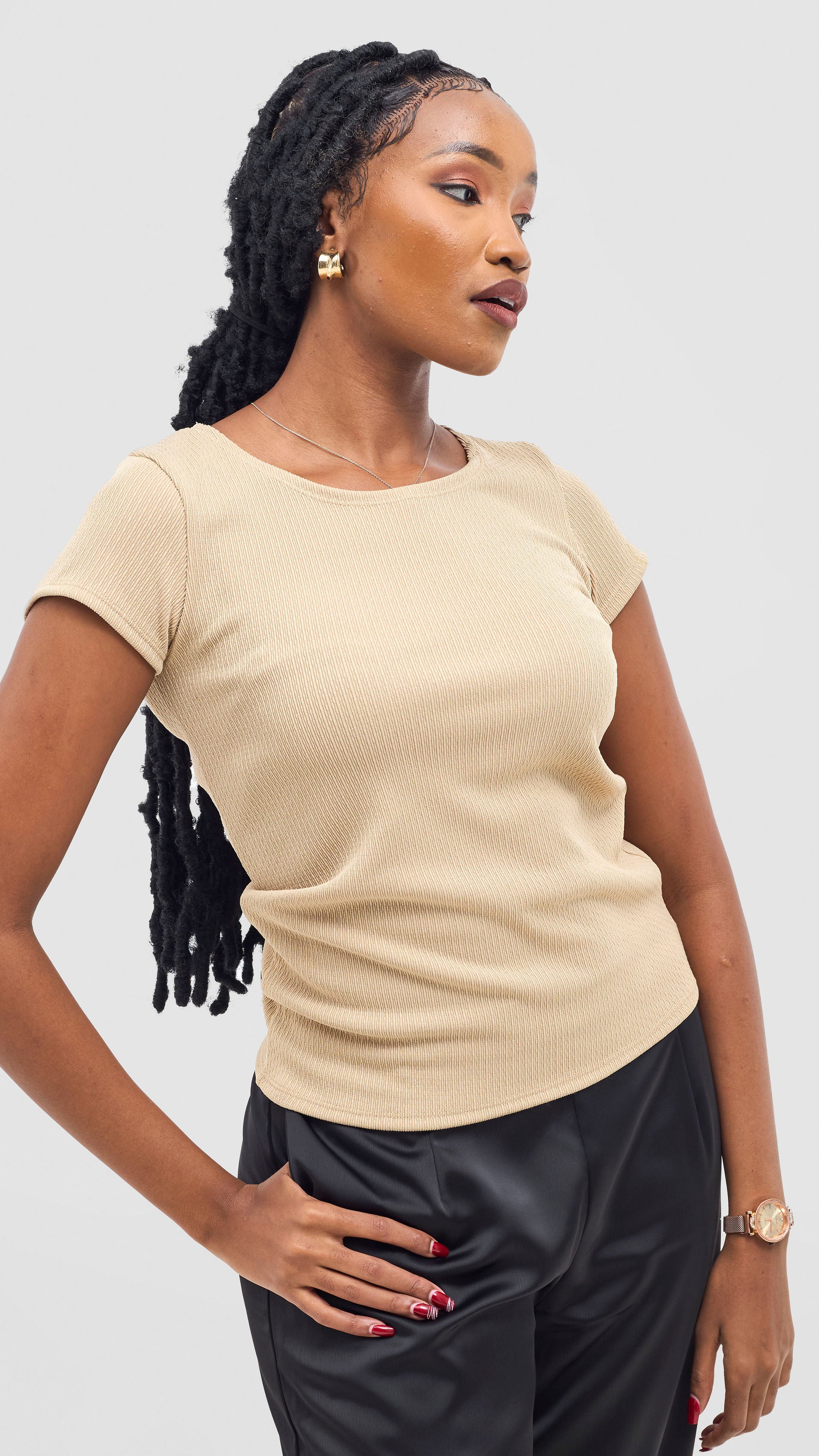 Vivo Chela Basic Cap Sleeve Top - Taupe