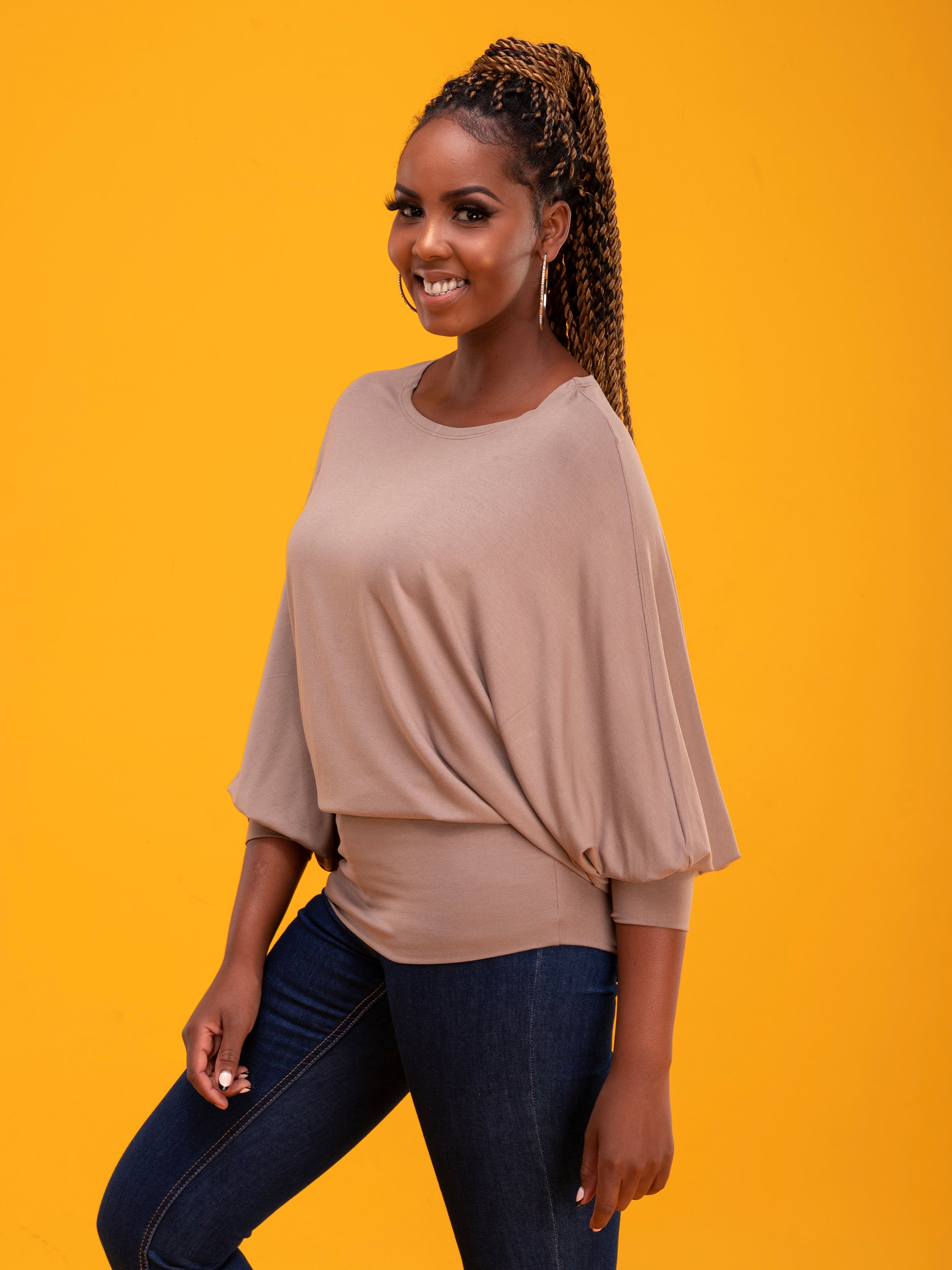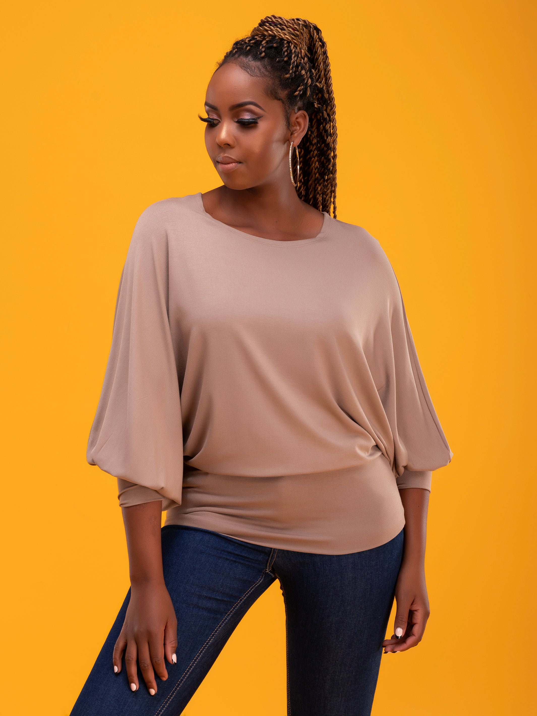Vivo Cora Dolman Cuffed Top - Taupe