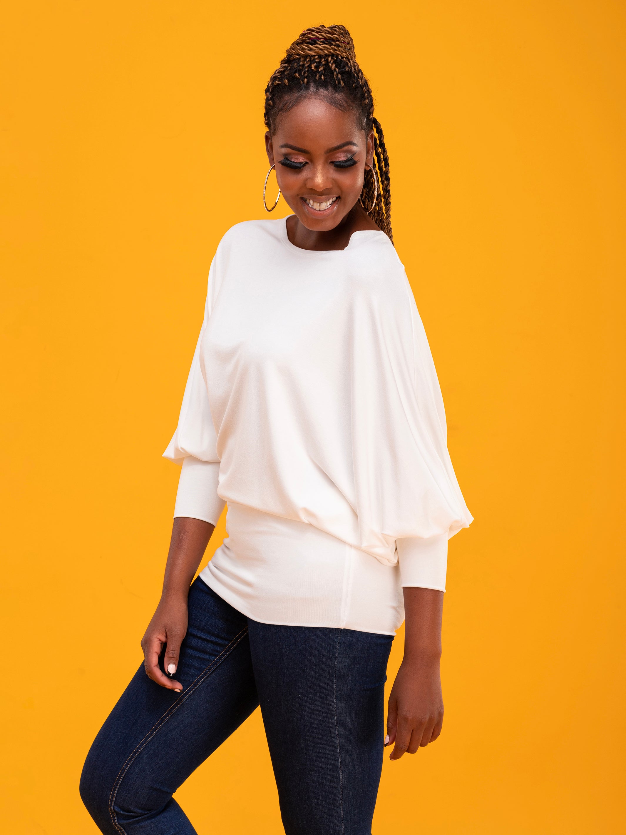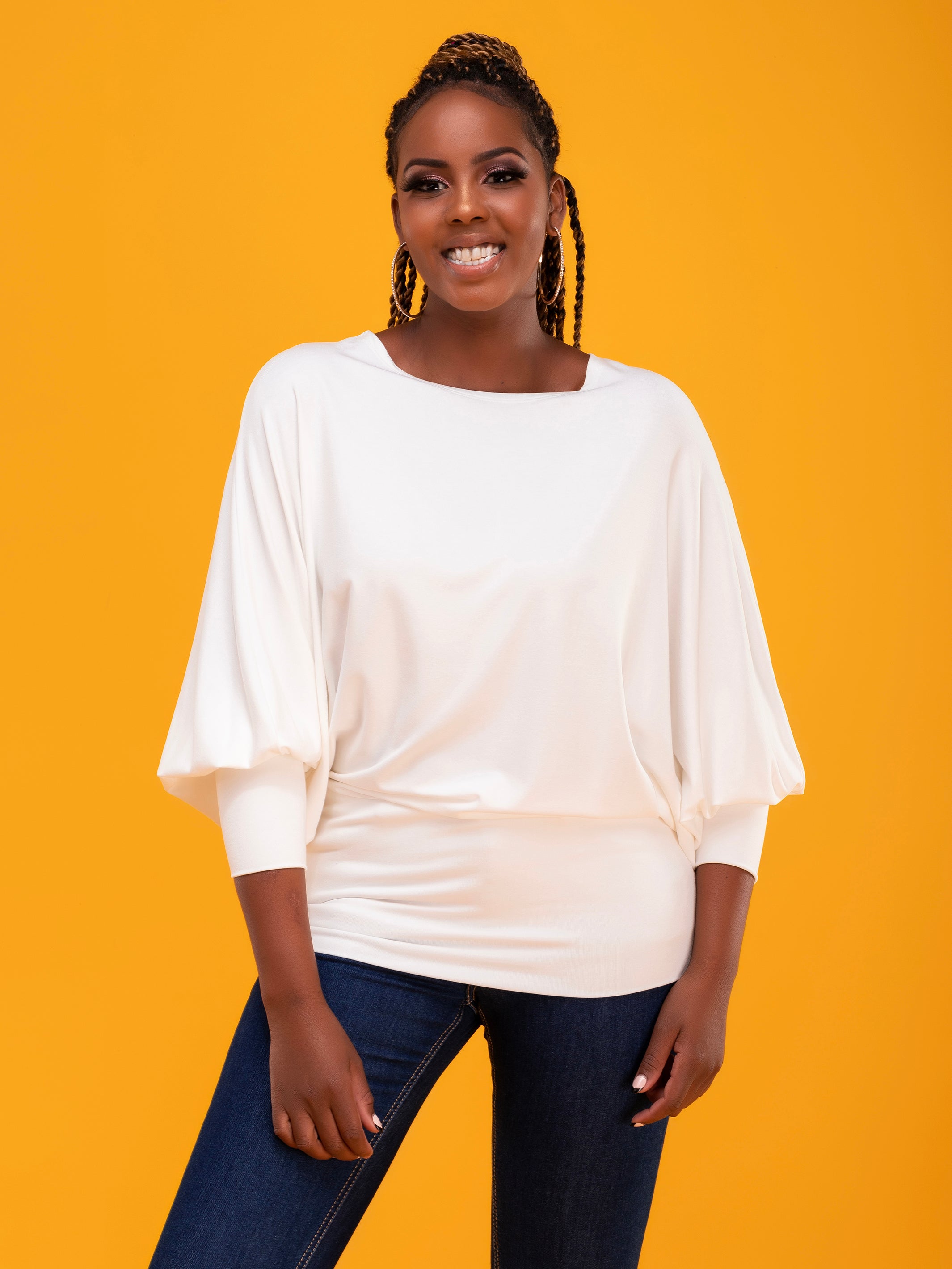 Vivo Cora Dolman Cuffed Top - White