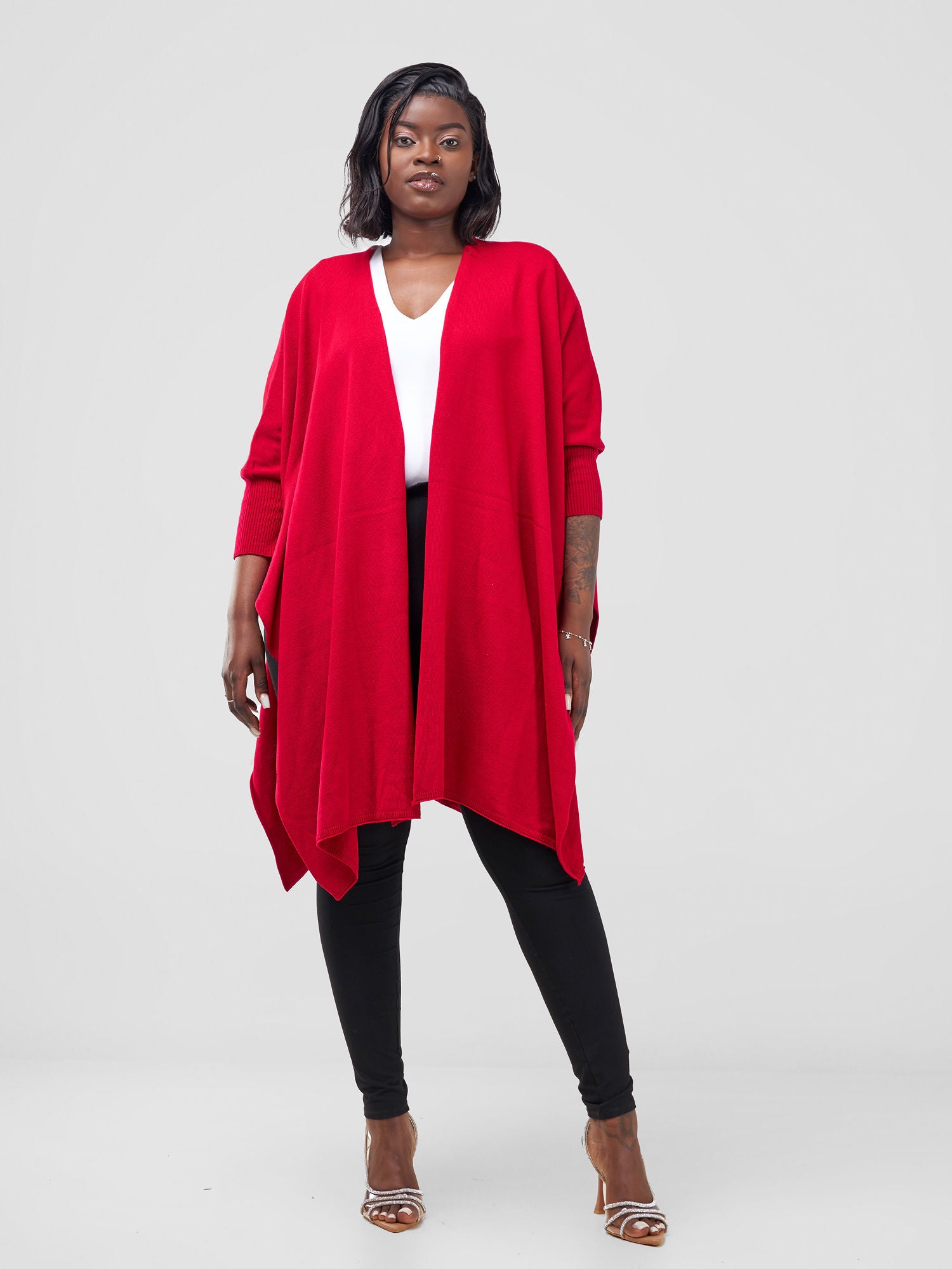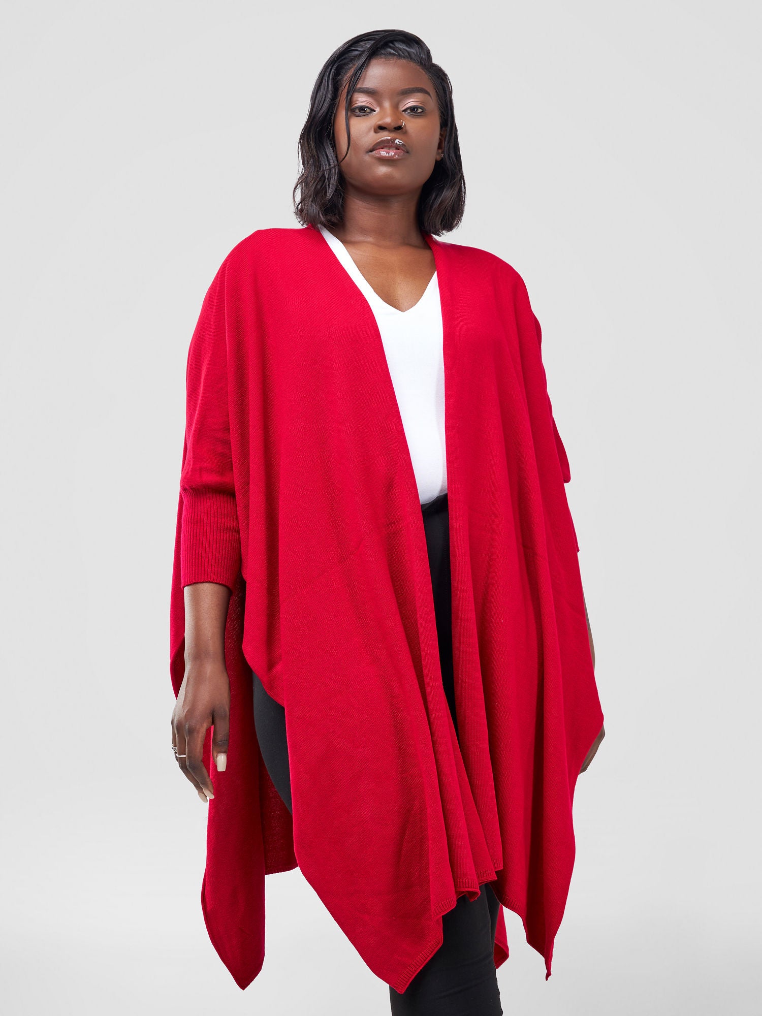 Vivo Cuffed Wrap Poncho - Dark Red