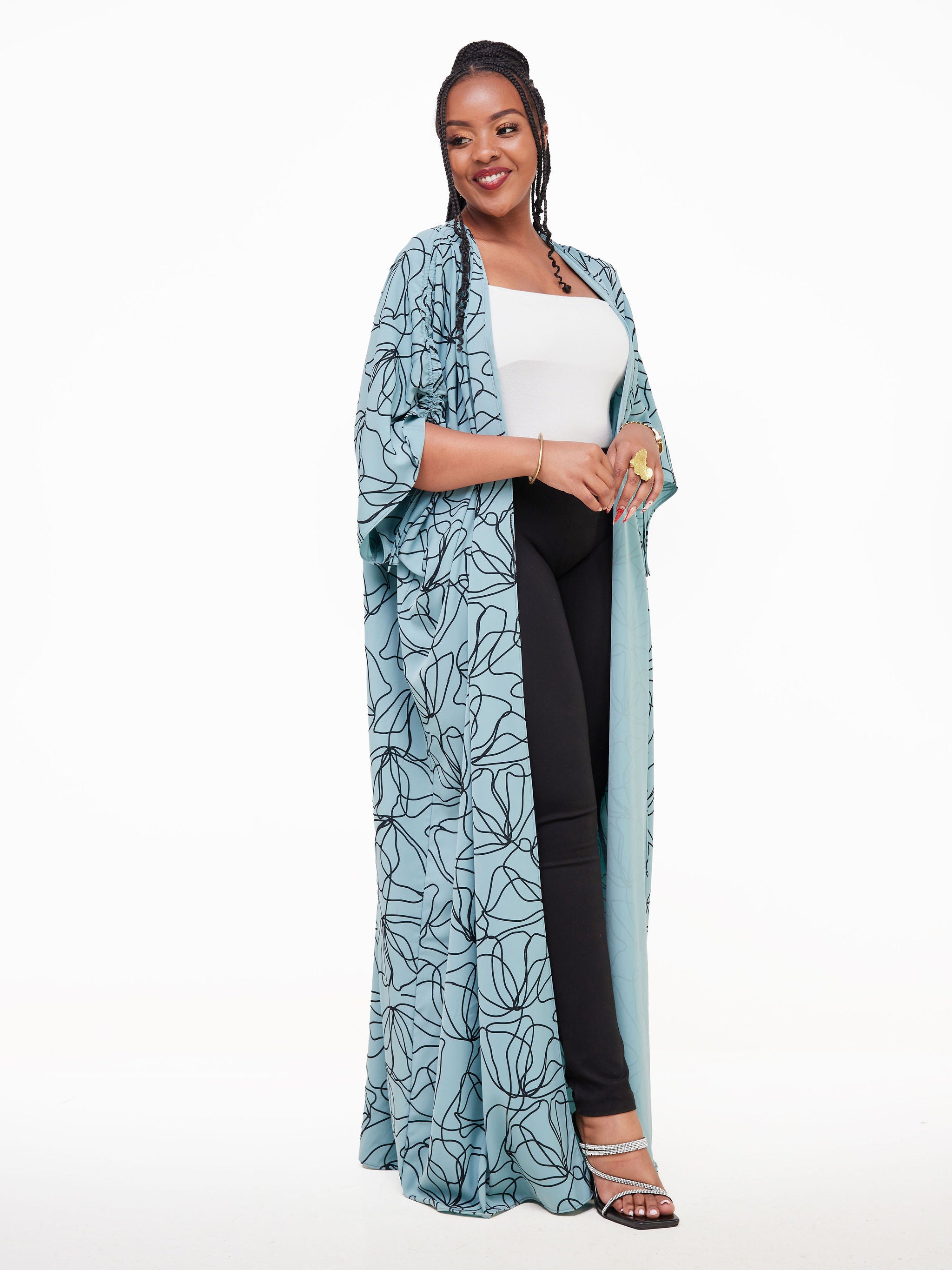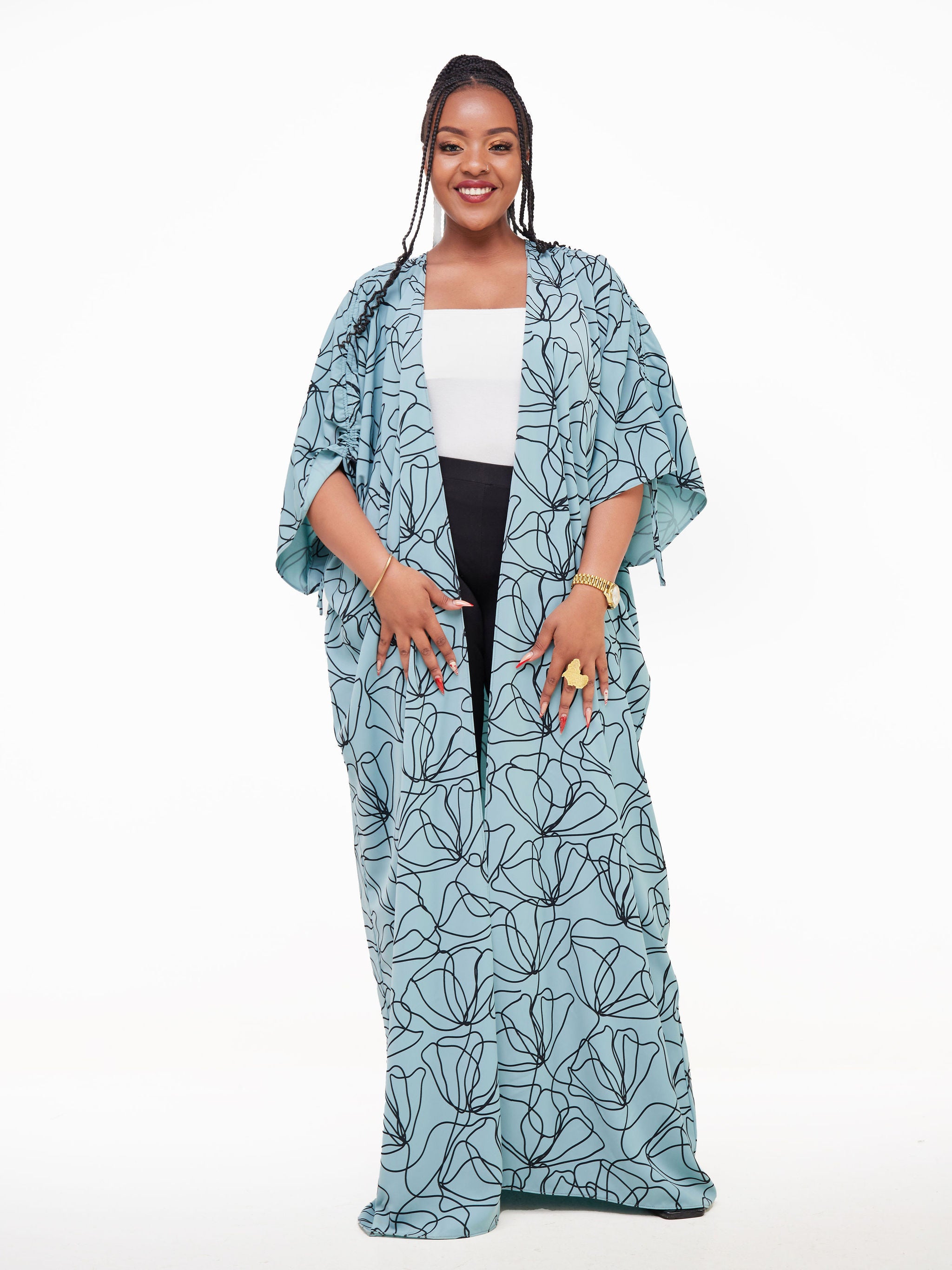 Vivo Dali Drop Shoulder Tie Kimono - Mint Green / Black Abstract Print