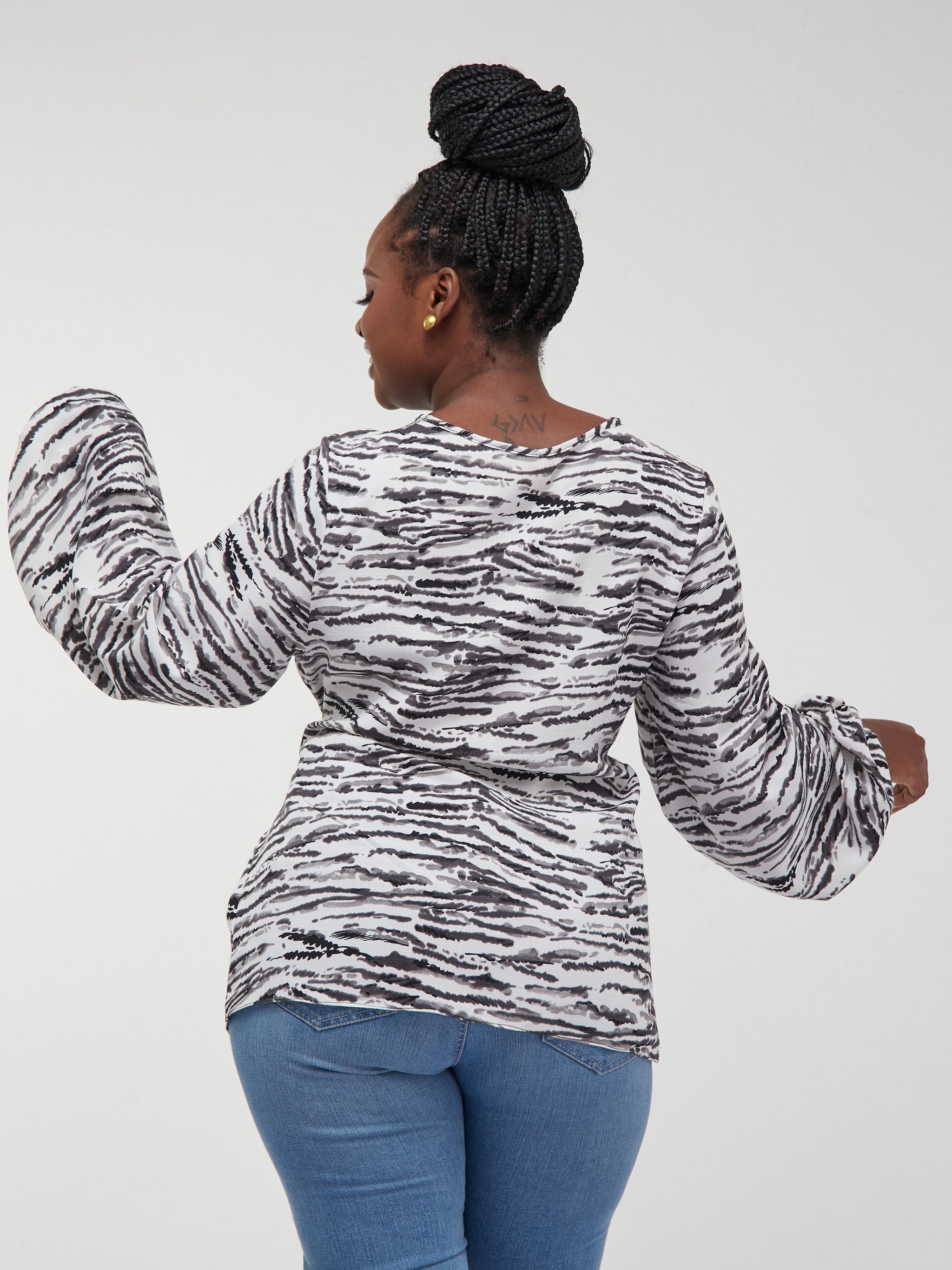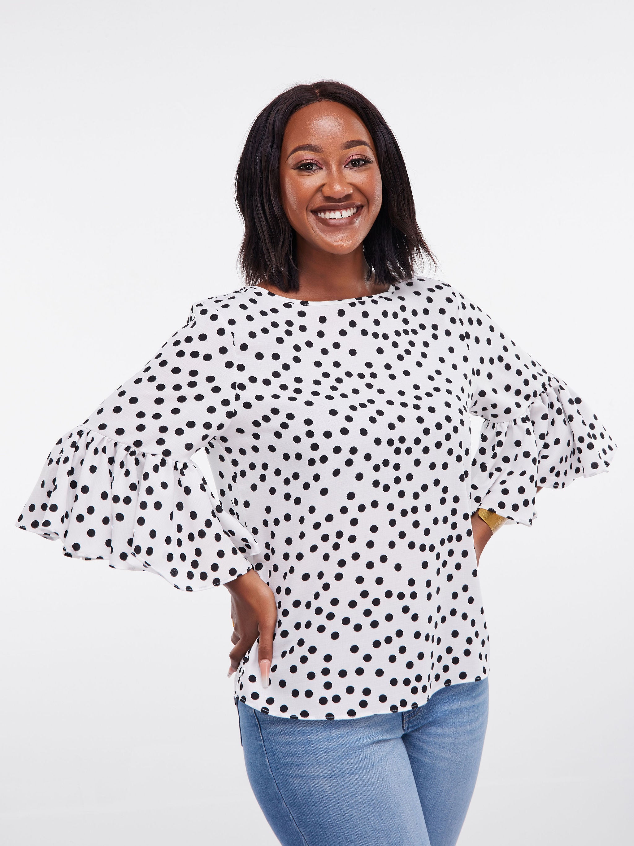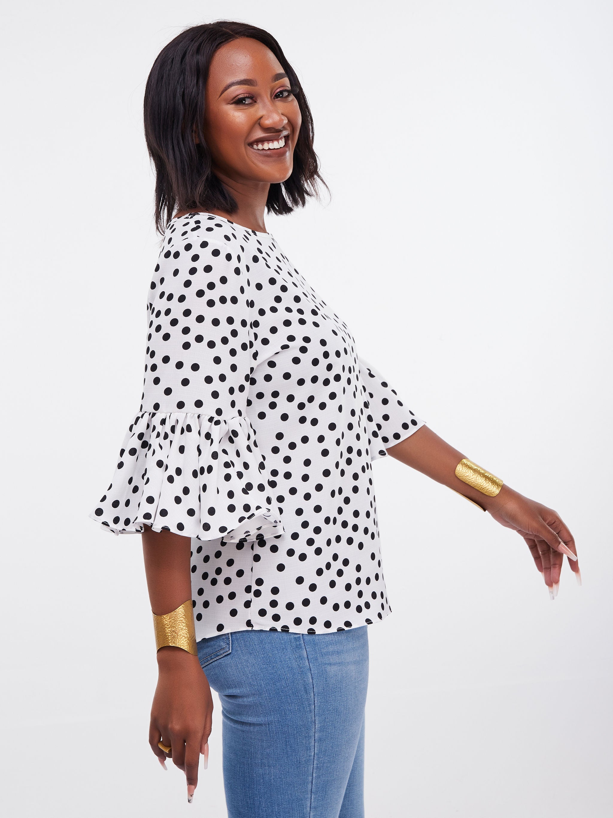 Vivo Dalia Bishop Sleeve Tie Top - Black