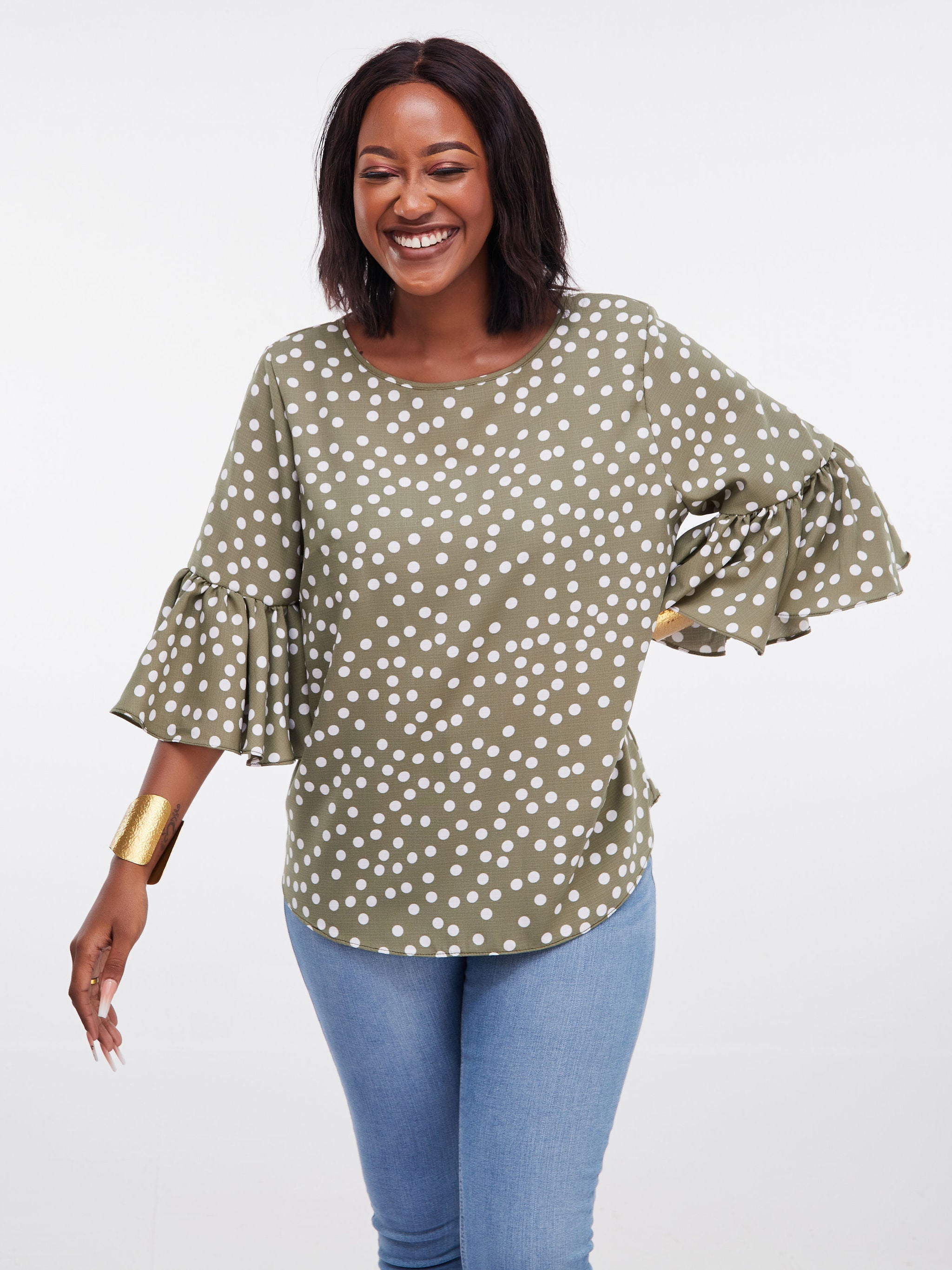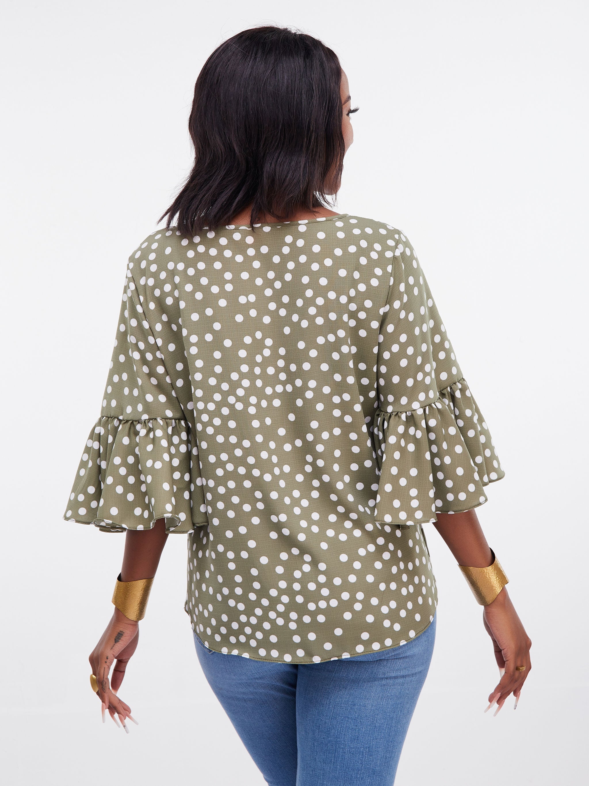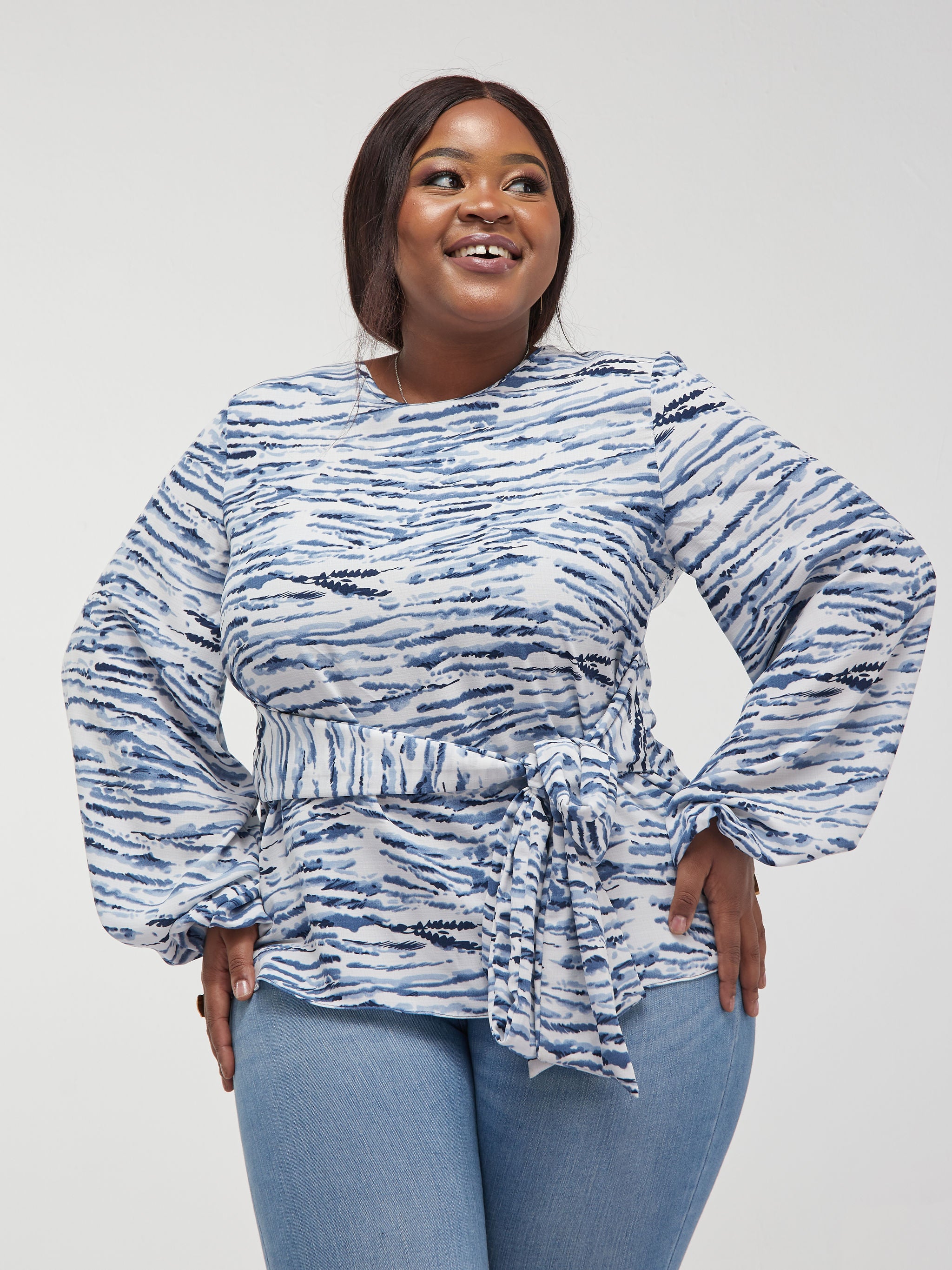 Vivo Dalia Bishop Sleeve Tie Top - Blue