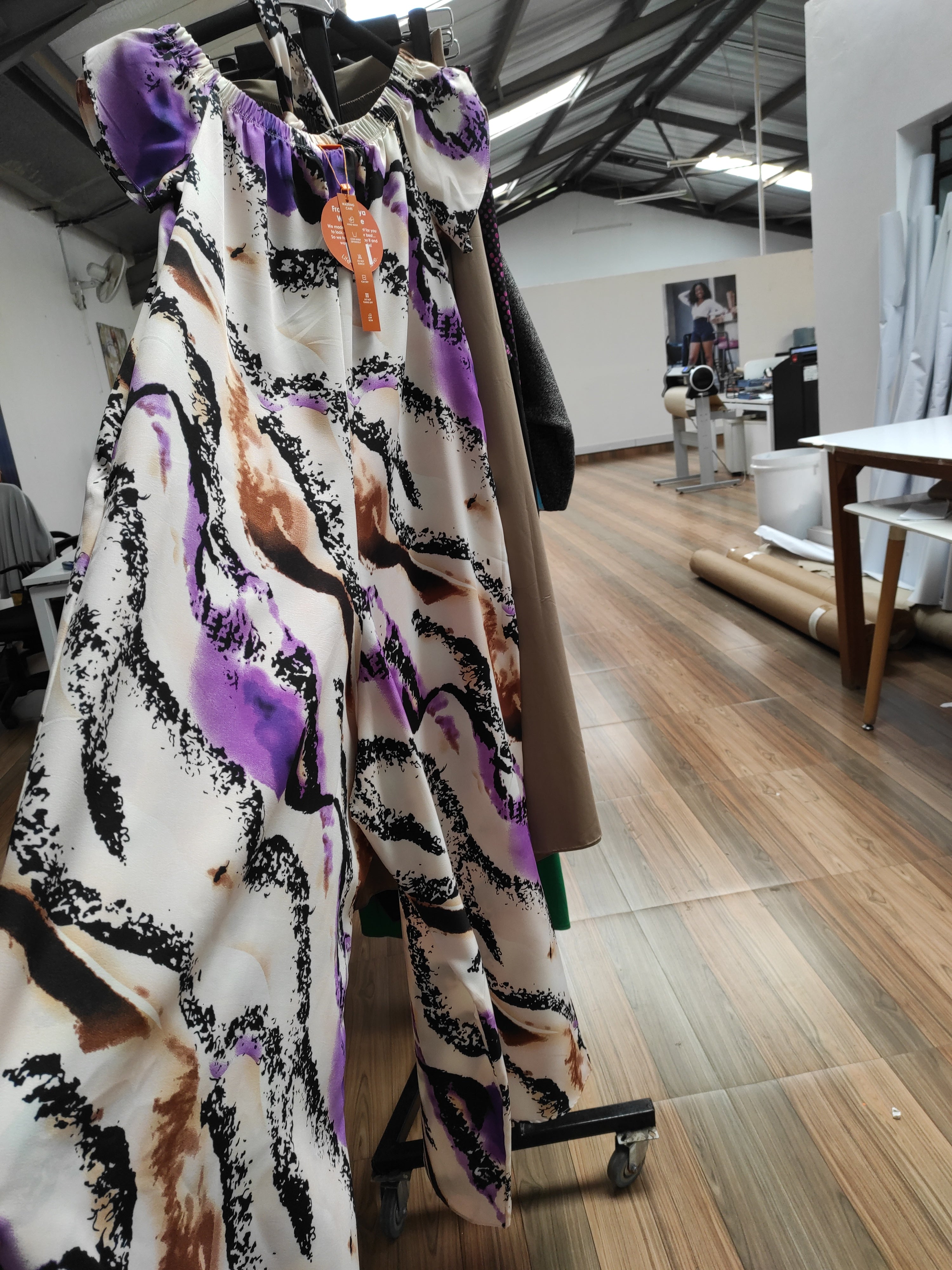 Vivo Dalia Off Shoulder Jumpsuit - Purple / Brown Abstract Print