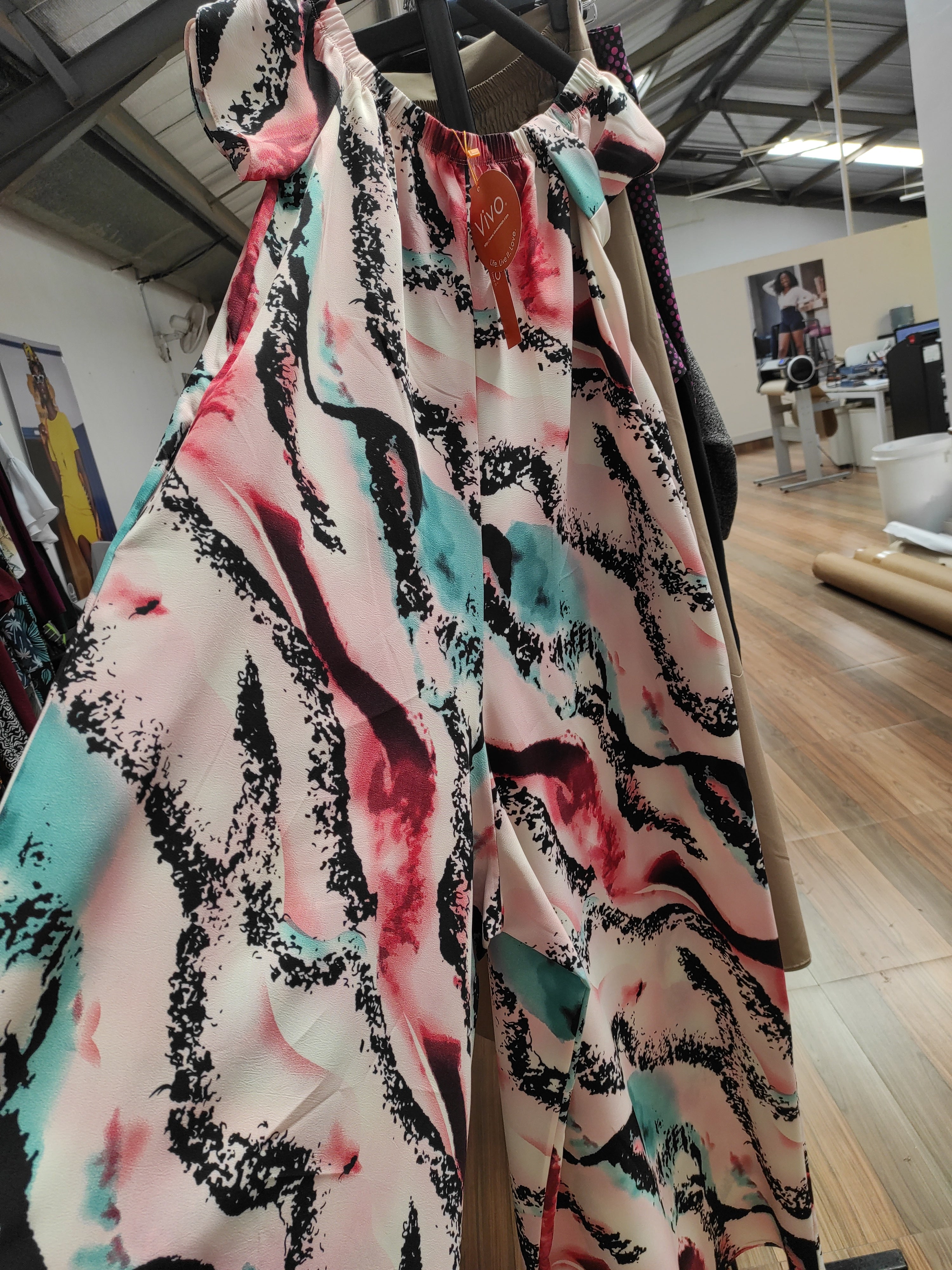 Vivo Dalia Off Shoulder Jumpsuit - Sea Green / Peach Abstract Print