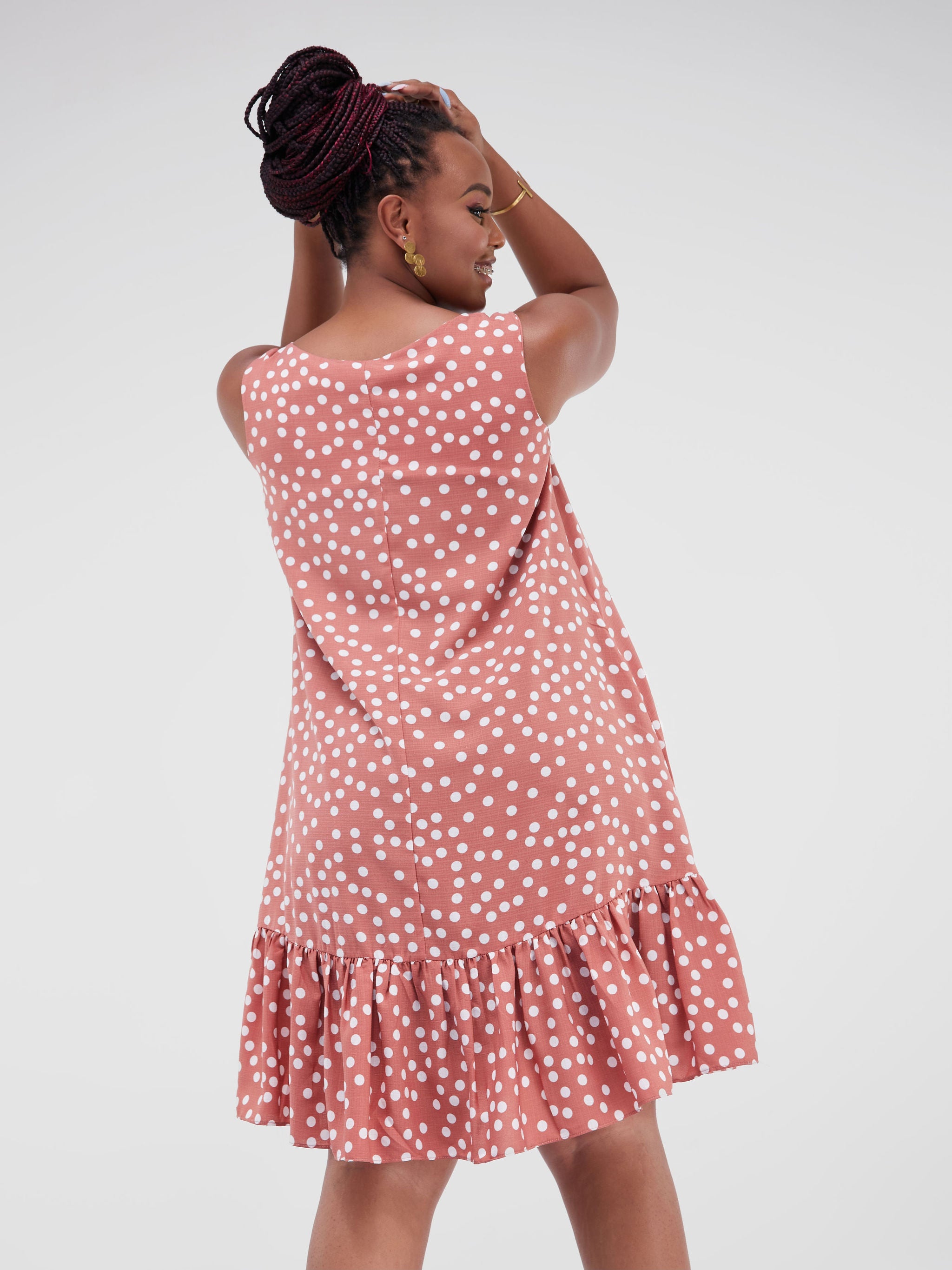 Vivo Dalia Sleeveless Gathered Tent Dress - Coral Polka Dot Print