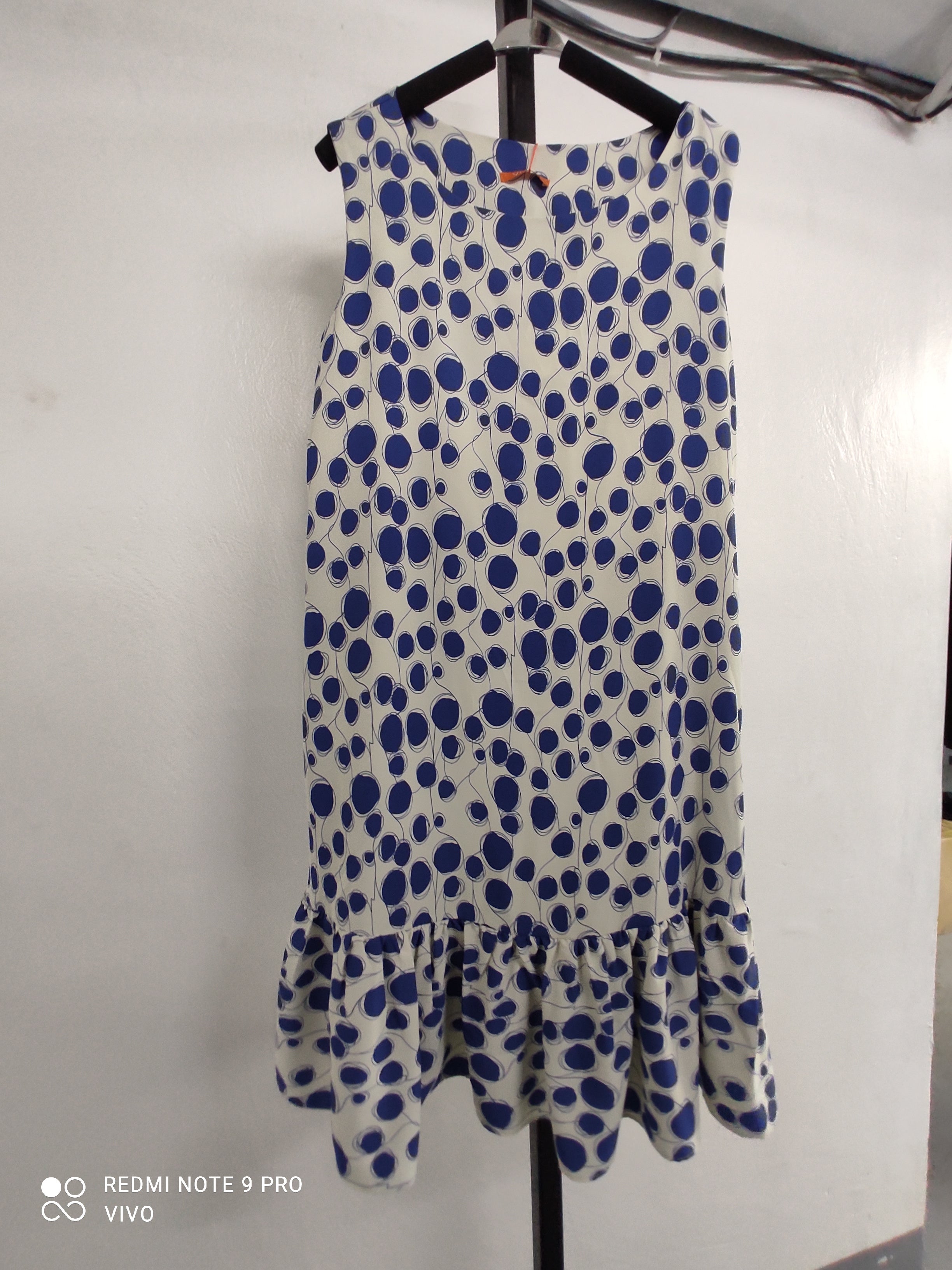 Vivo Dalia Sleeveless Gathered Tent Dress - Blue / White Geometric Print