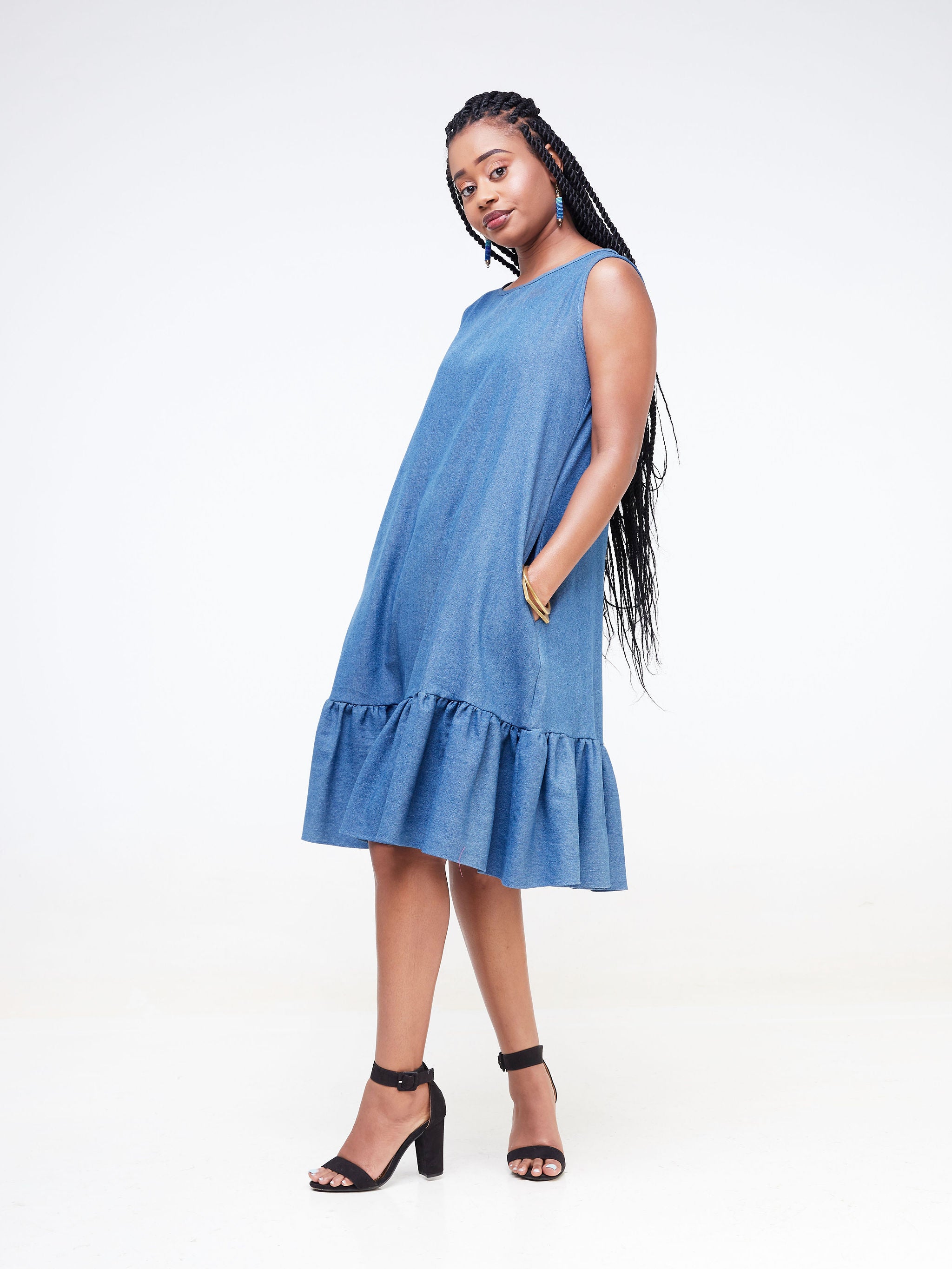Vivo Dalia Sleeveless Denim Tent Dress - Blue