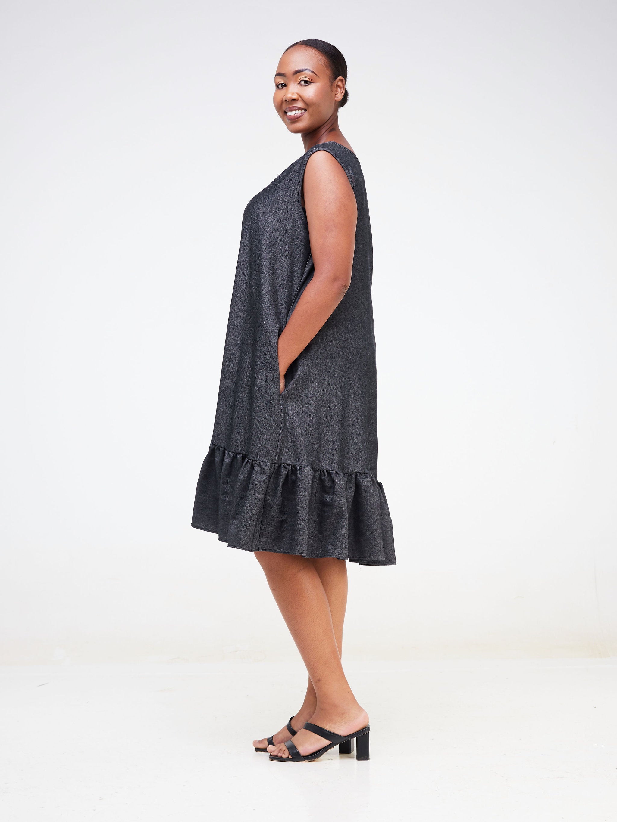 Vivo Dalia Sleeveless Denim Tent Dress - Black