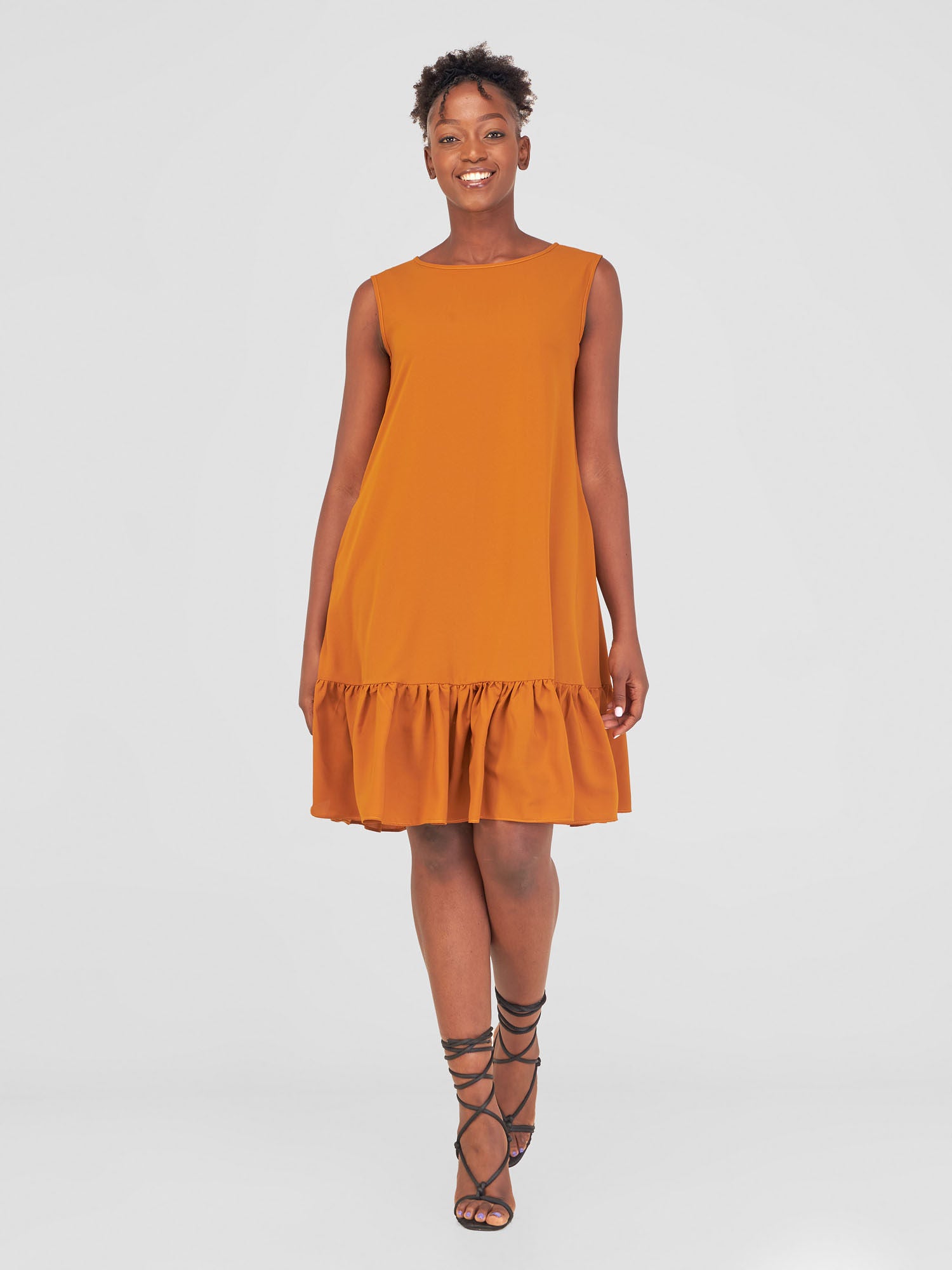 Vivo Dalia Sleeveless Gathered Tent Dress - Orange