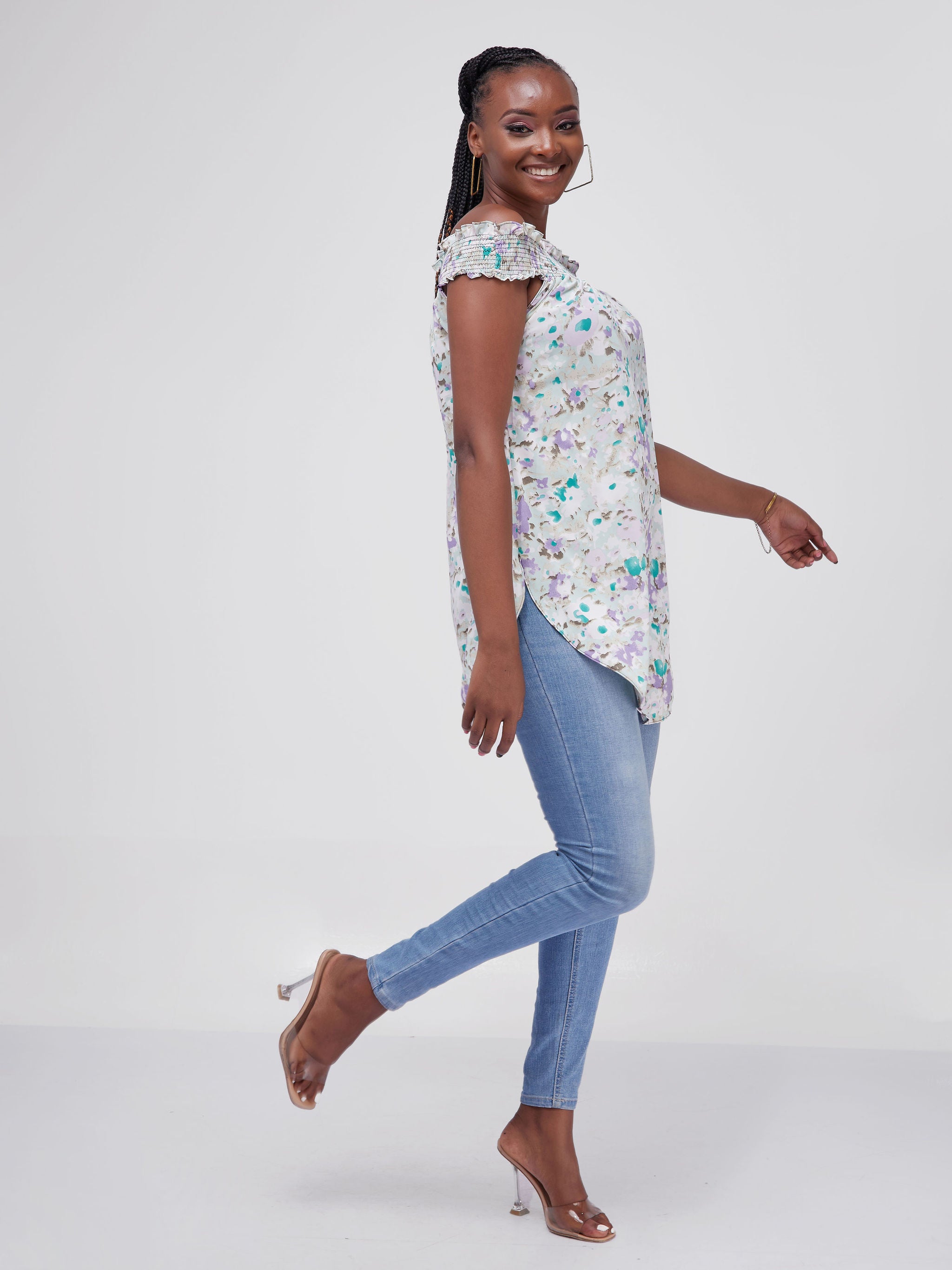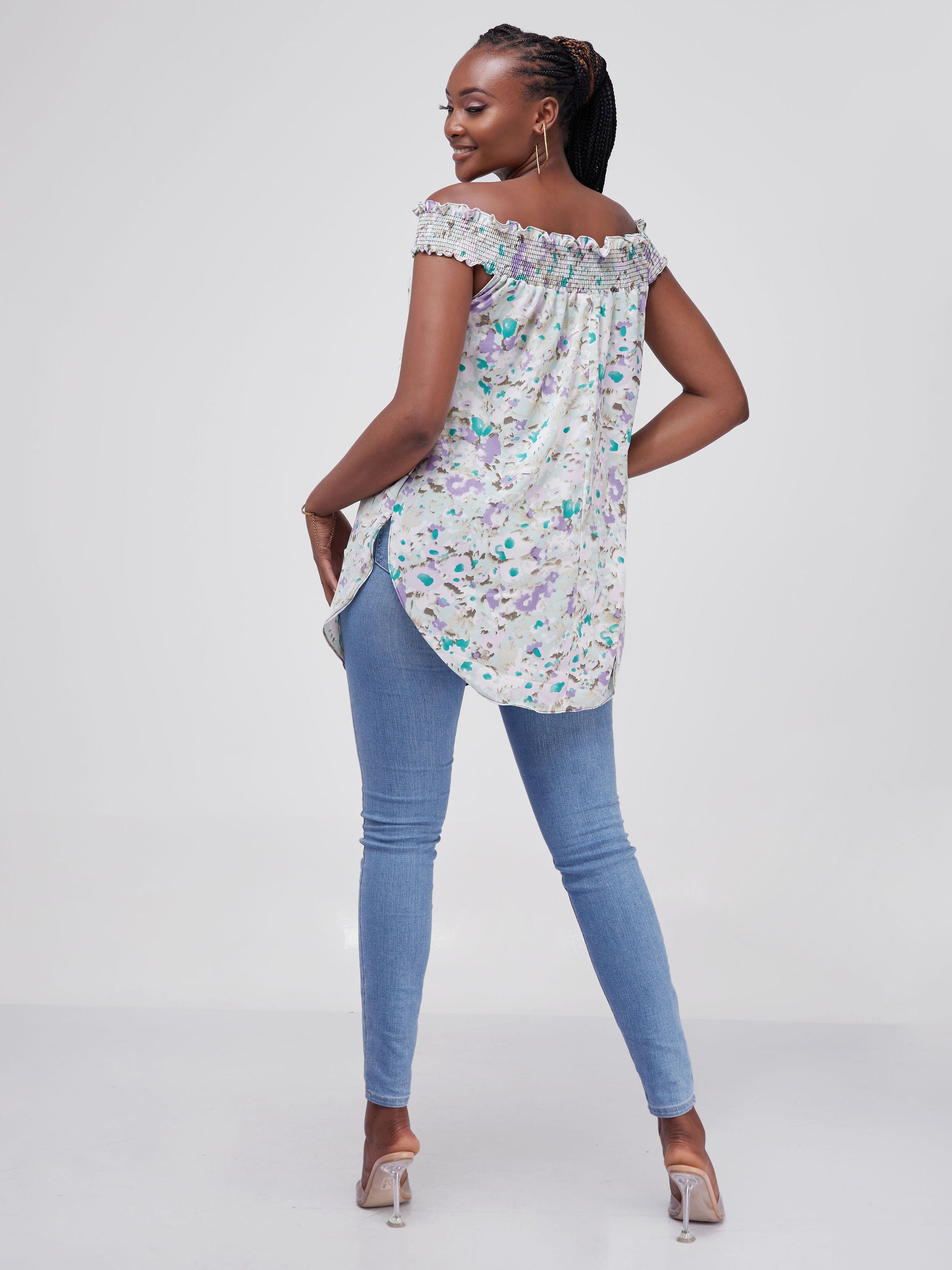 Vivo Alek Off-Shoulder Scalloped Hem Top - Jungle Green / Black Animal Print