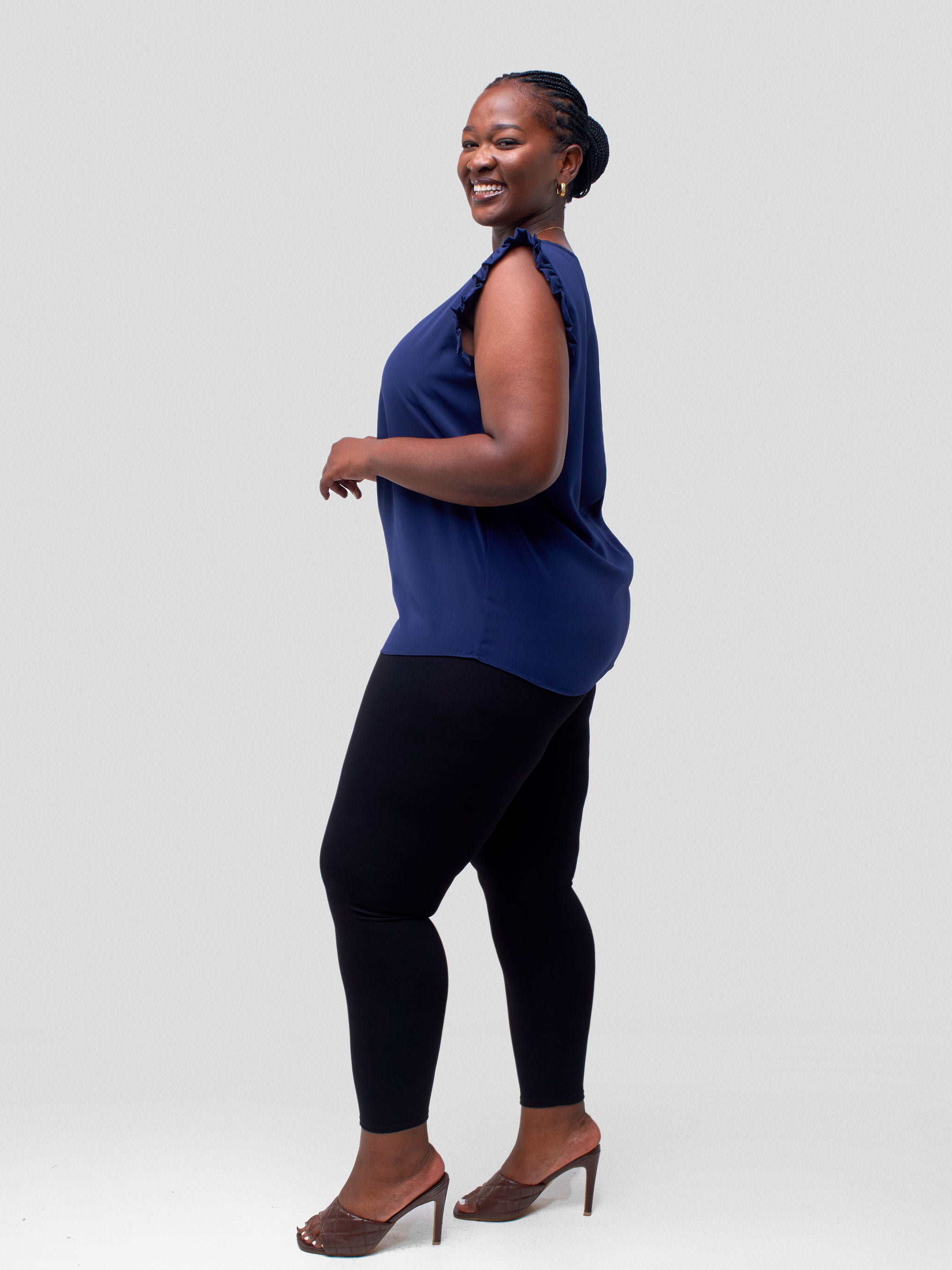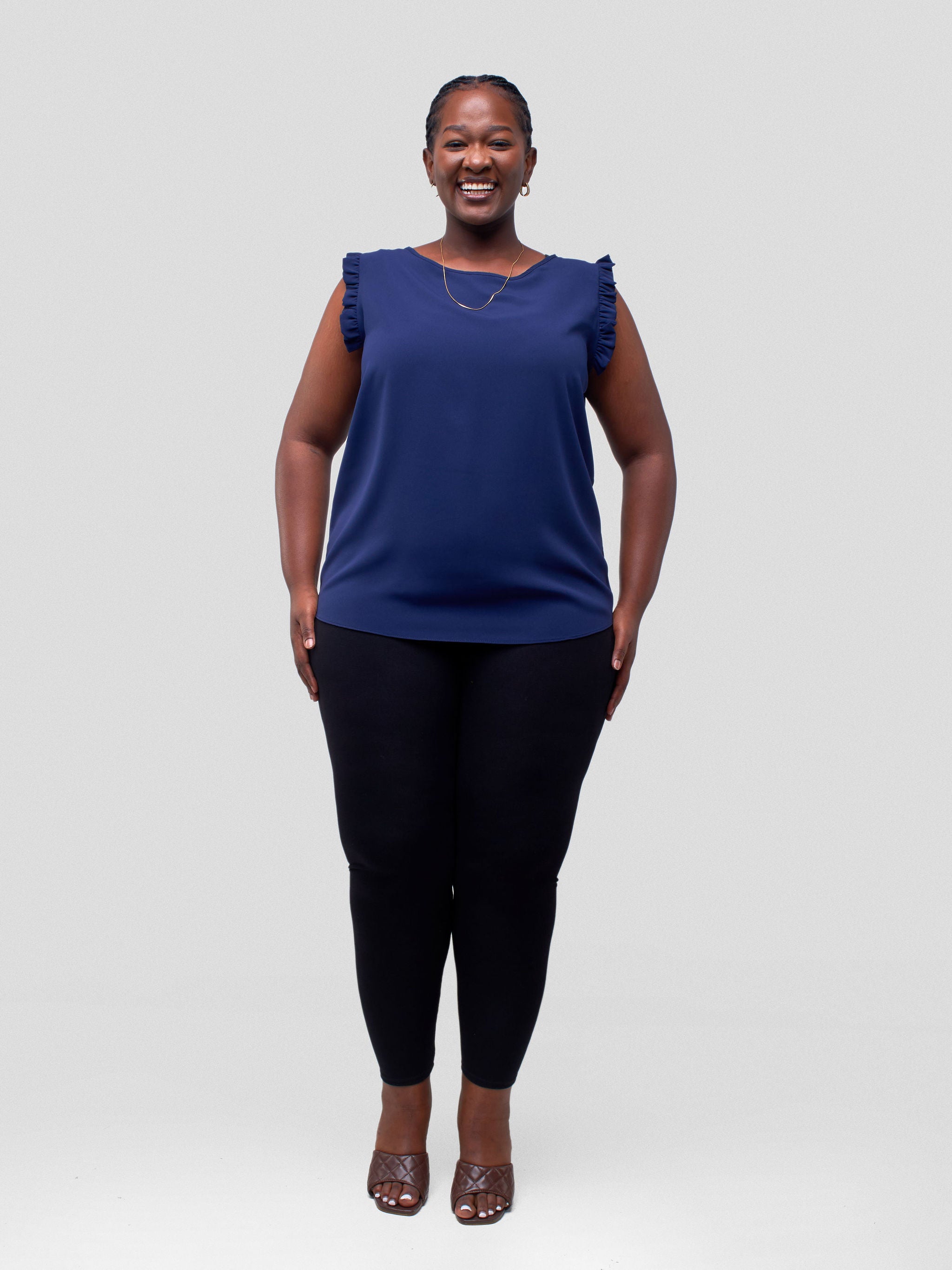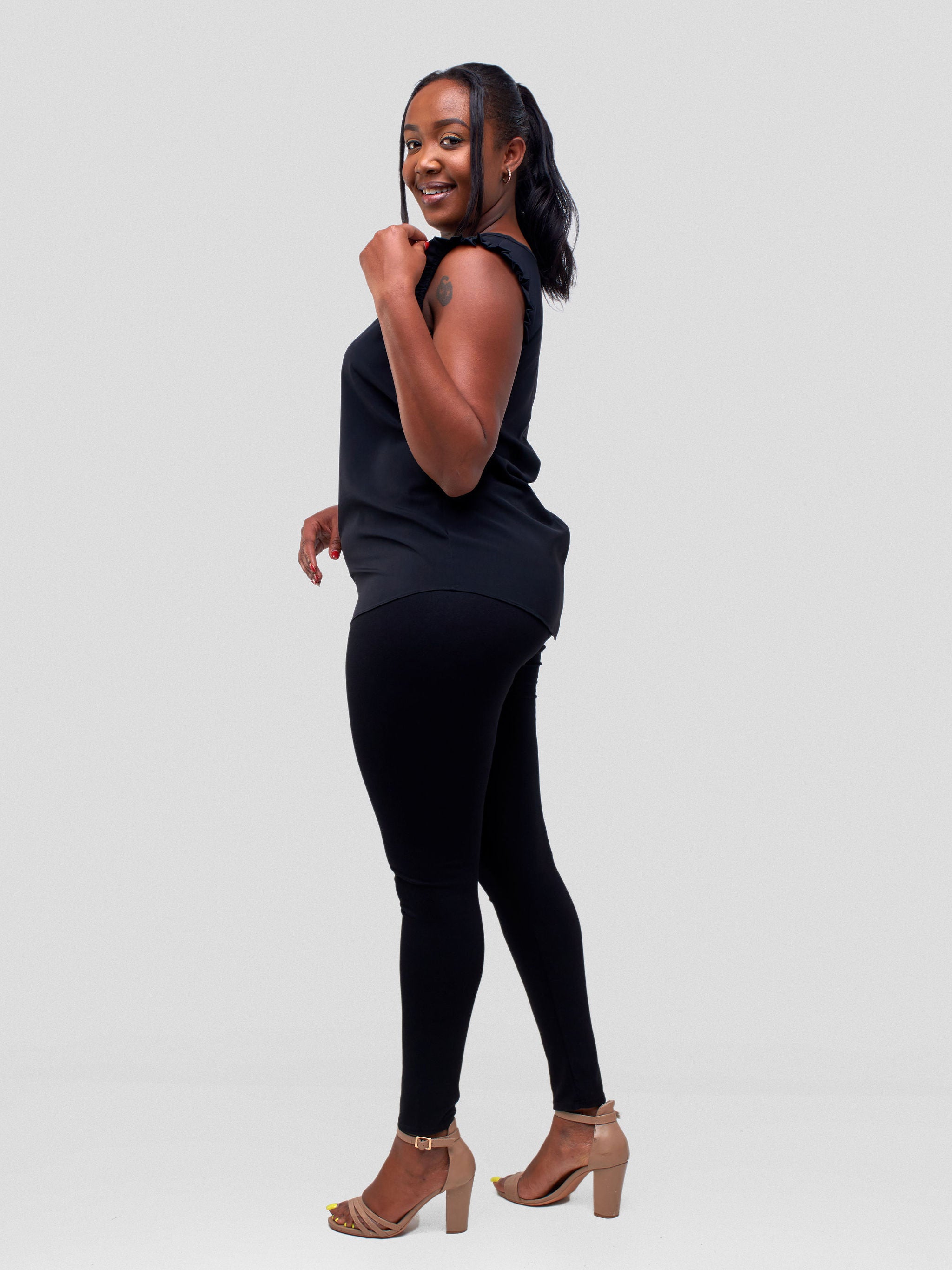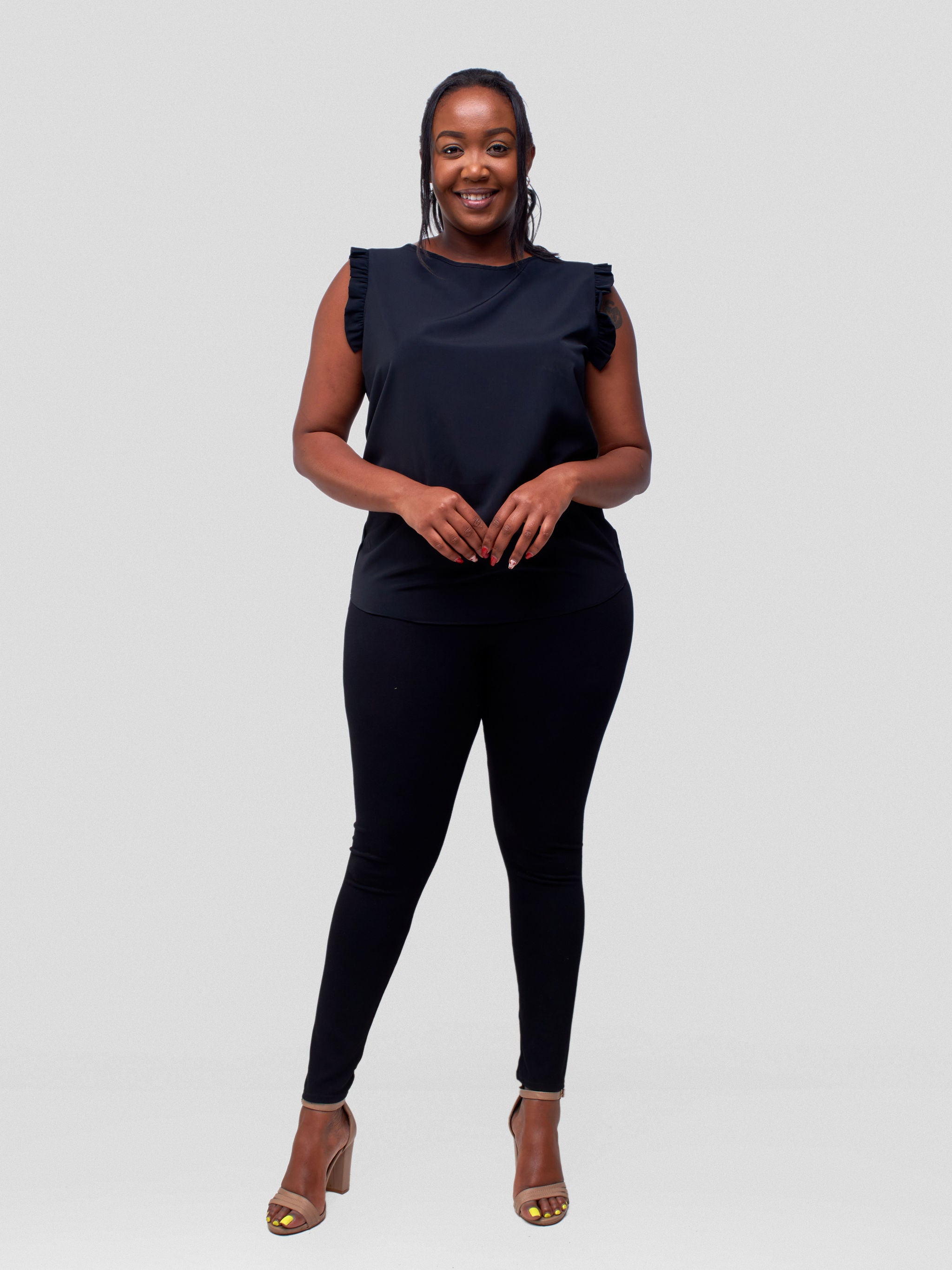 Vivo Ava Sleeveless Ruffle Top - Black