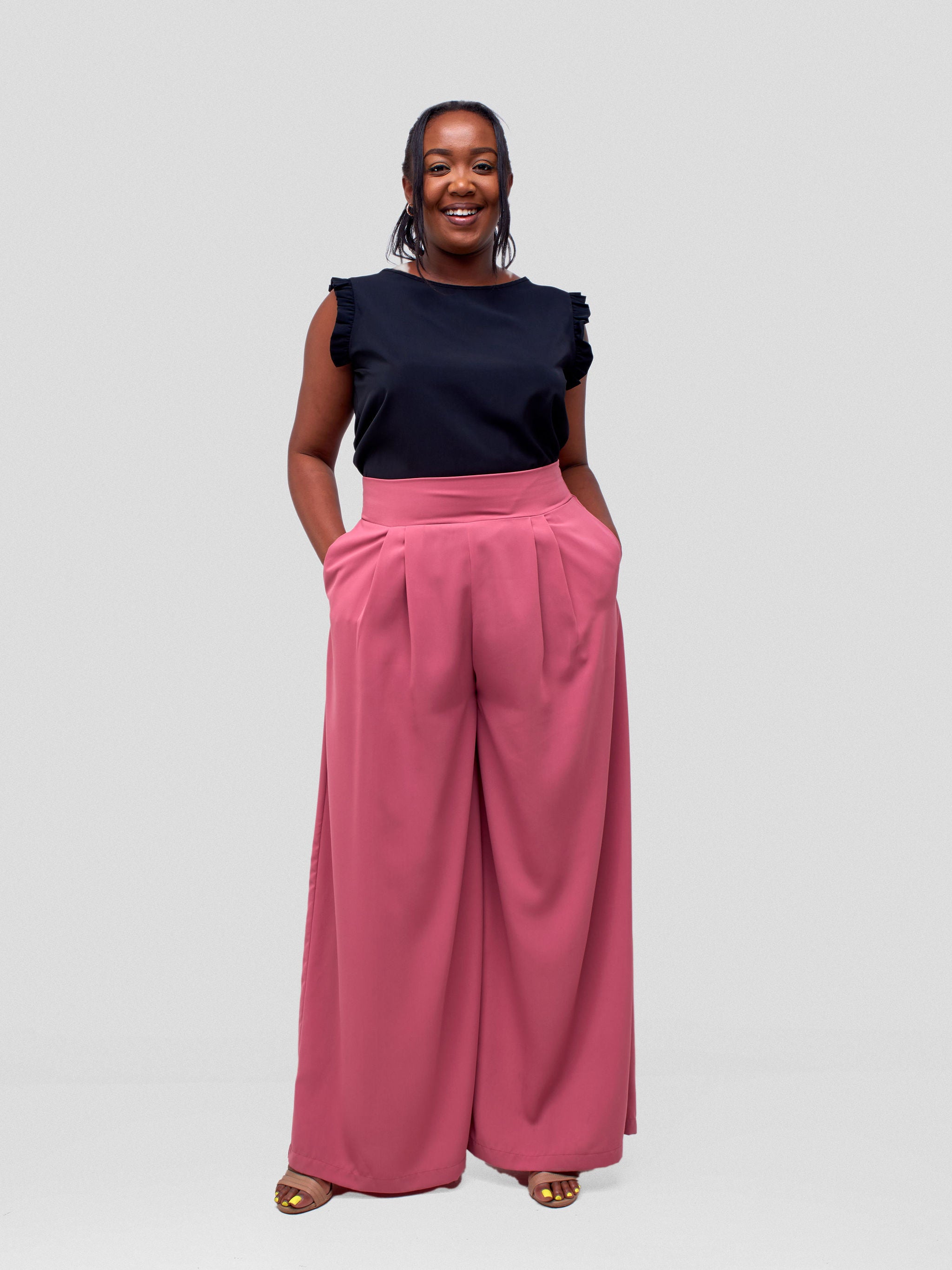 Vivo Ava Pleated Wide Leg Pants - Pink