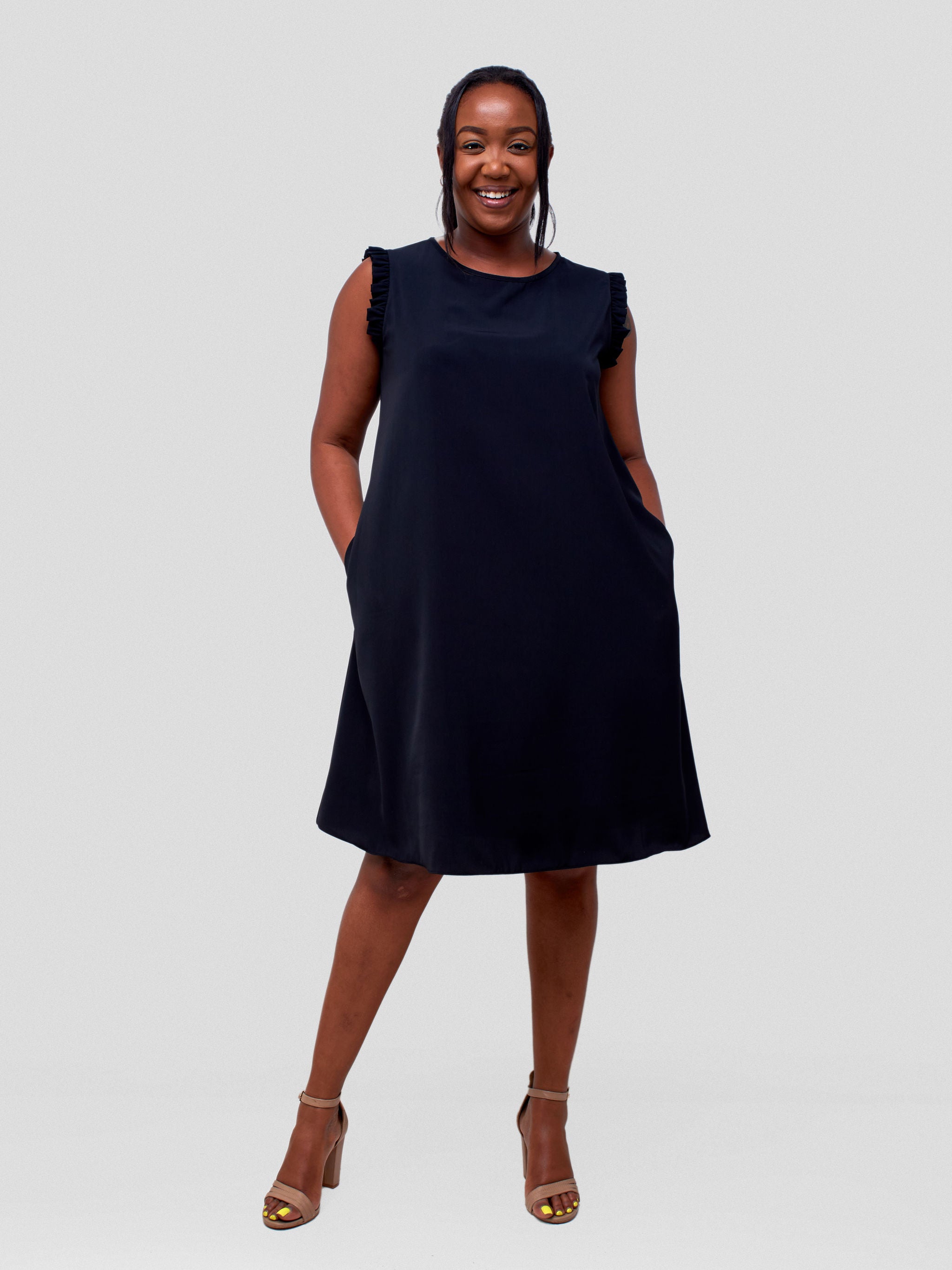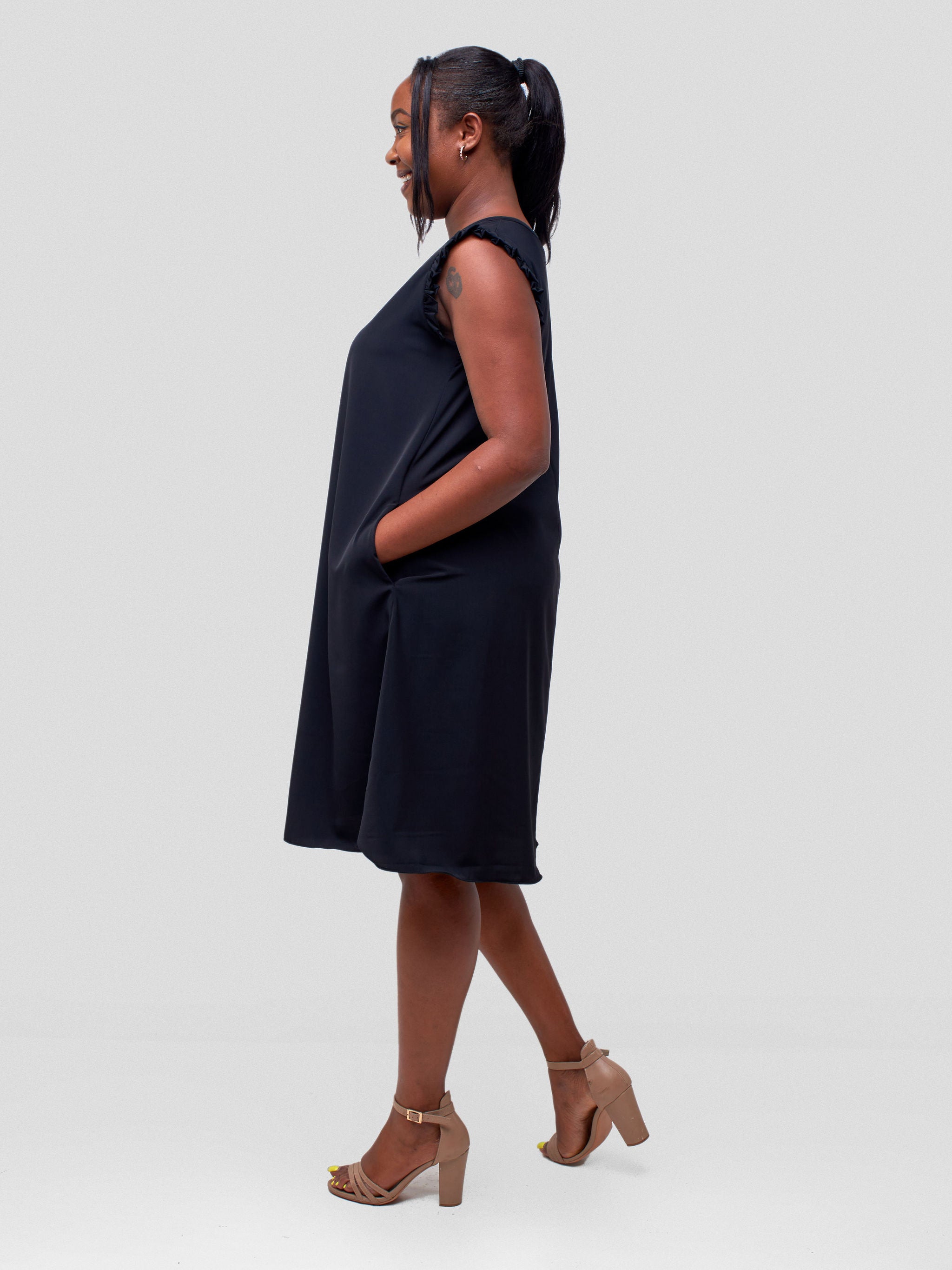 Vivo Ava Tent Knee Length Dress - Black / Off-white Print