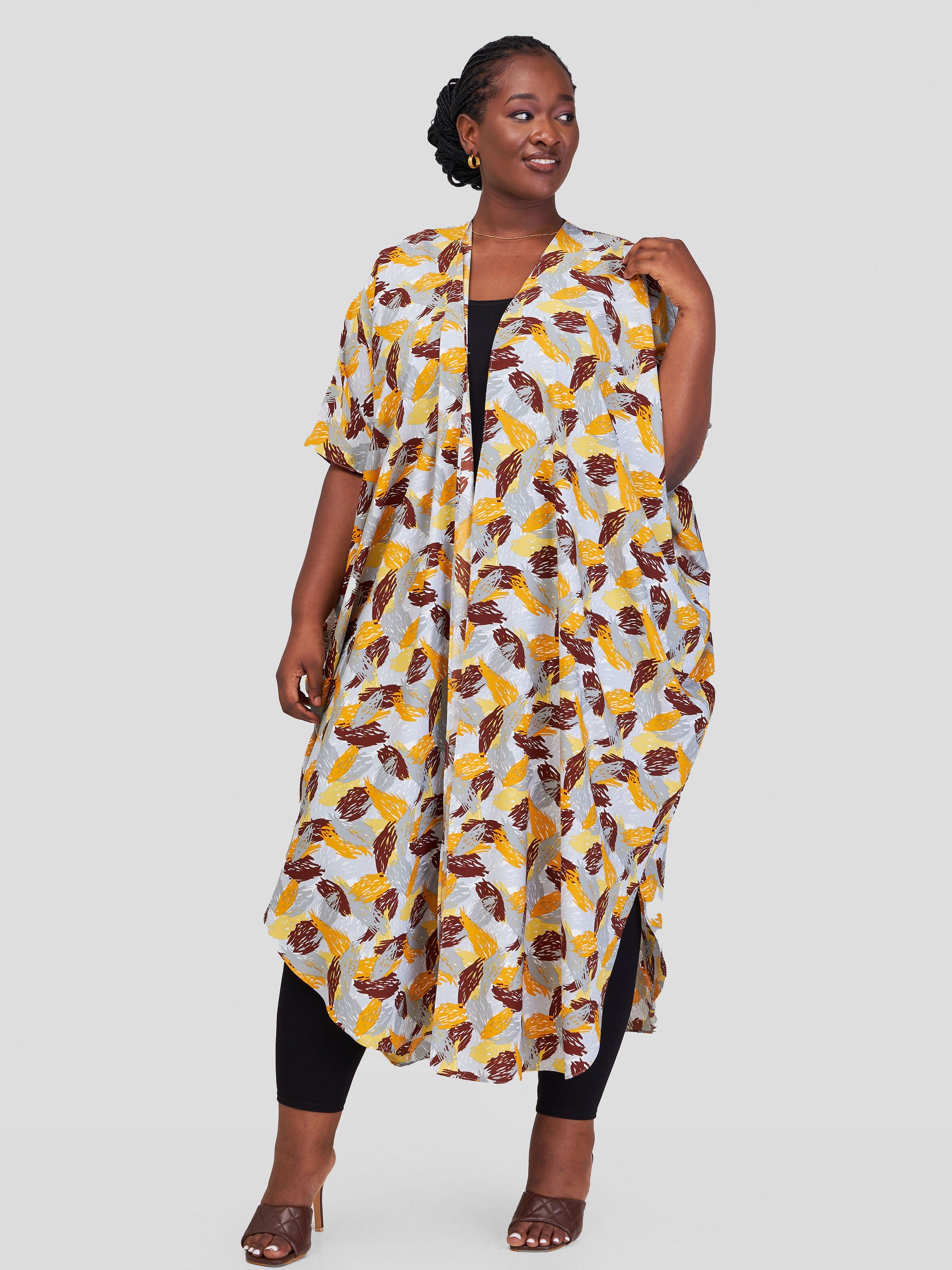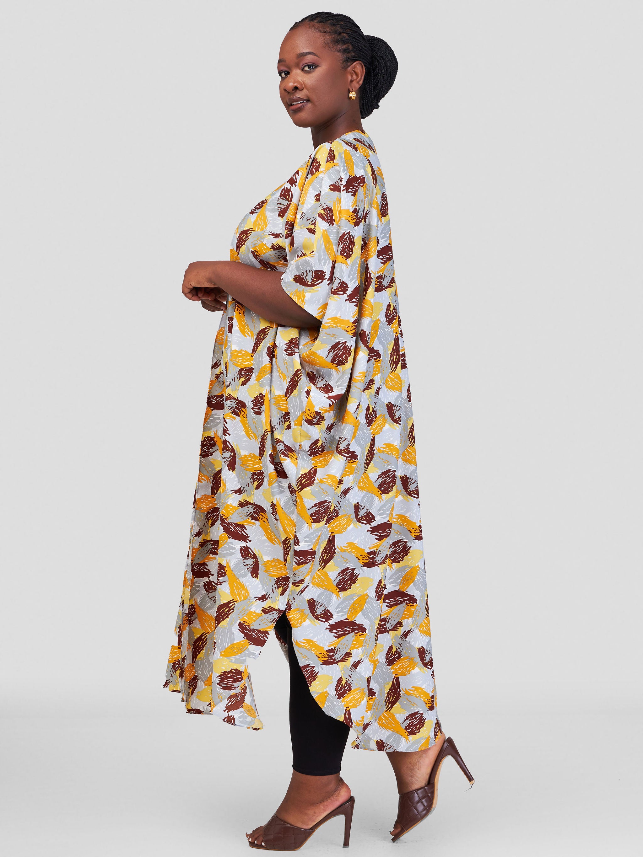 Vivo Malindi Maxi Kimono - Orange / Brown Abstract Print