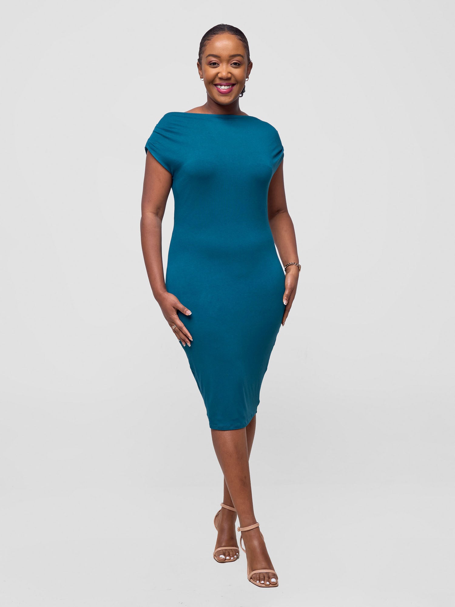Vivo Fahari Cowl Drape Bodycon - Teal
