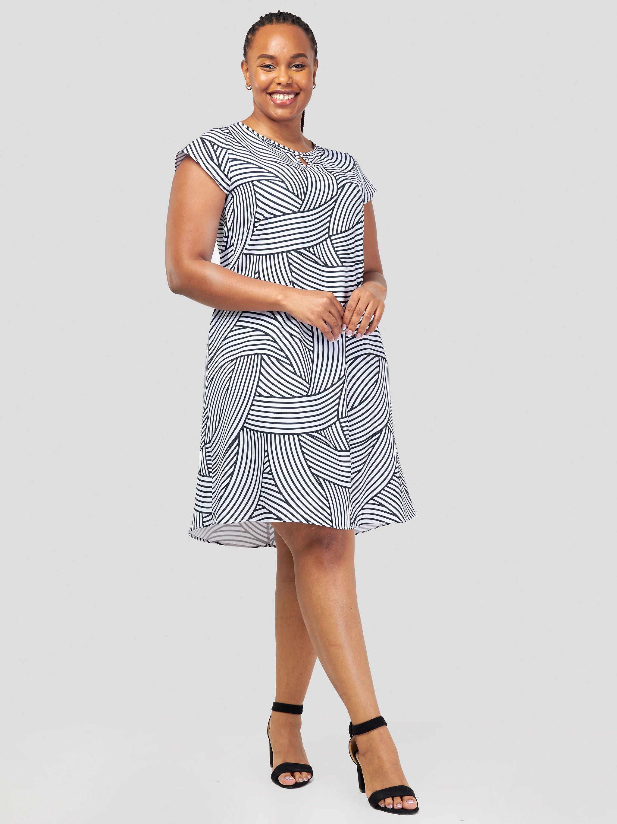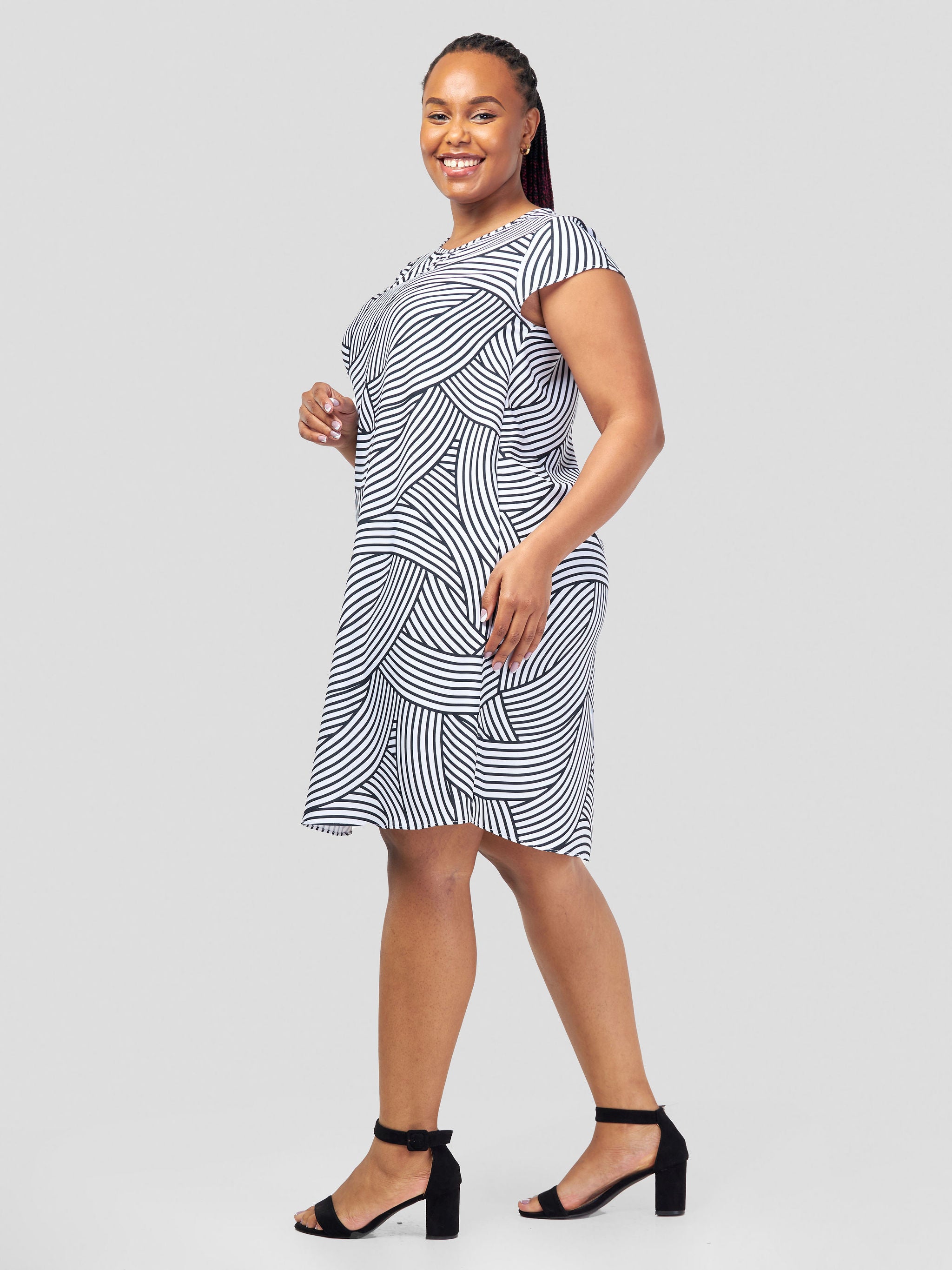 Vivo Fahari Cap Sleeve Tent Dress - White / Black Abstract Print