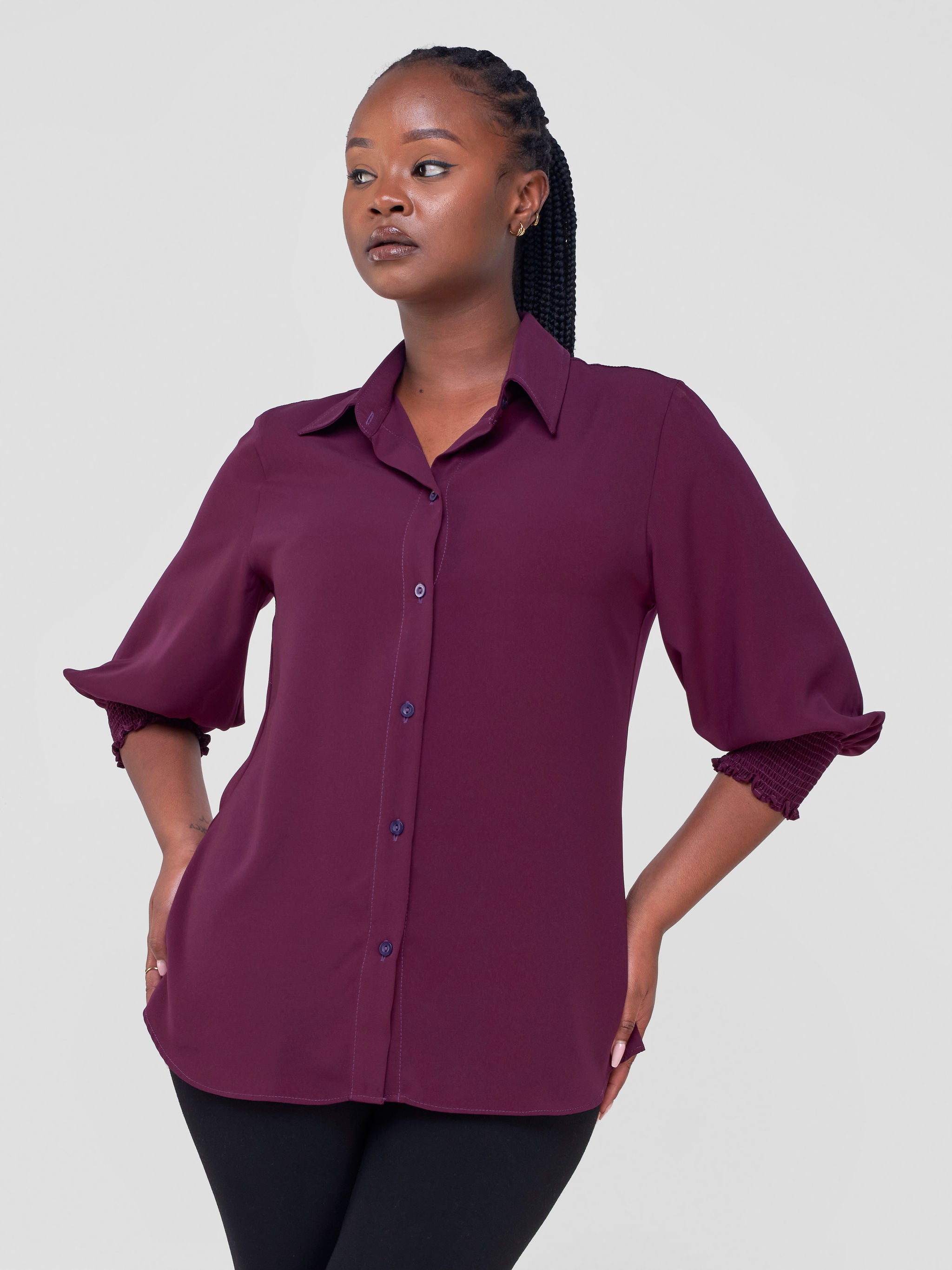 Vivo Fahari 3/4 Sleeve Shirred Shirt - Purple