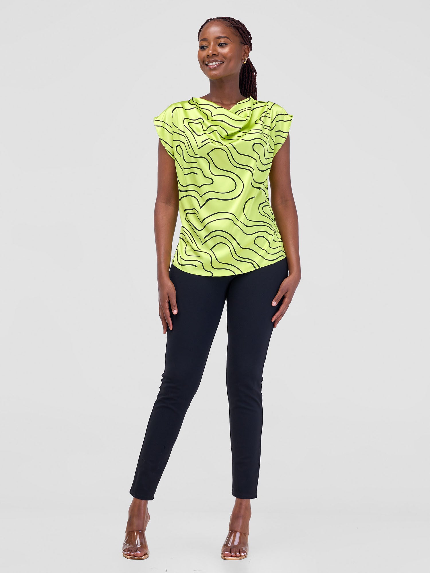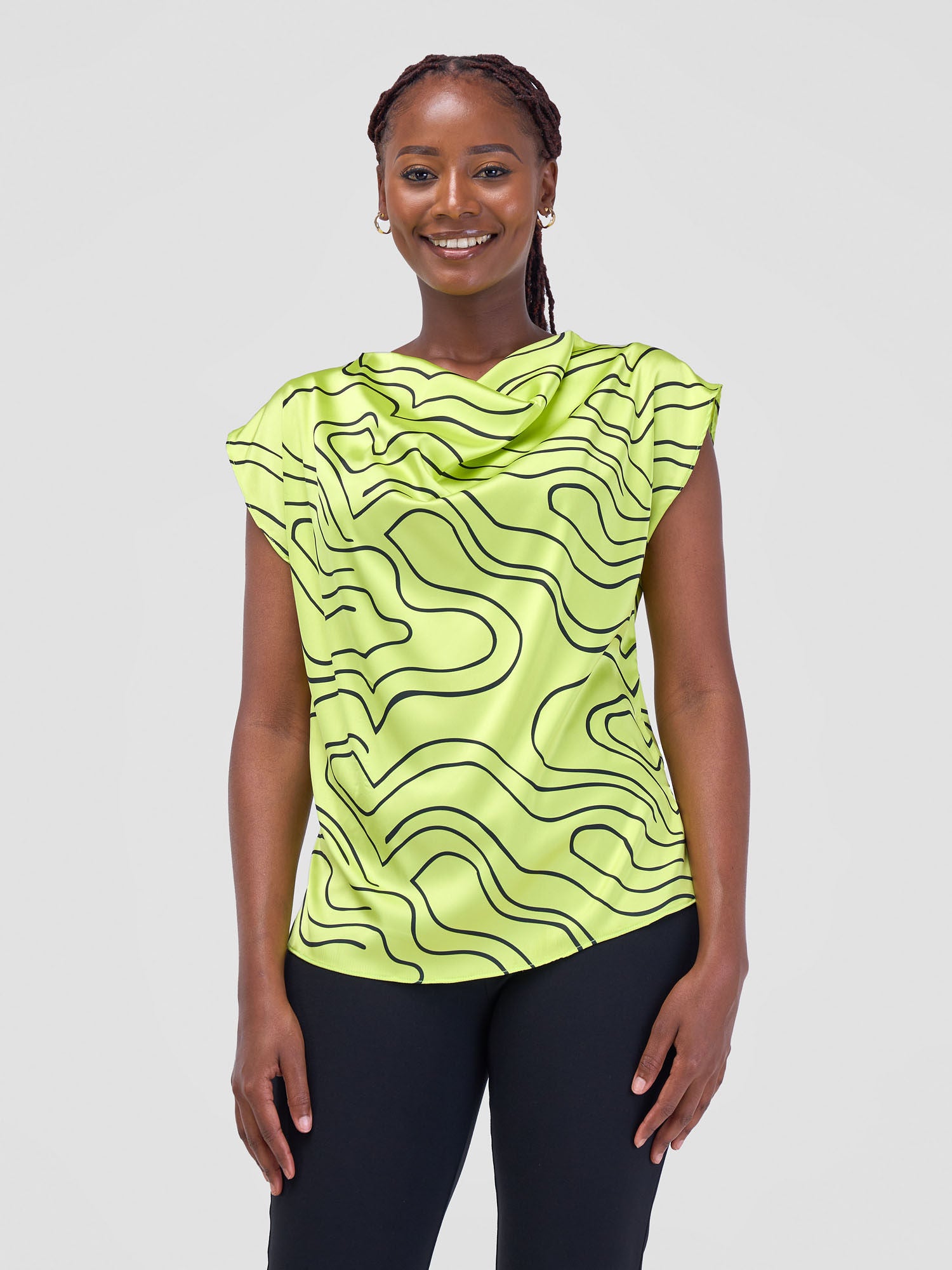 Vivo Fahari Drop Shoulder Cowl Top - Lime / Black Print