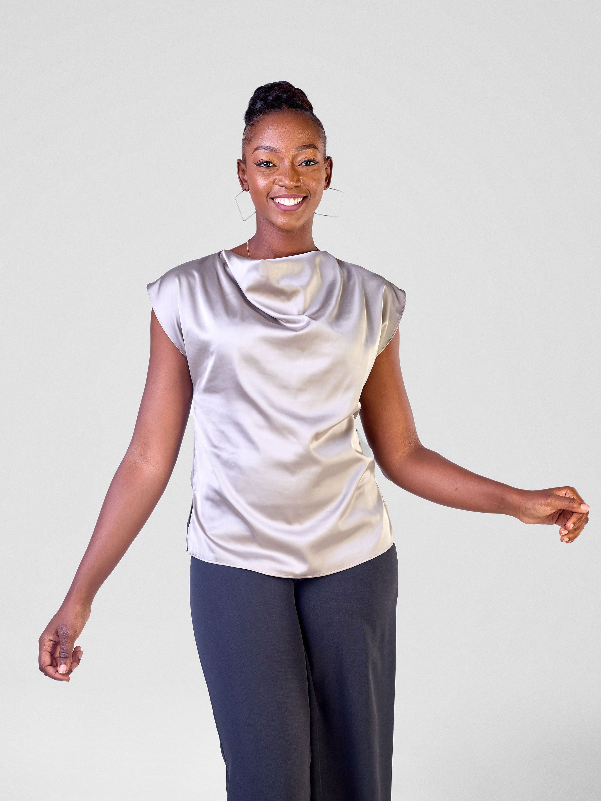 Vivo Fahari Drop Shoulder Cowl Top - Dusty Grey