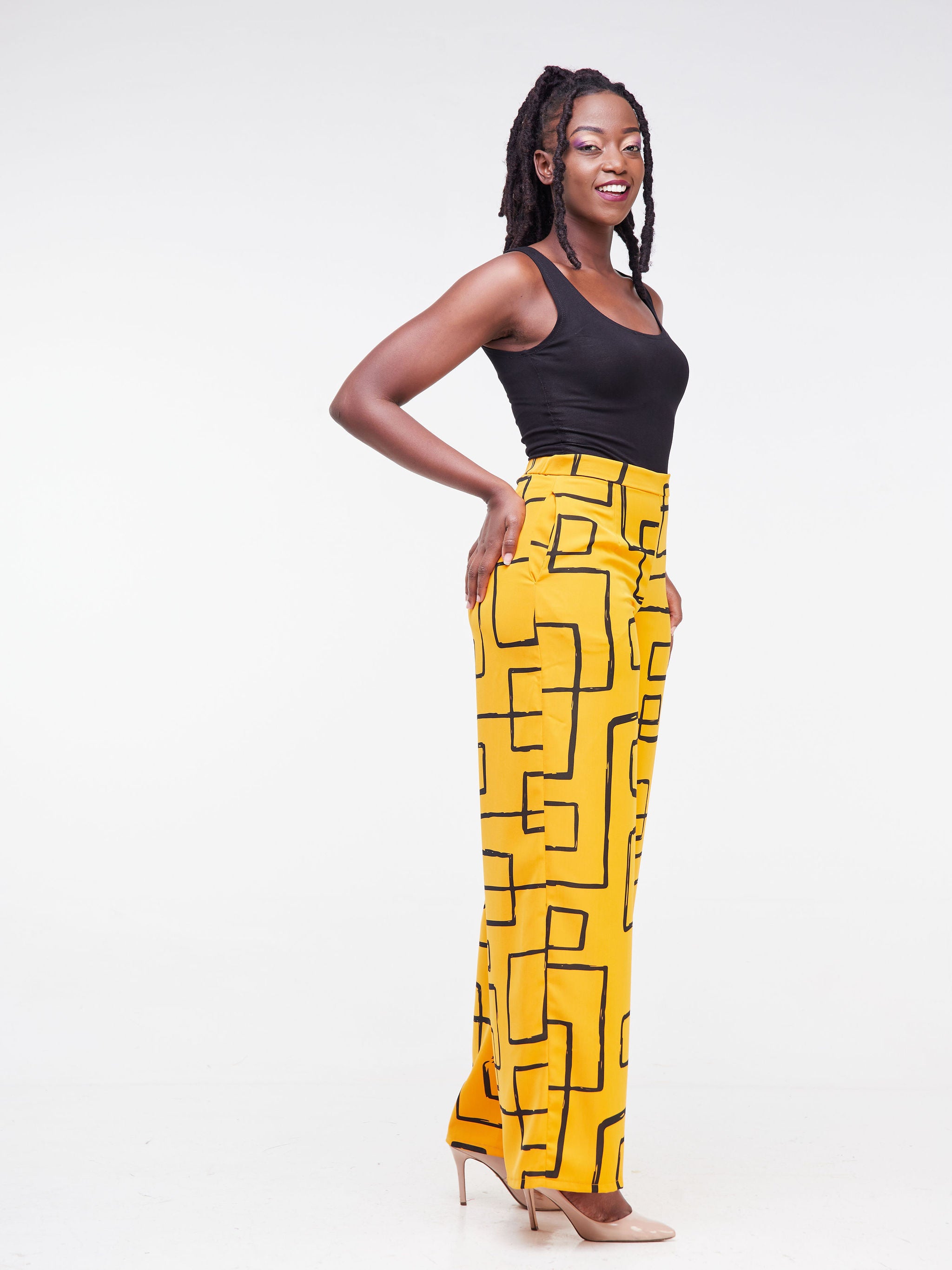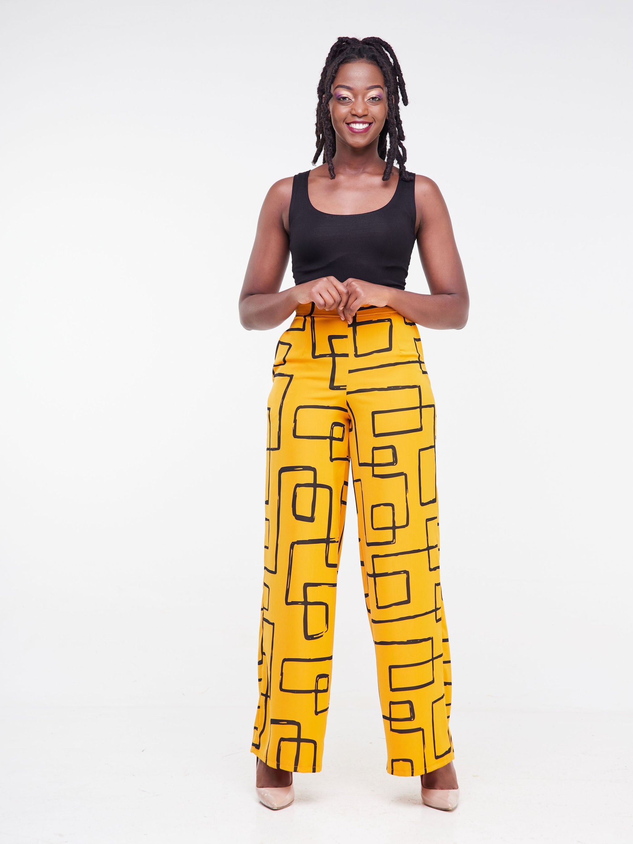 Vivo Fahari Wide Leg Pants - Mustard / Black Geometric Print
