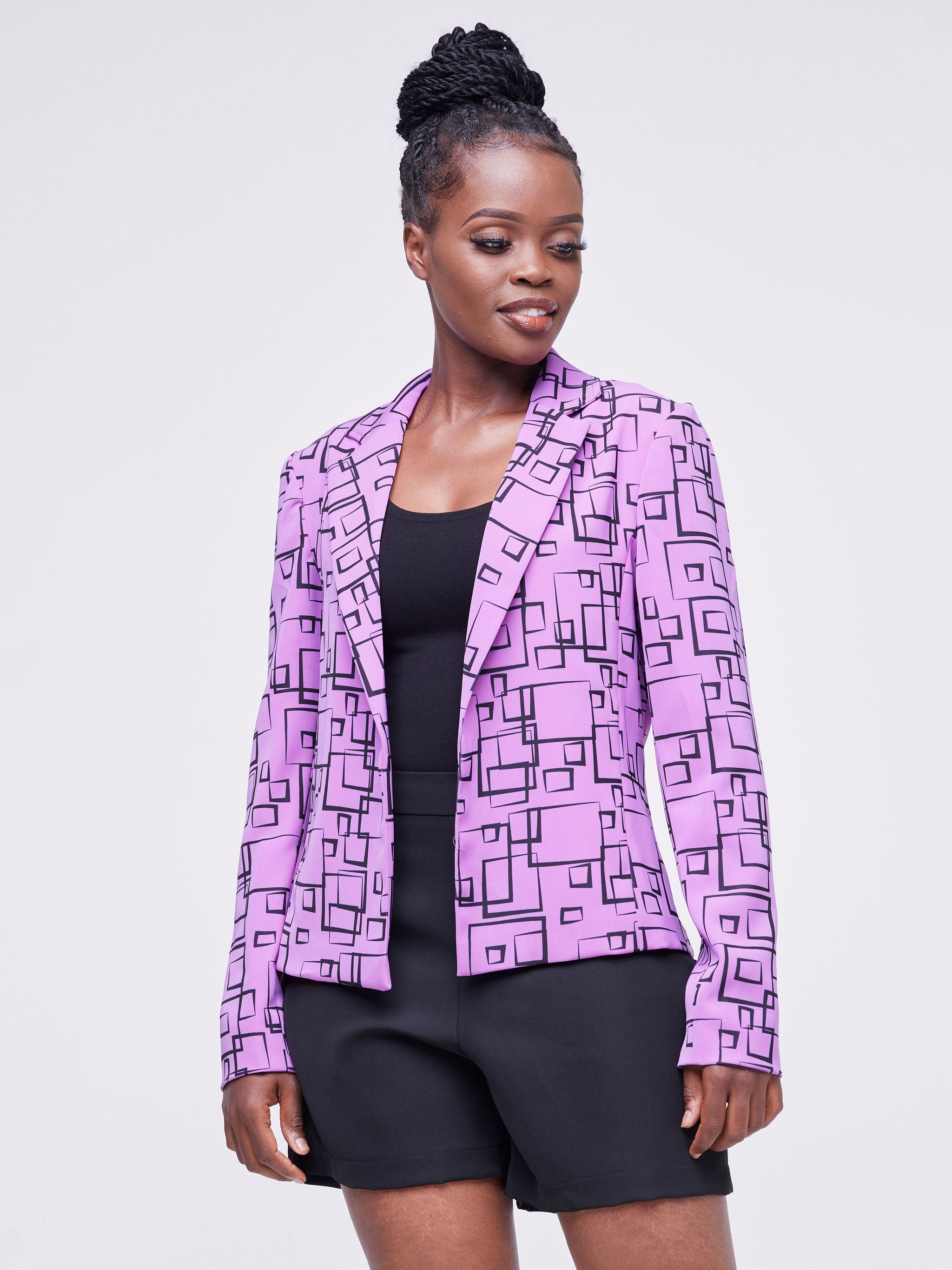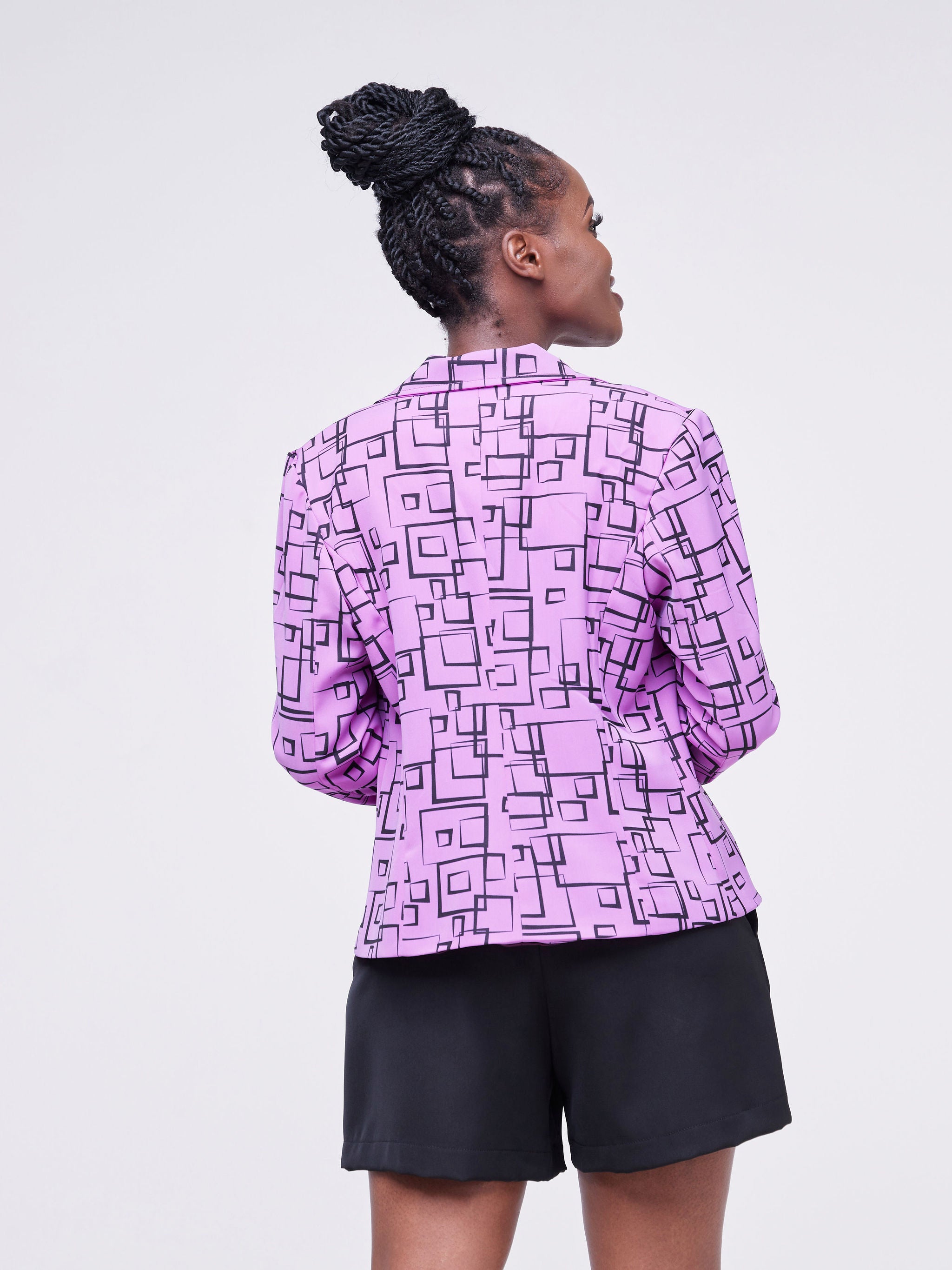Vivo Fahari Long Sleeve Short Jacket - Light Purple Geometric Print