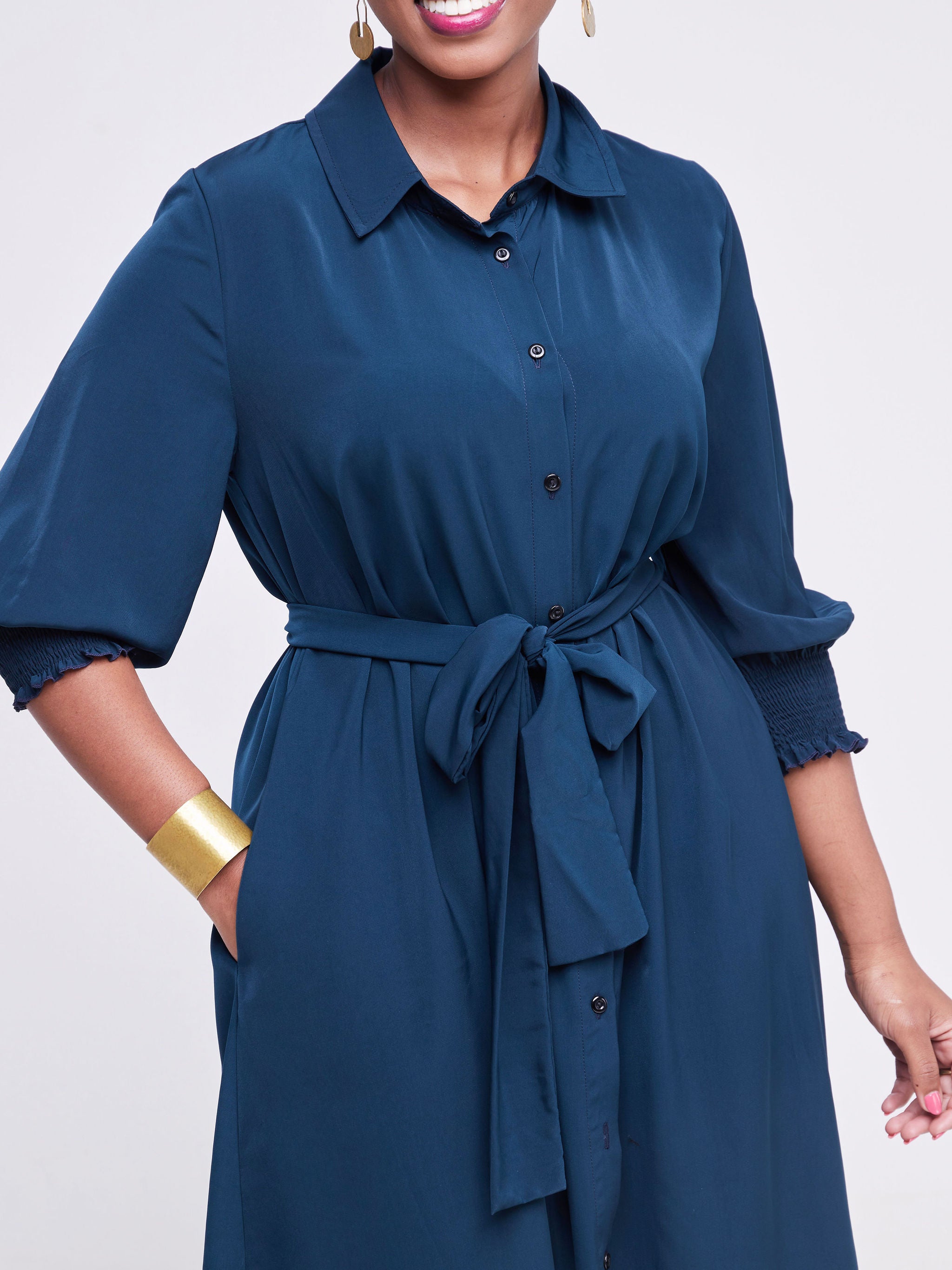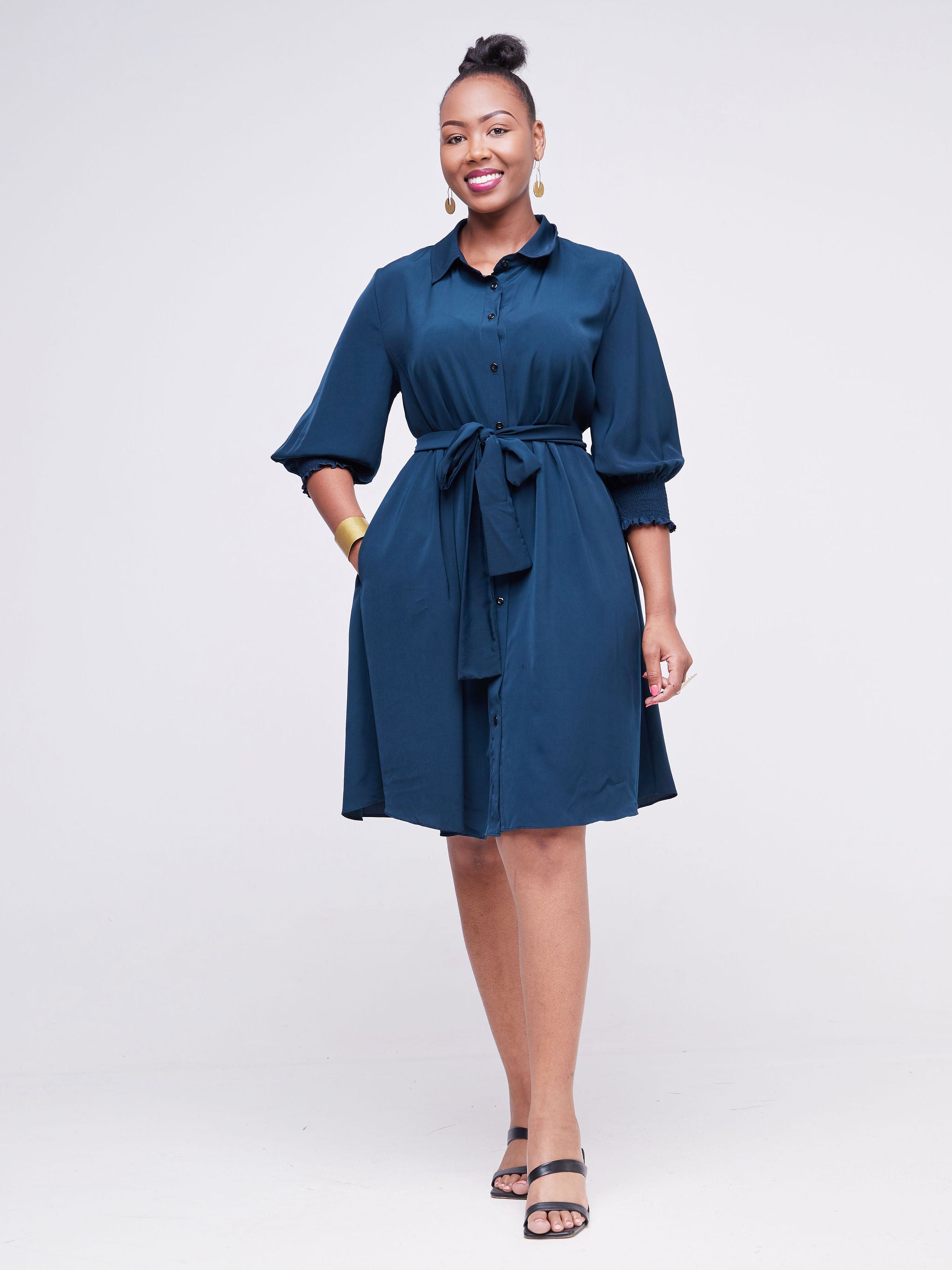 Vivo Fahari 3/4 Sleeve A-Line Shirt Dress - Dark Teal