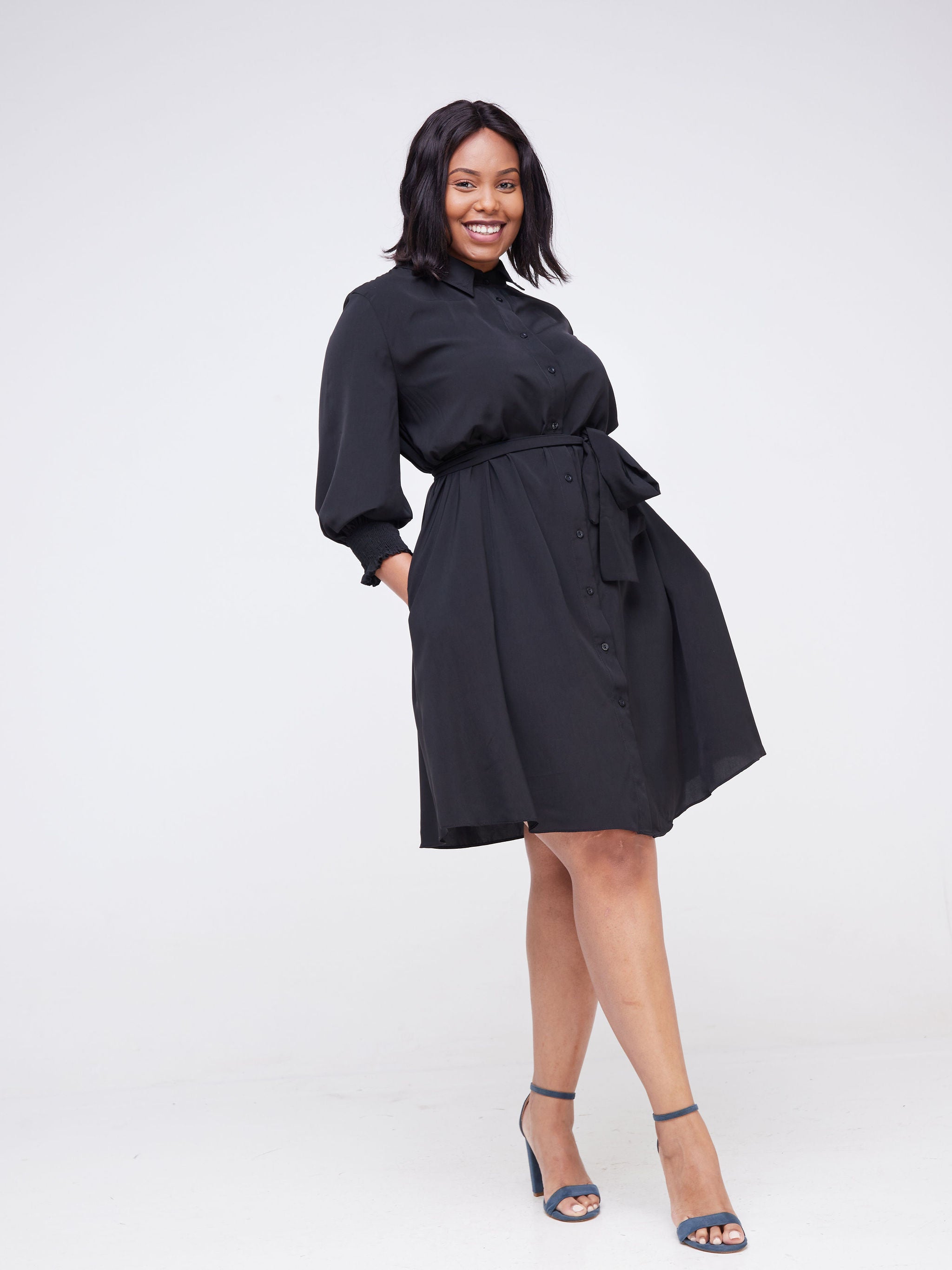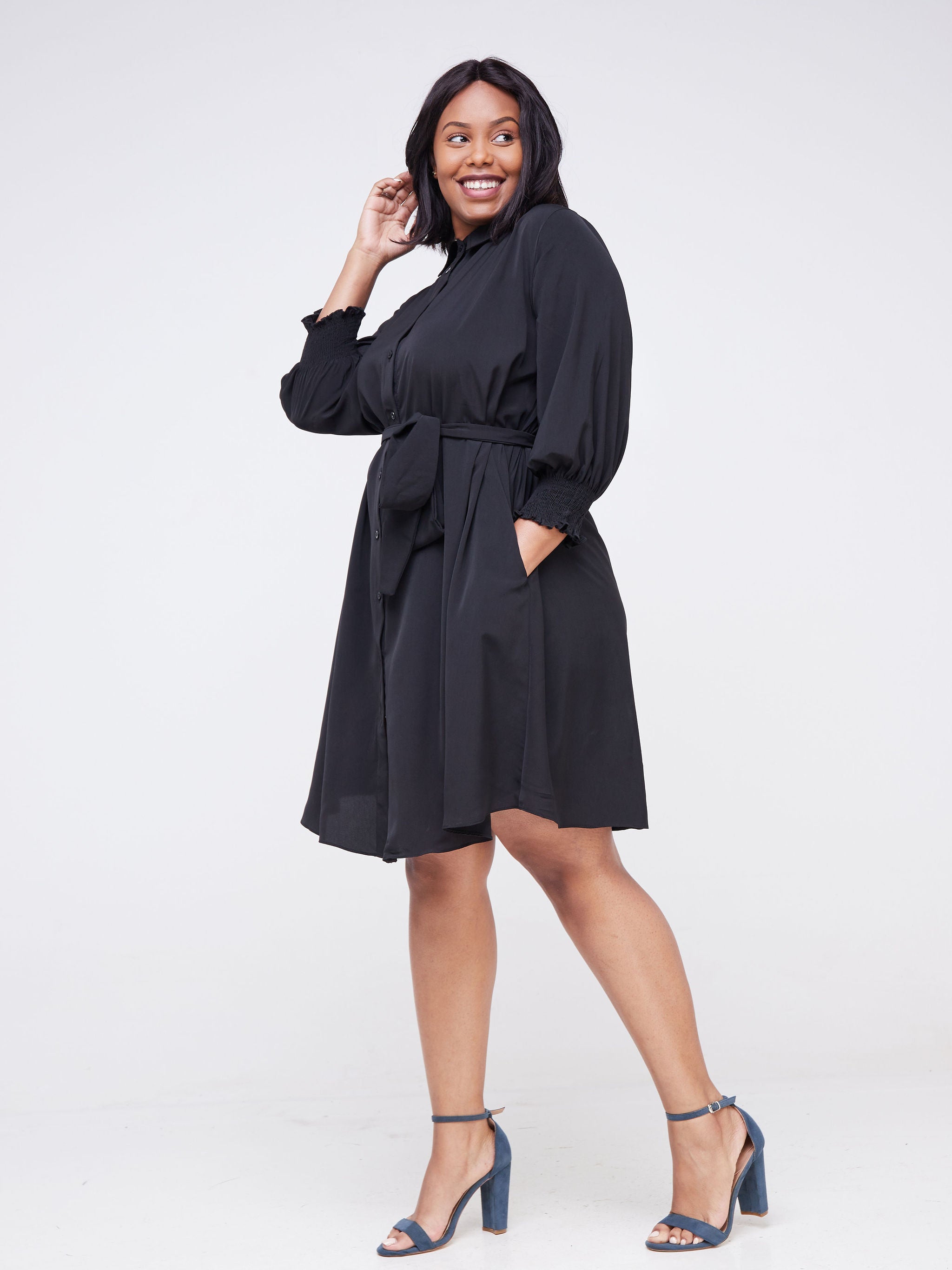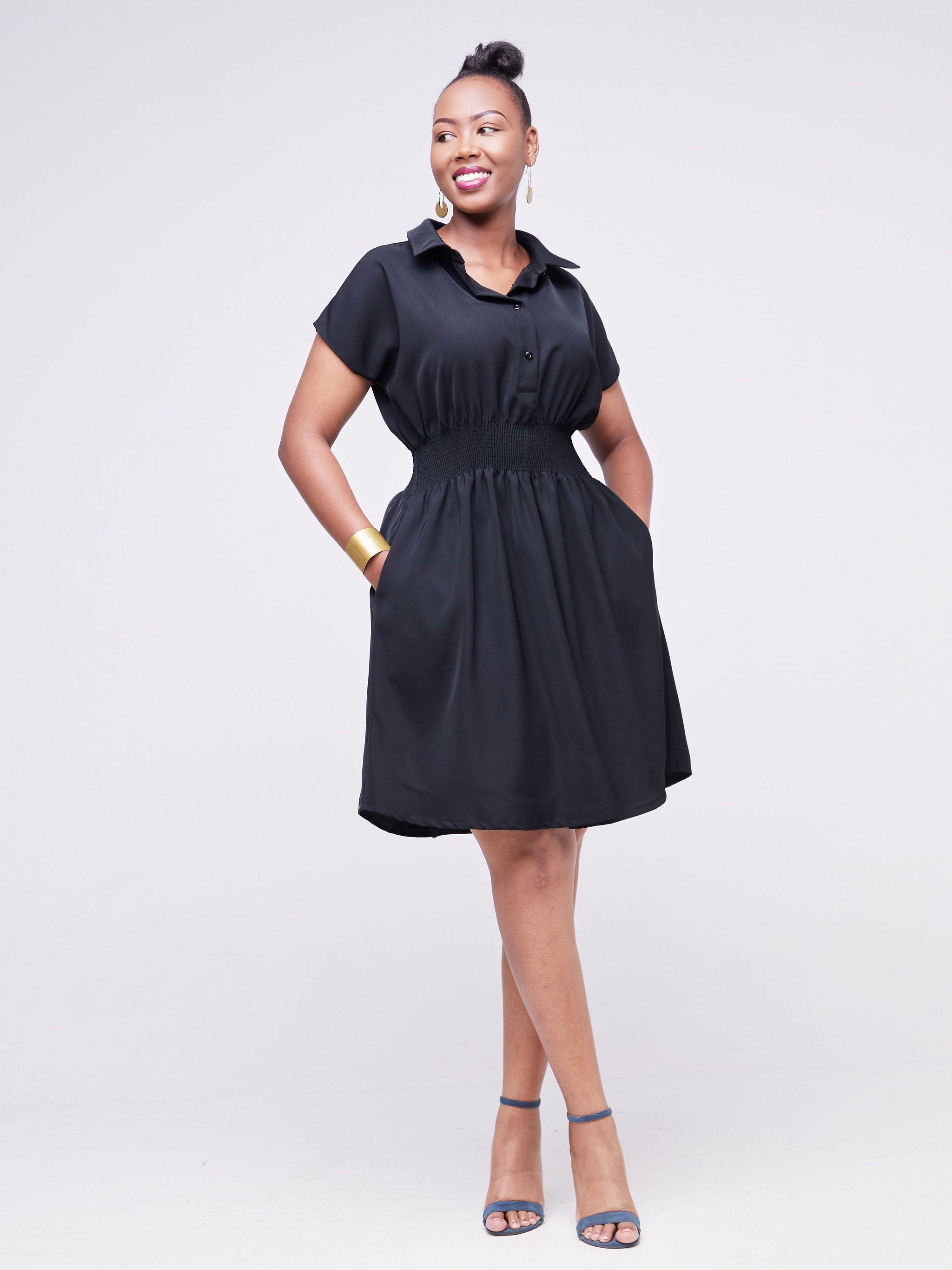 Vivo Fahari Shirred Waist Shirt Dress - Black
