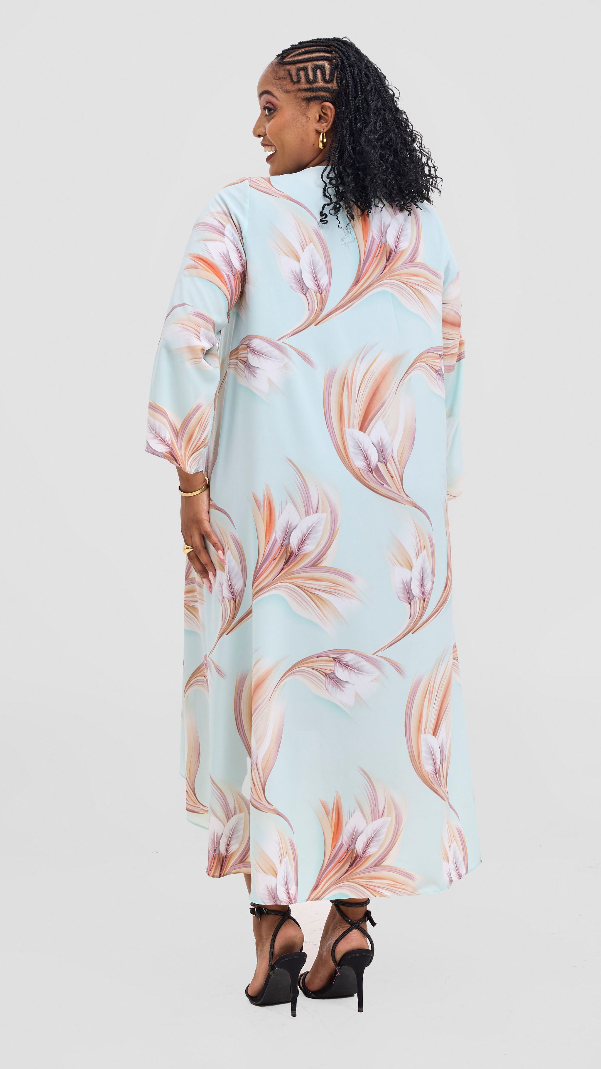Vivo Maisha Long Sleeve High Low Kimono - Mint / Beige Tawi Print