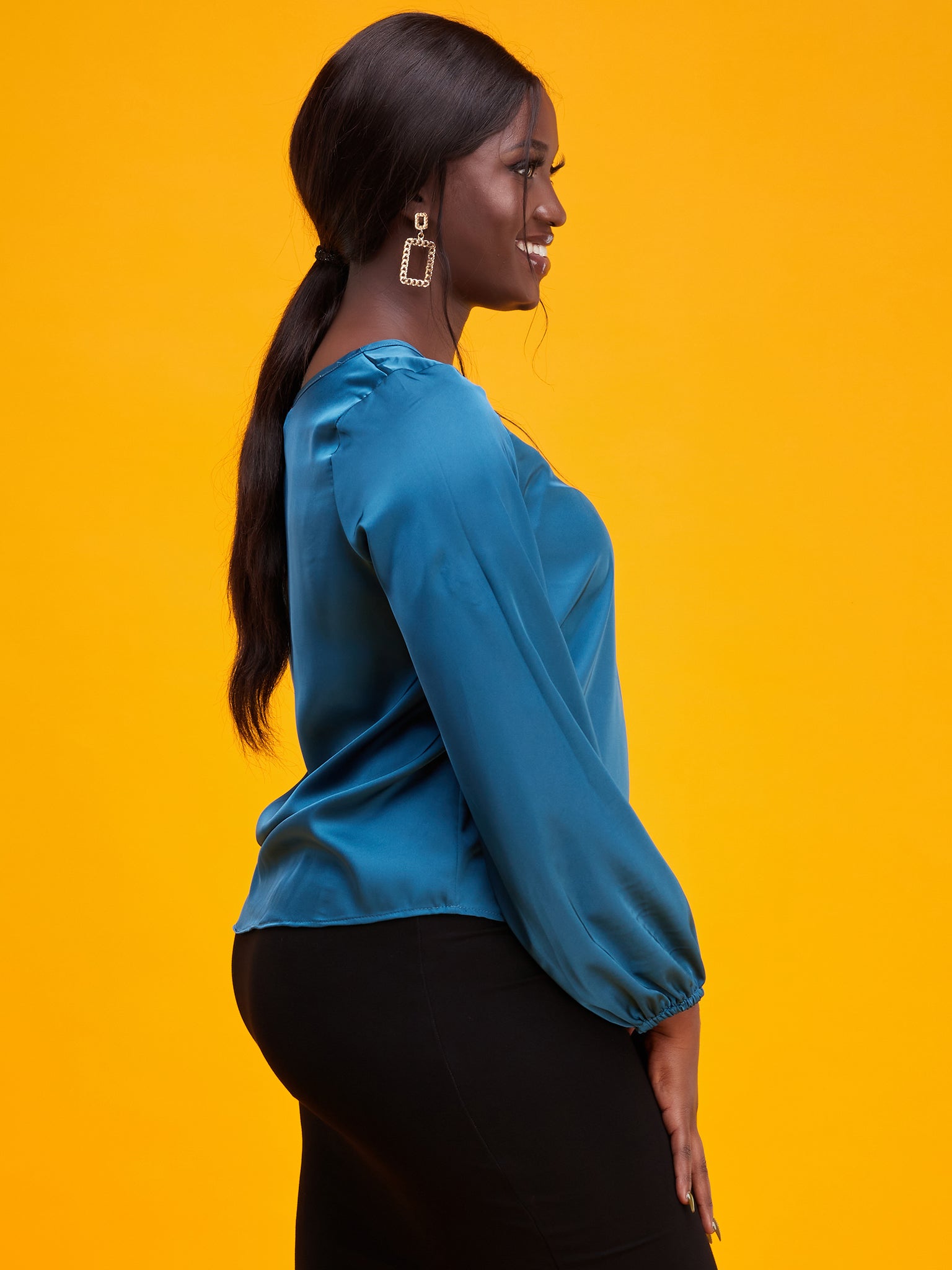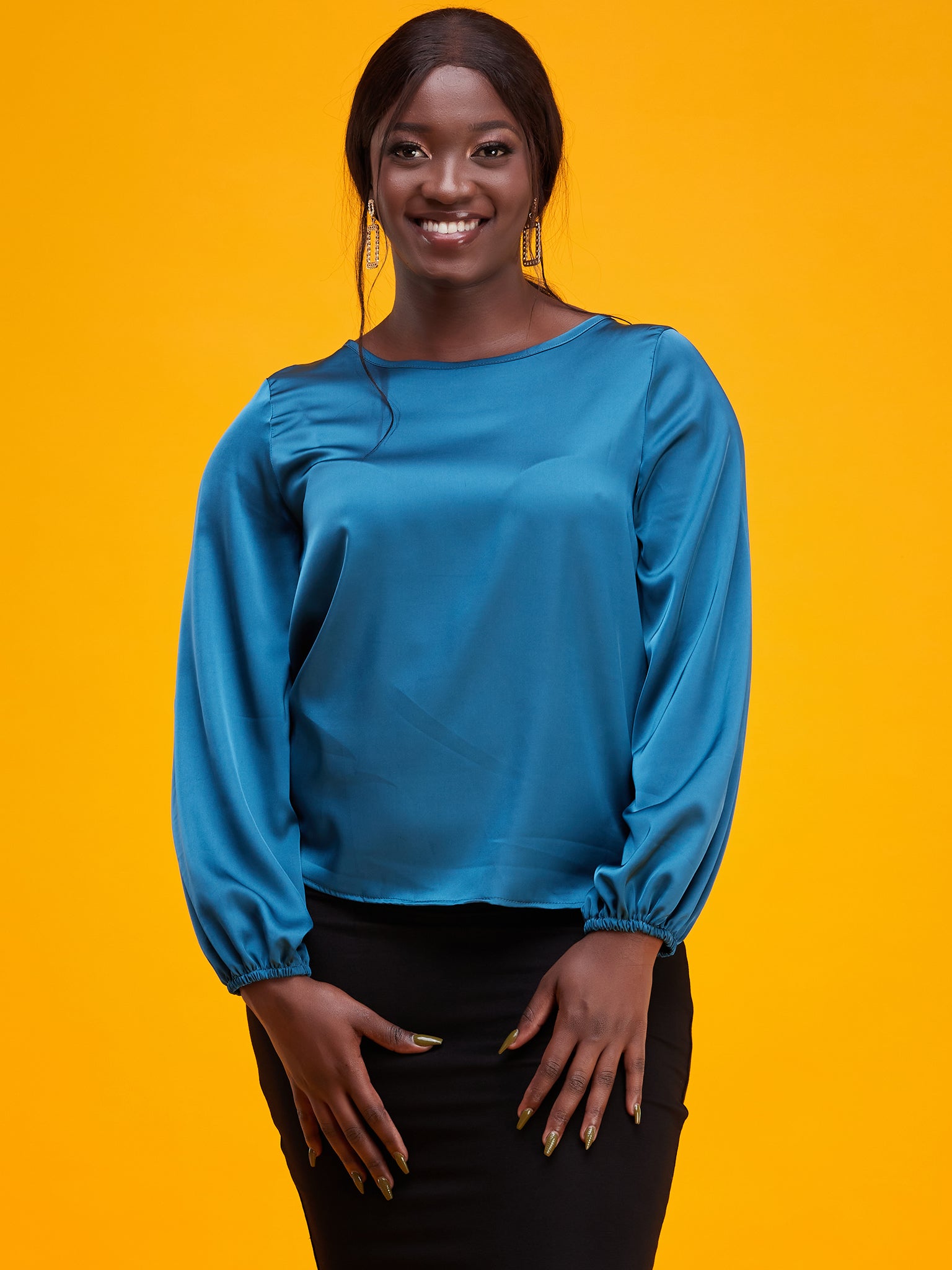 Vivo Basic Satin Bishop Sleeved Top - Sample