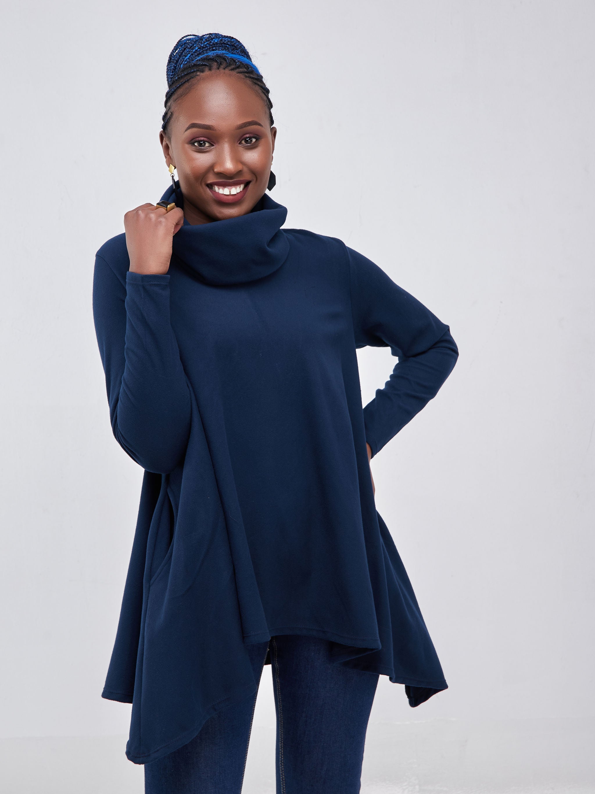 Vivo Basic Fleece Cowl Sweater - Teal