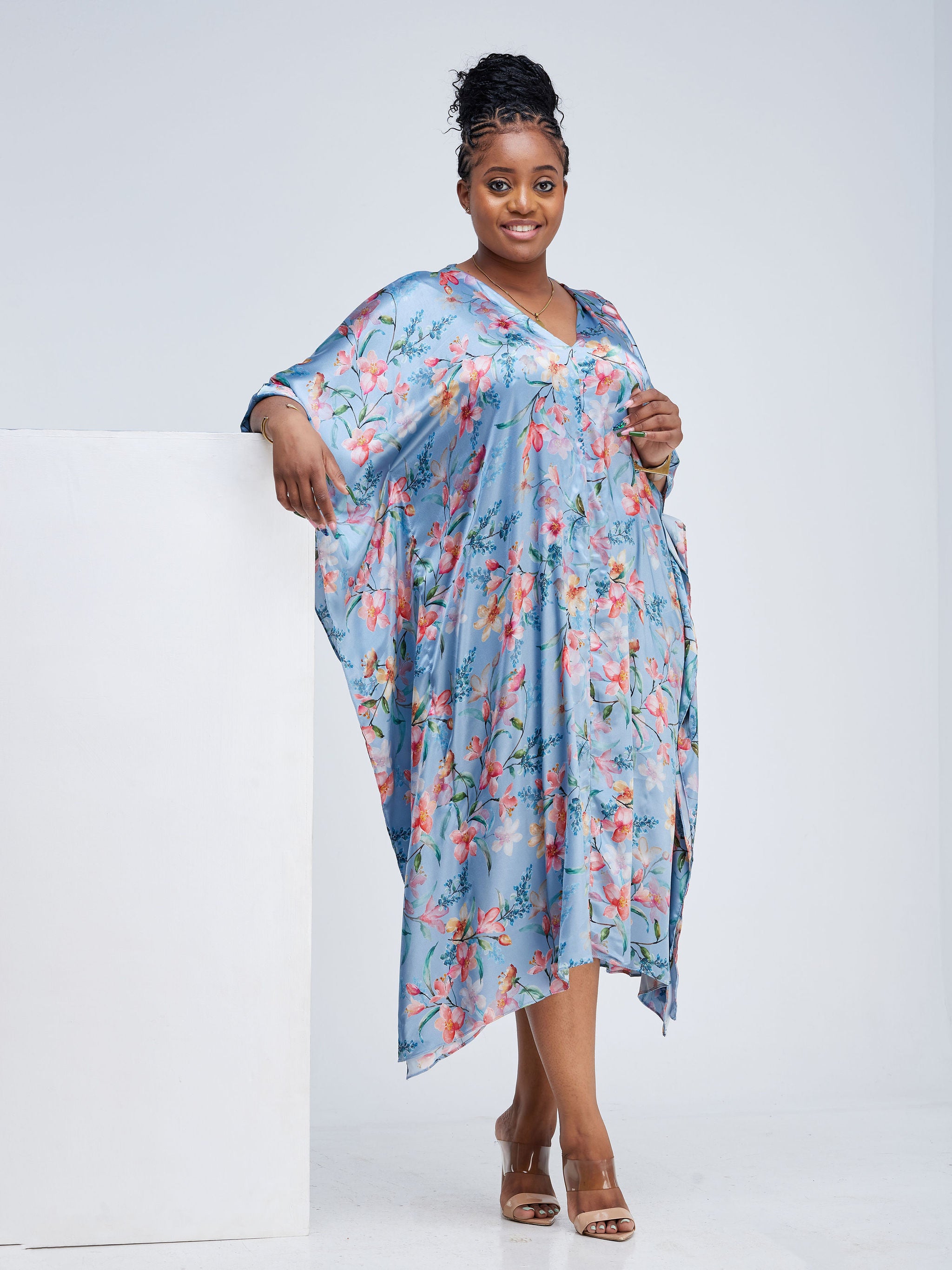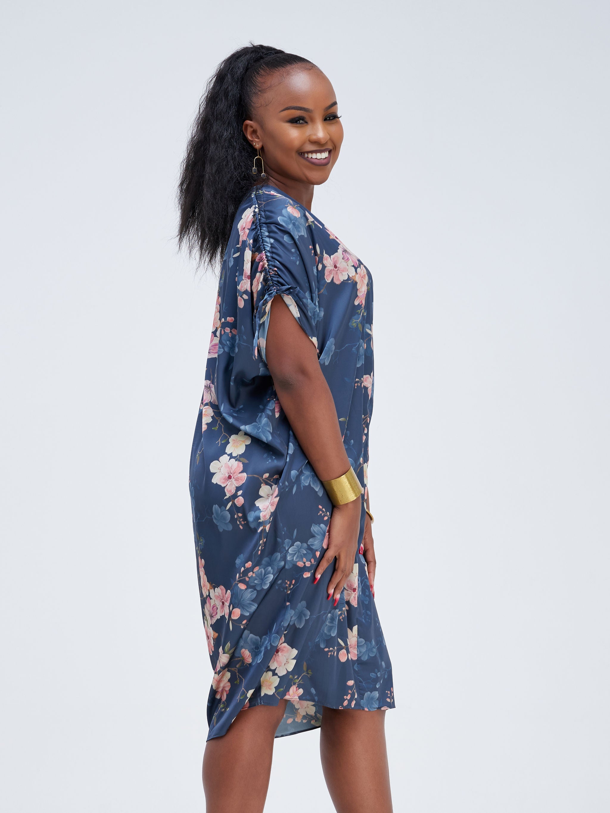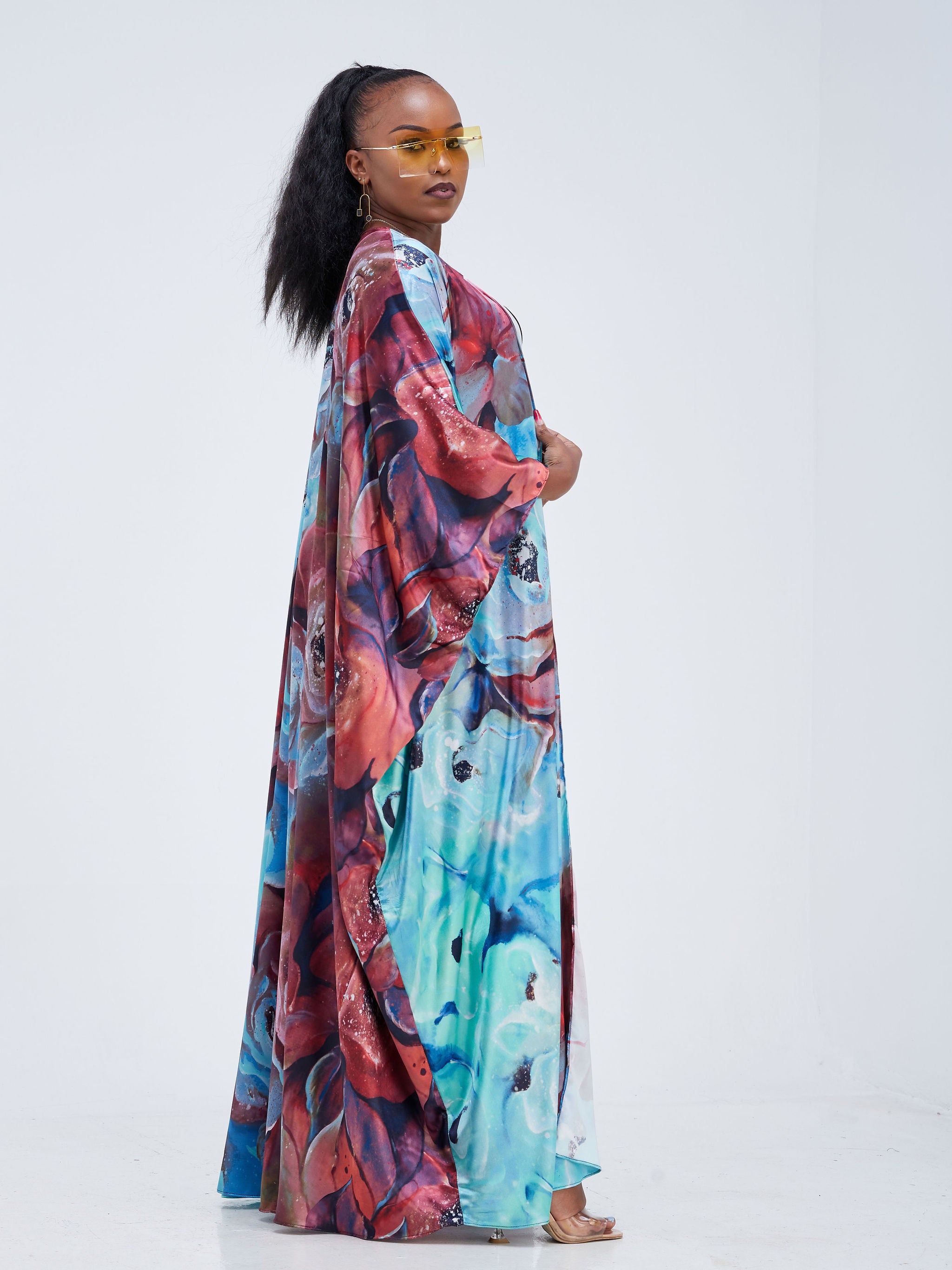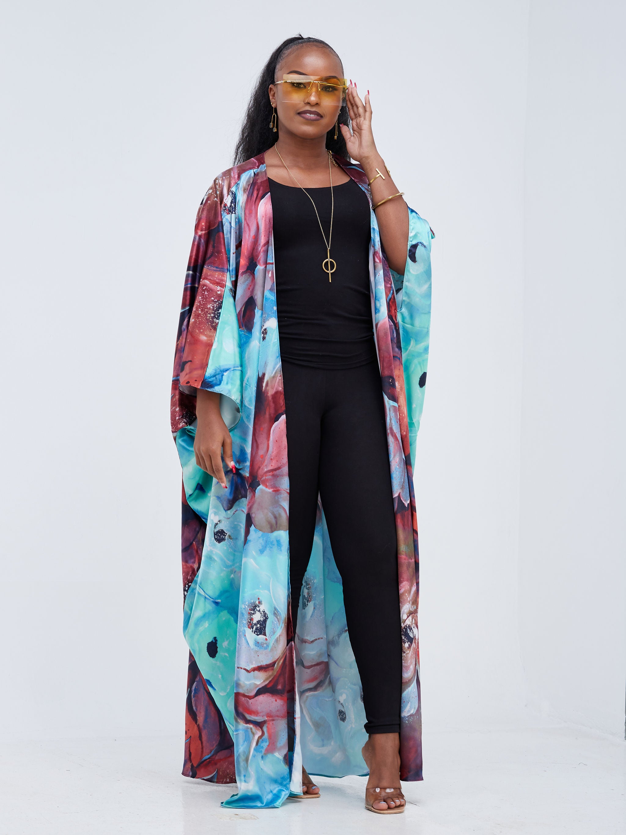 Zoya Brave Satin Long Kimono - Navy Blue