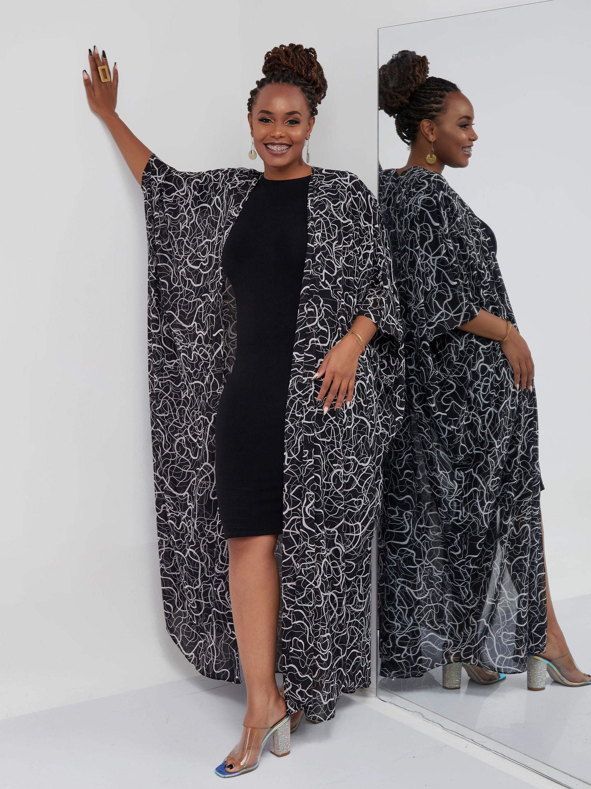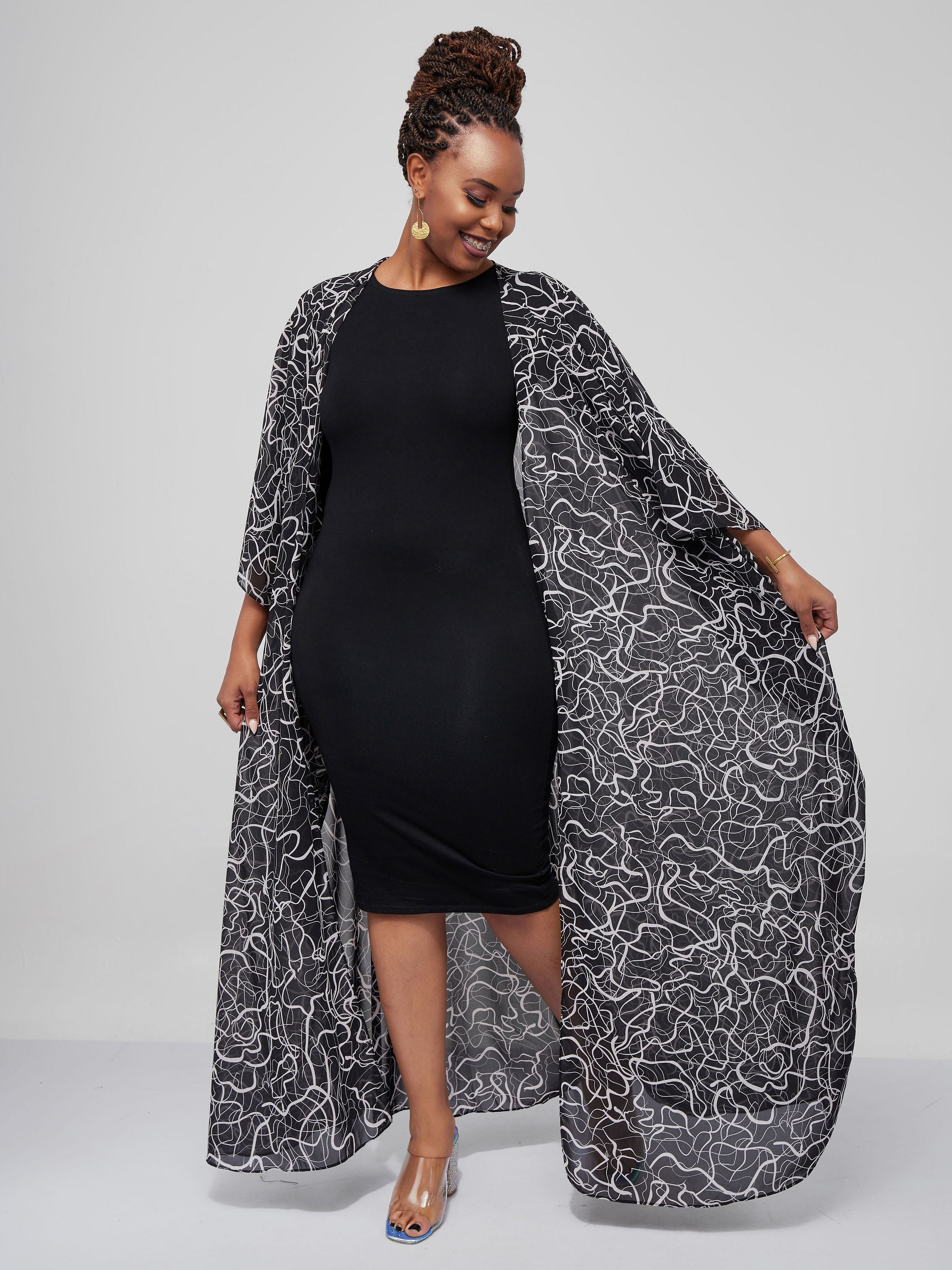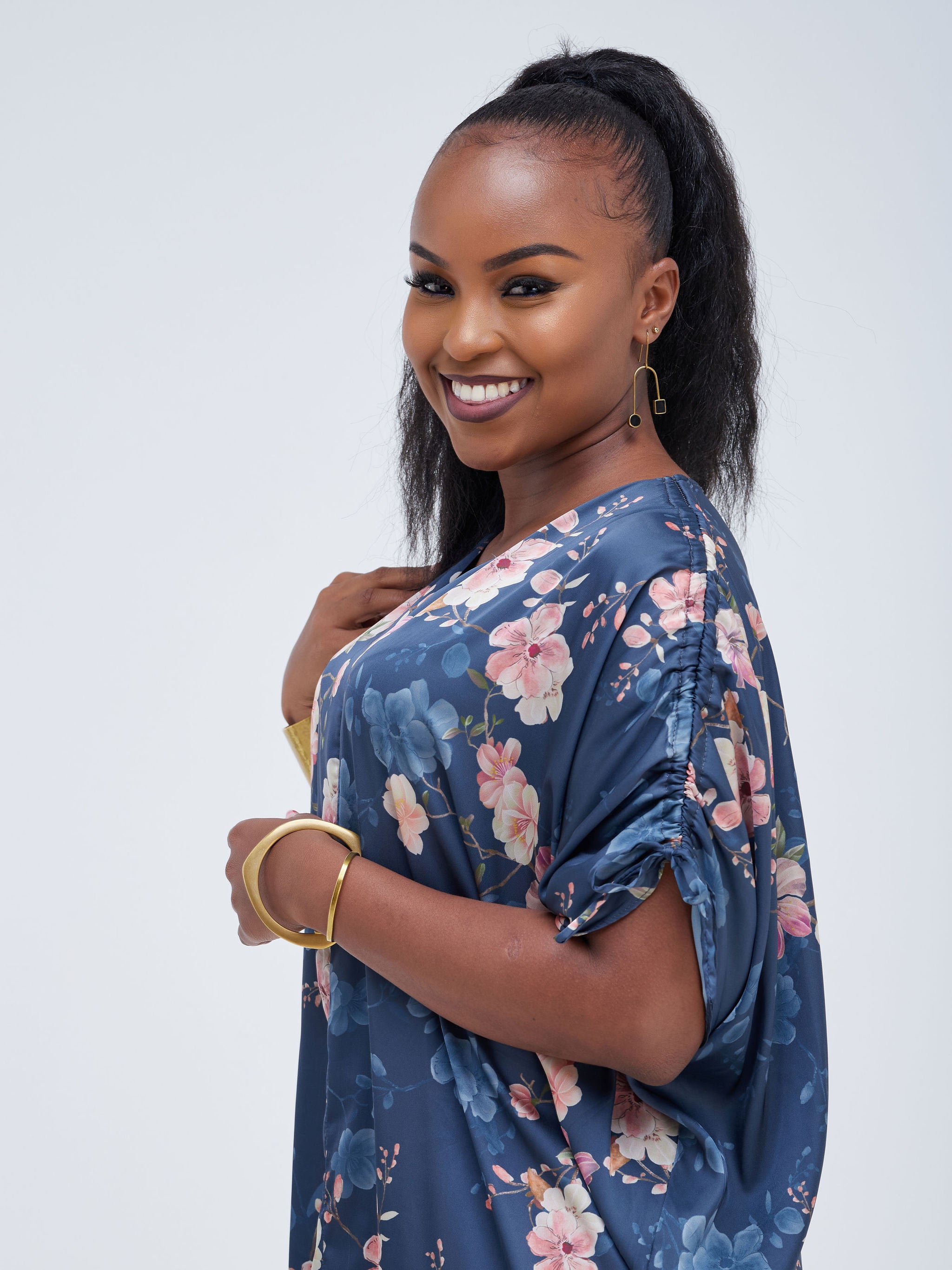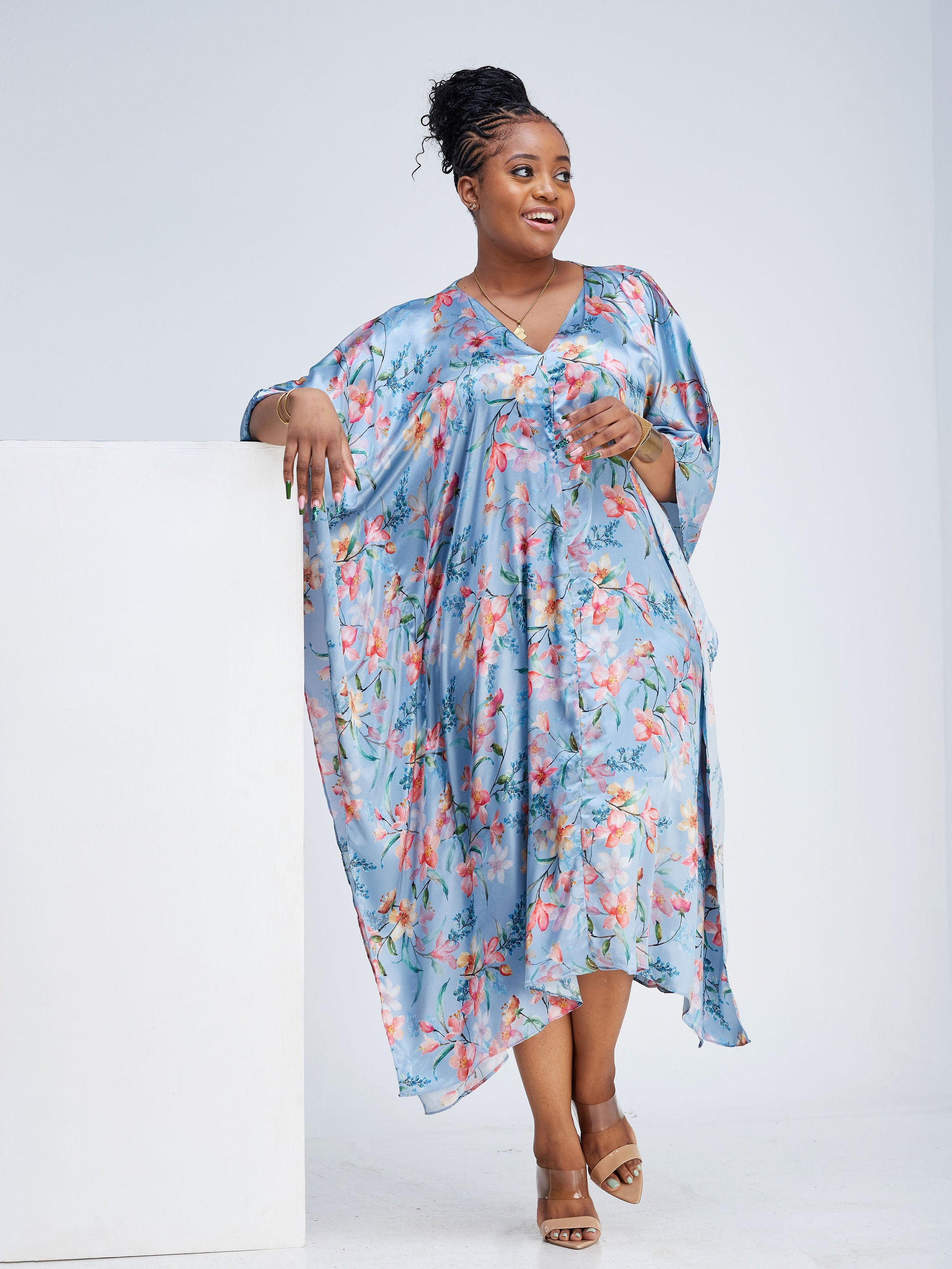 Zoya Brave Satin Long Kimono - Navy Blue