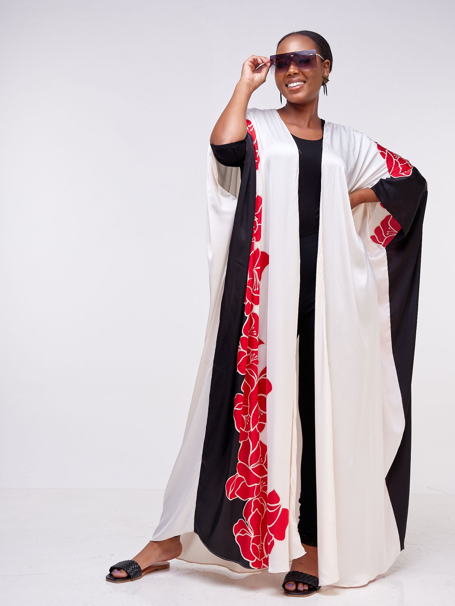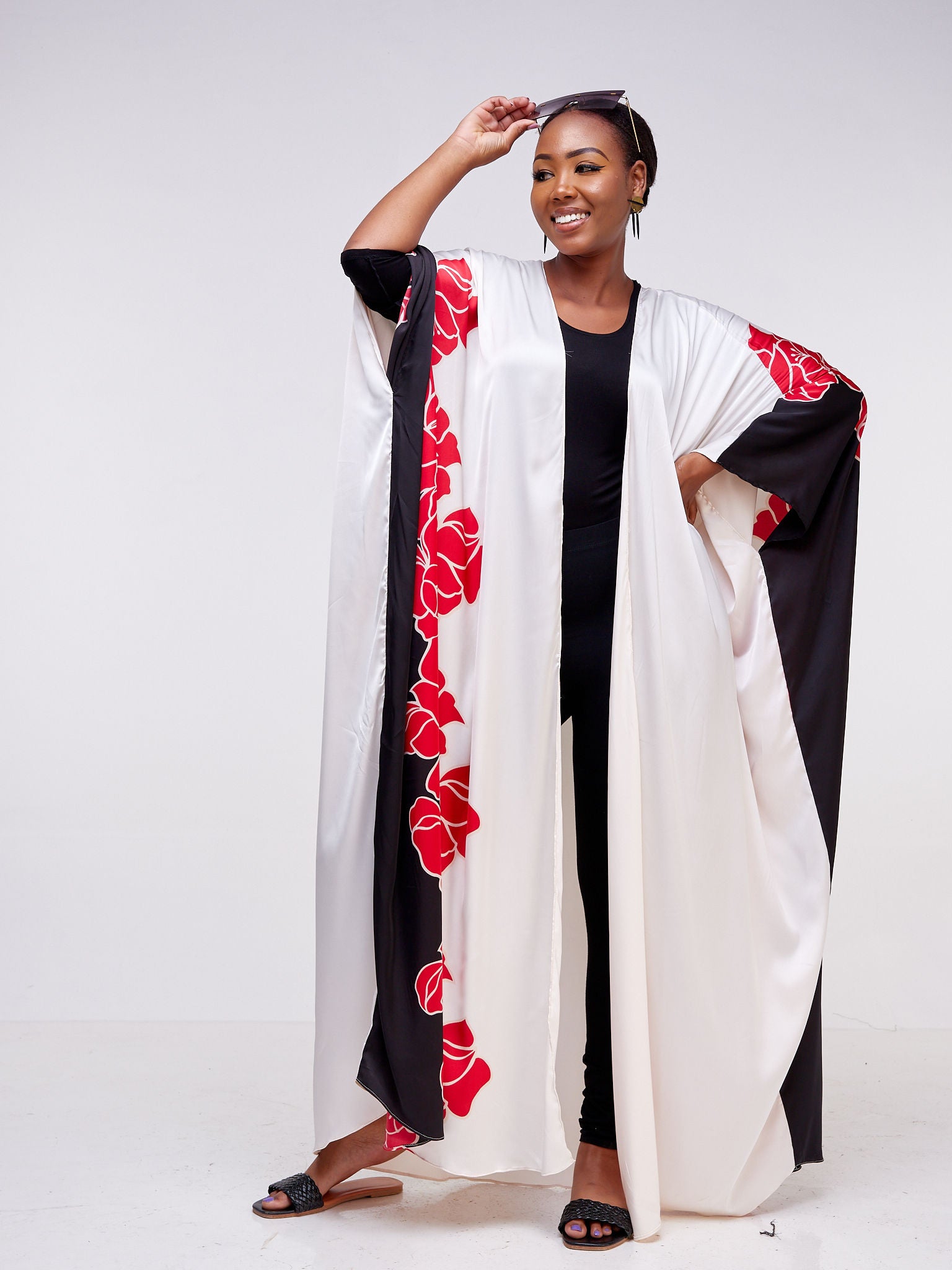 Vivo Kitenge Maxi Kimono - Black / White Ankara Print