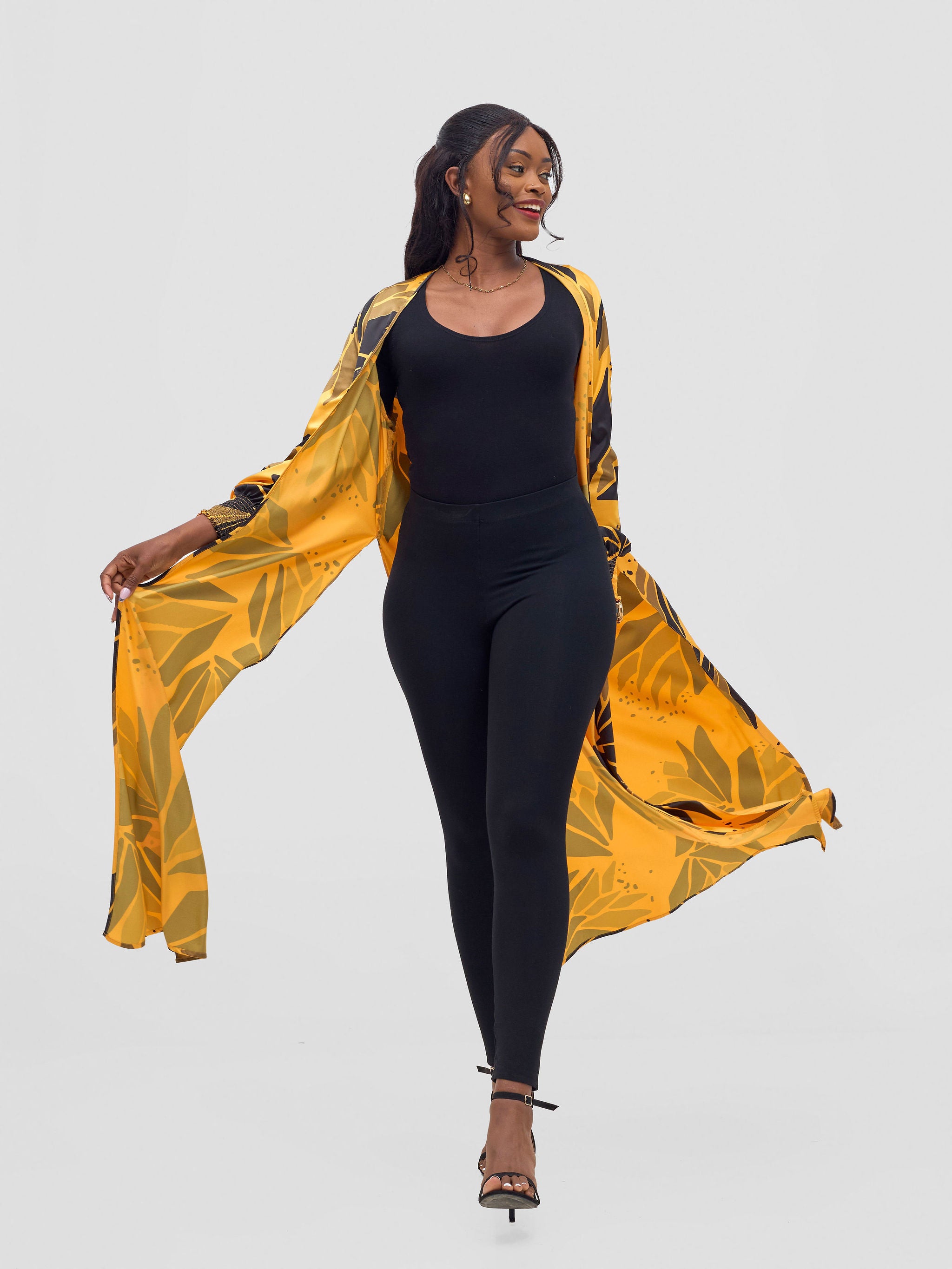 Vivo Basic Hooded Kimono - Black / Yellow Print