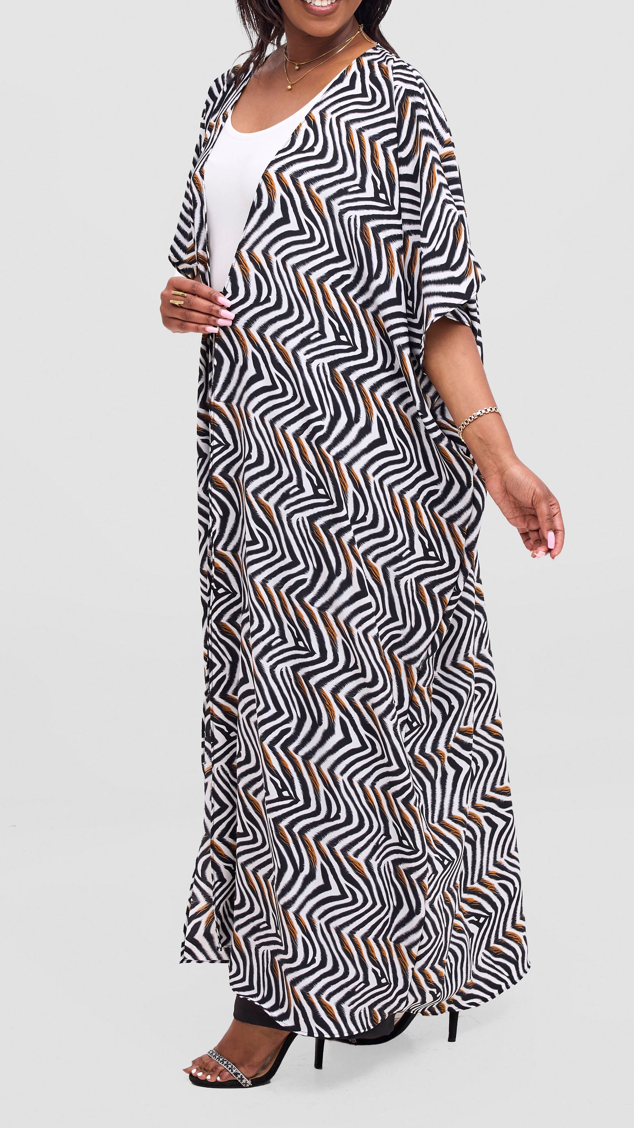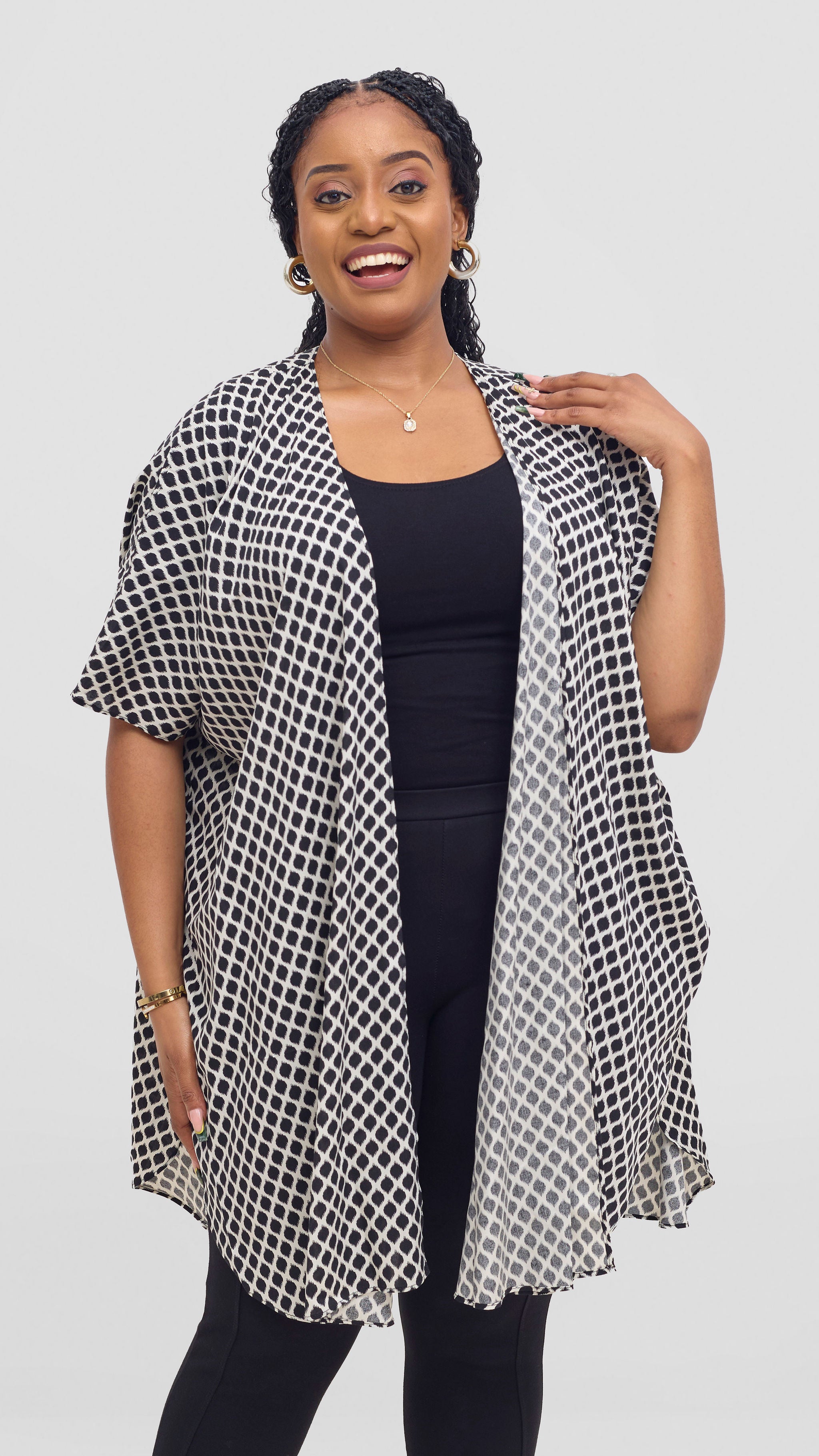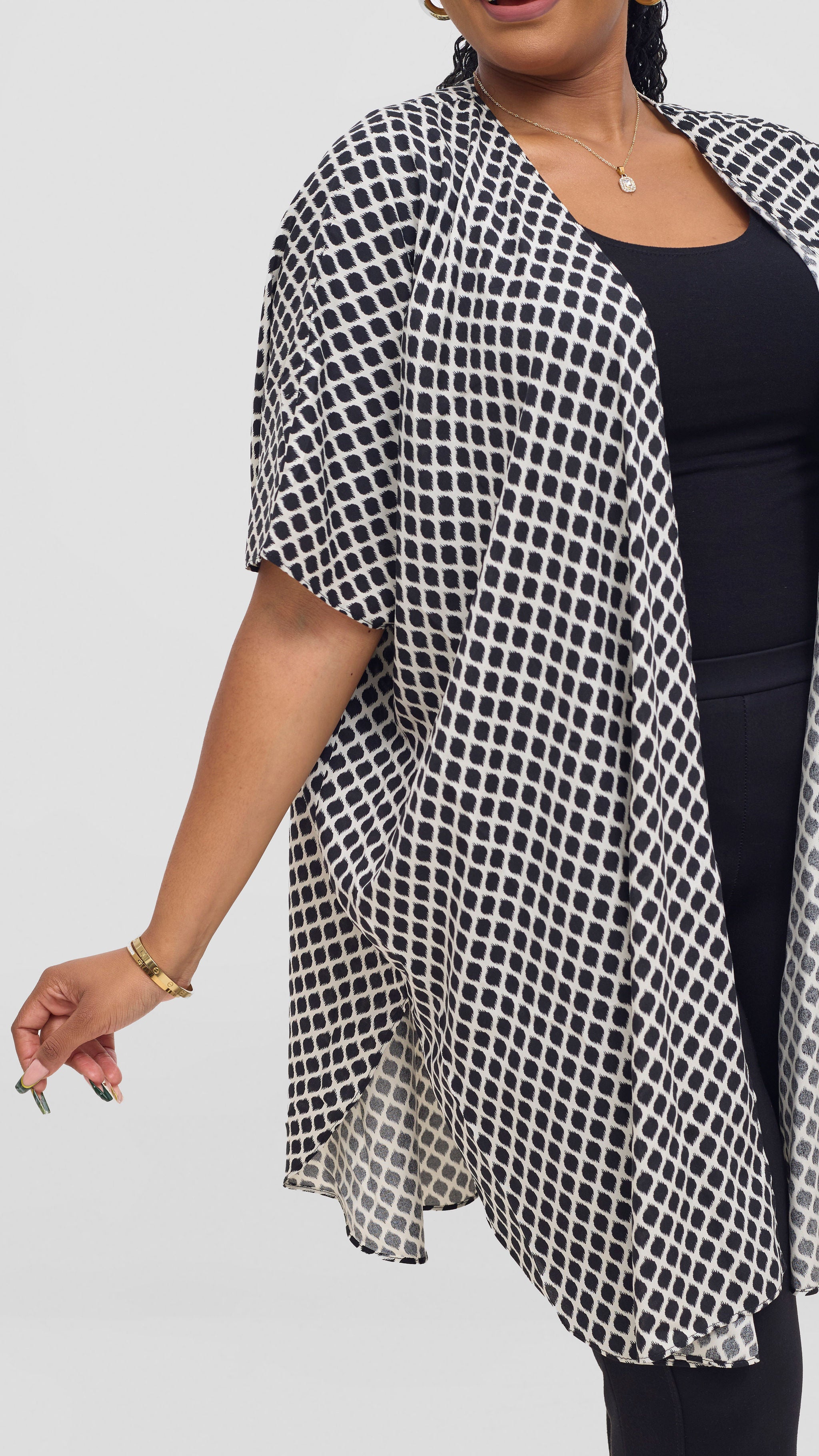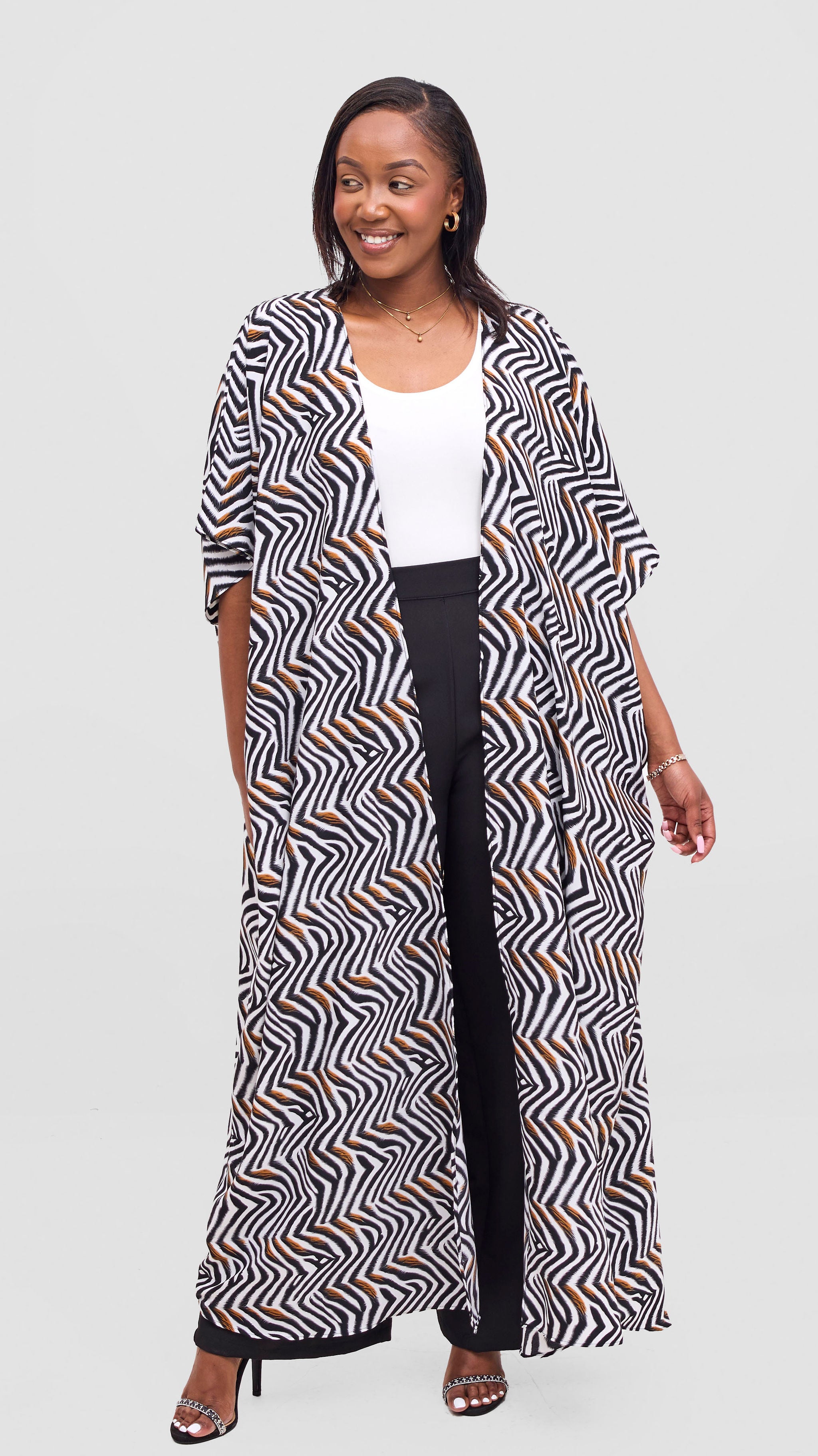 Vivo Maisha Long Sleeve High Low Kimono - Black / Off White Wia Print