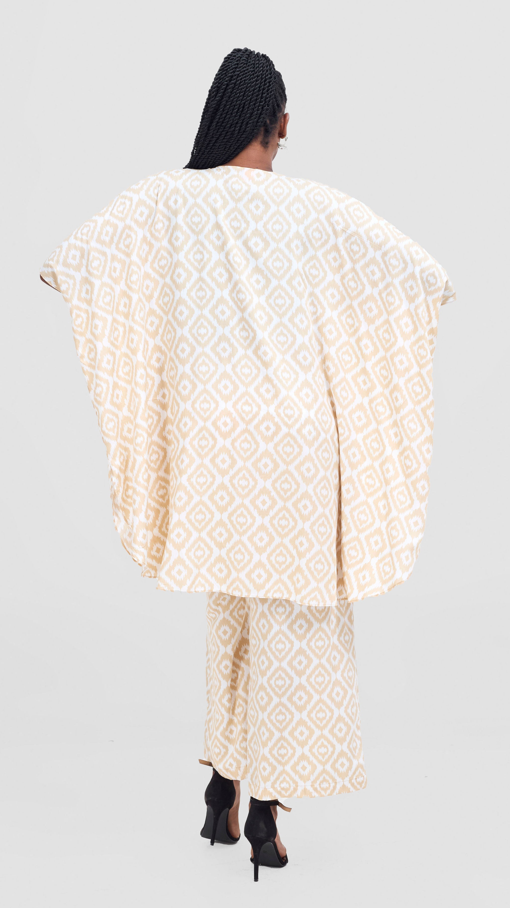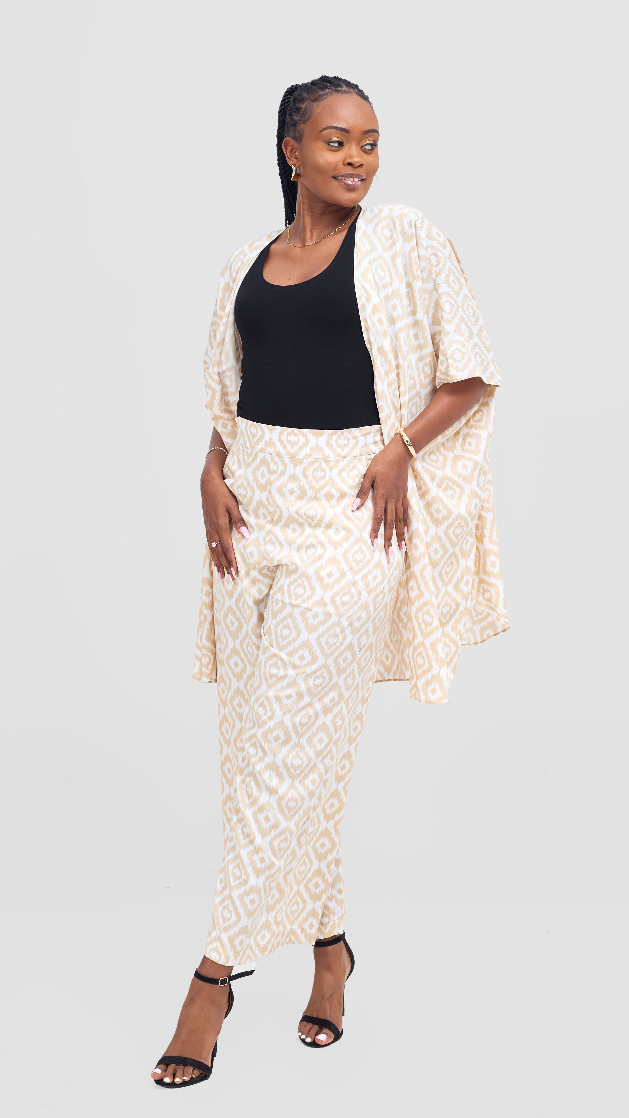 Vivo Maisha Long Sleeve High Low Kimono - Cream / Gold Uwa Print