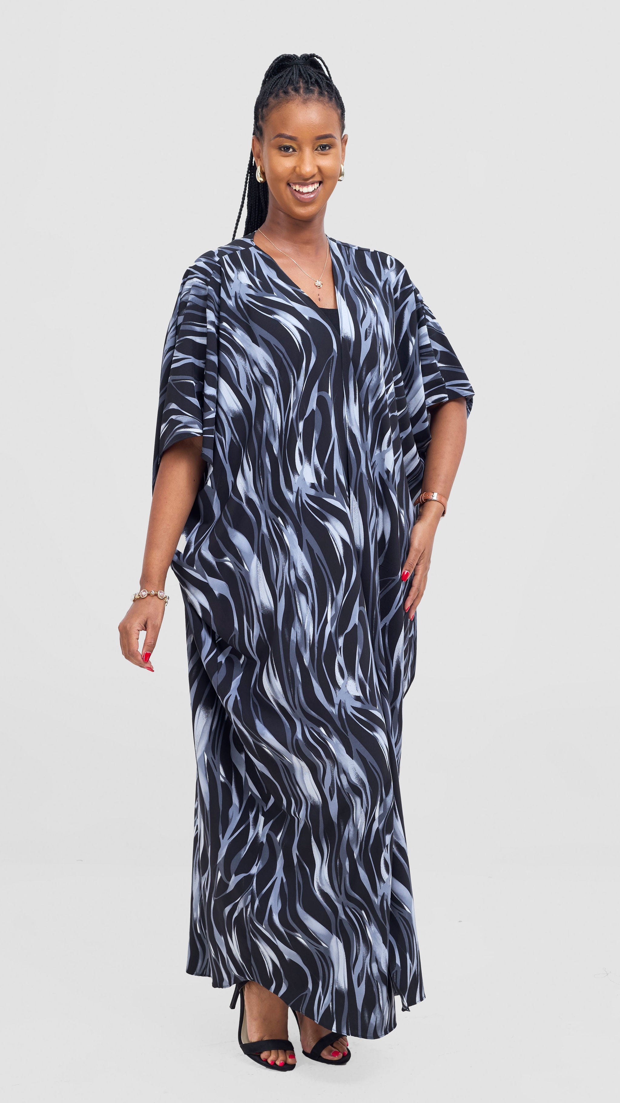 Vivo Maisha Wide Kimono - Grey / Black Print