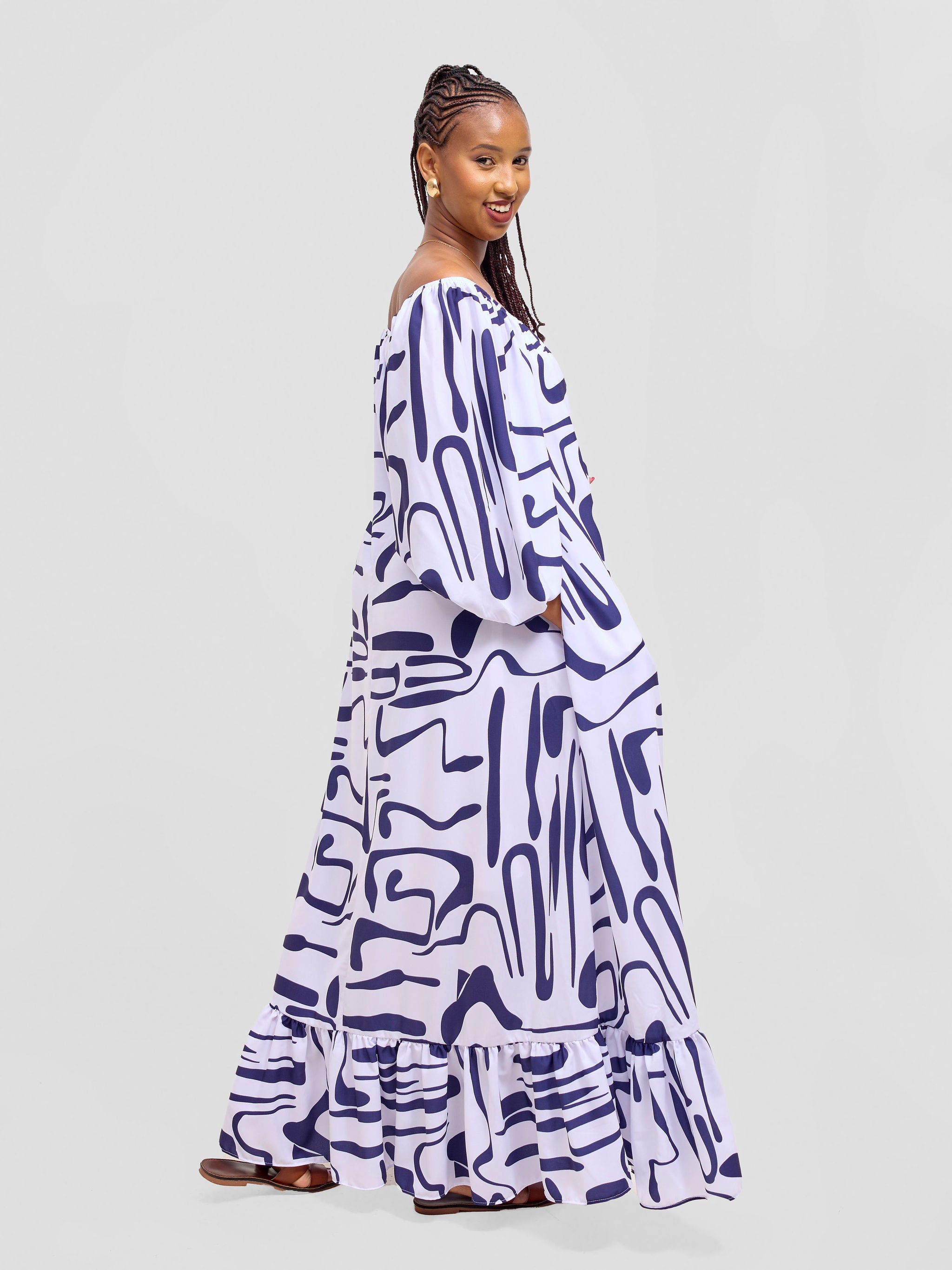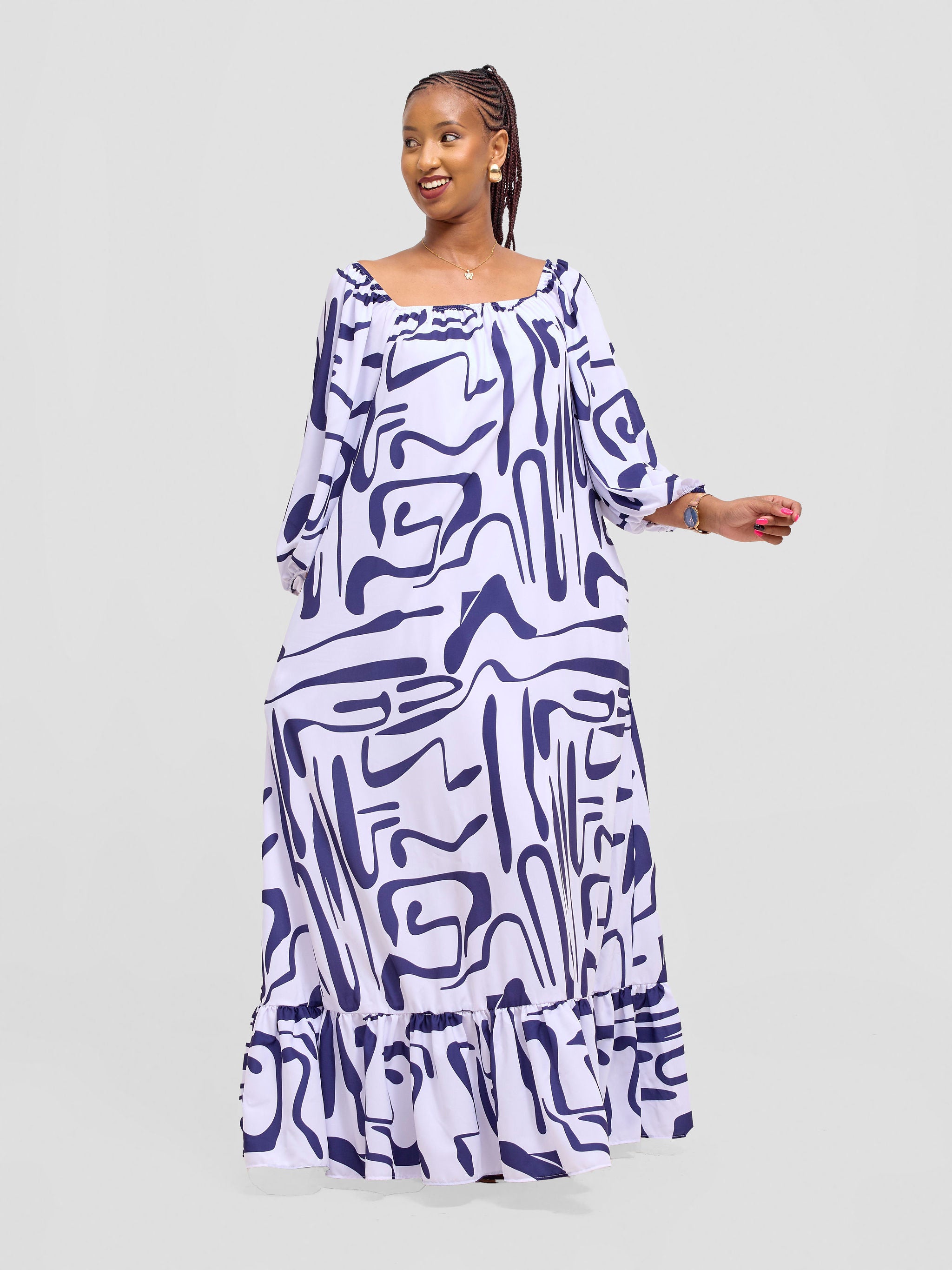 Safari Kitenge Side Frill Kaftan - Maya