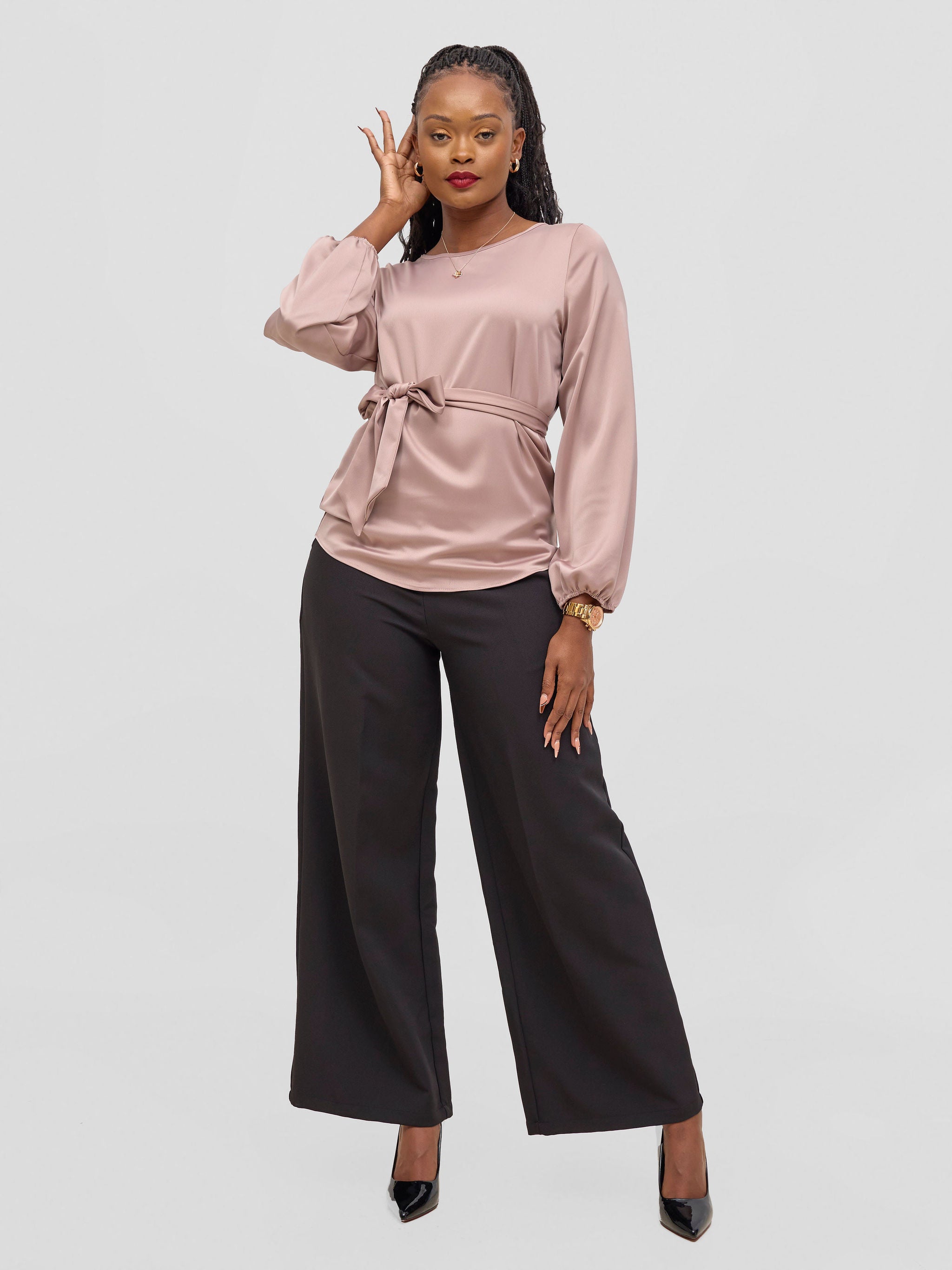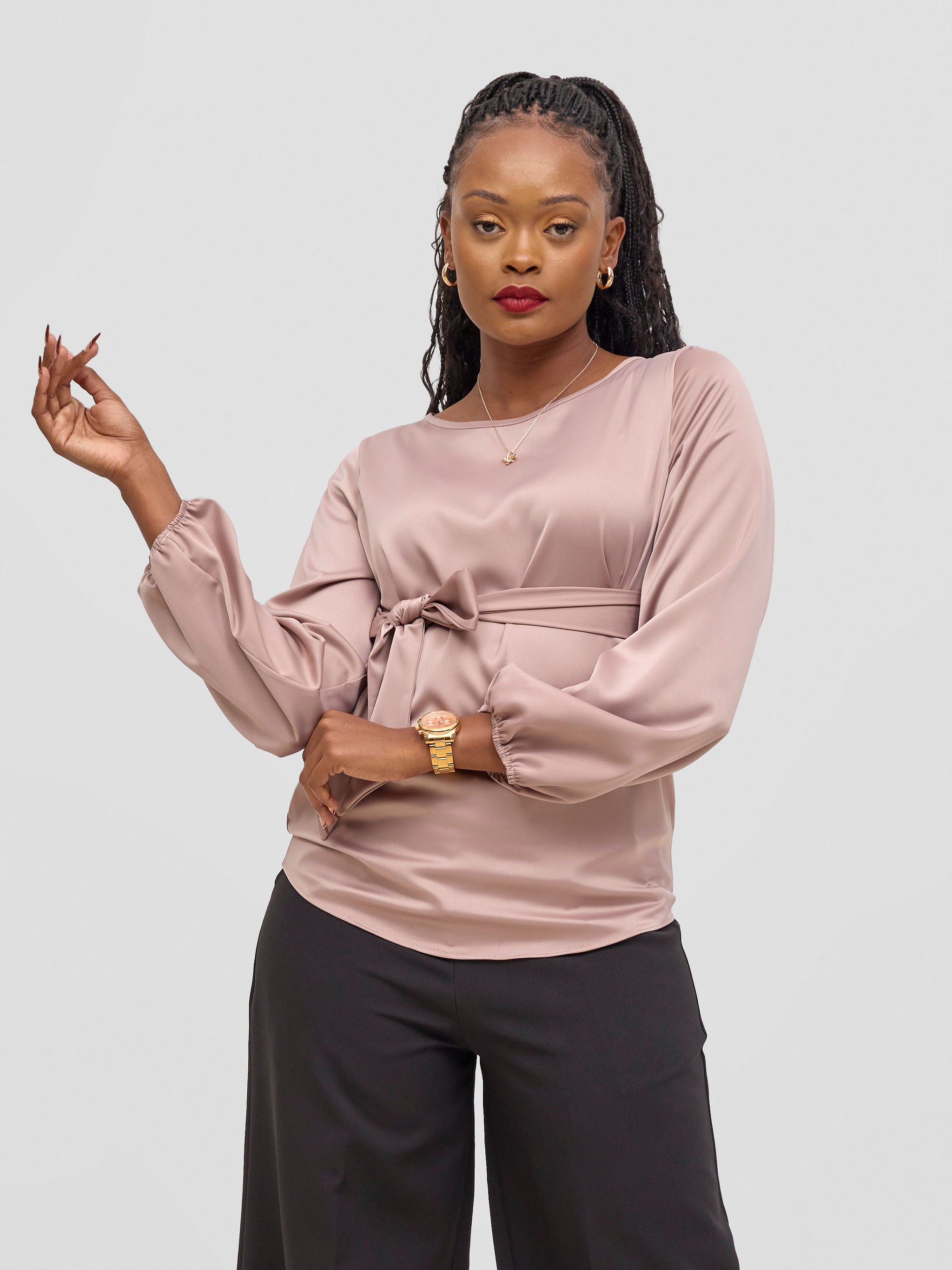 Vivo Meli Bishop Sleeve Tie Top - Taupe