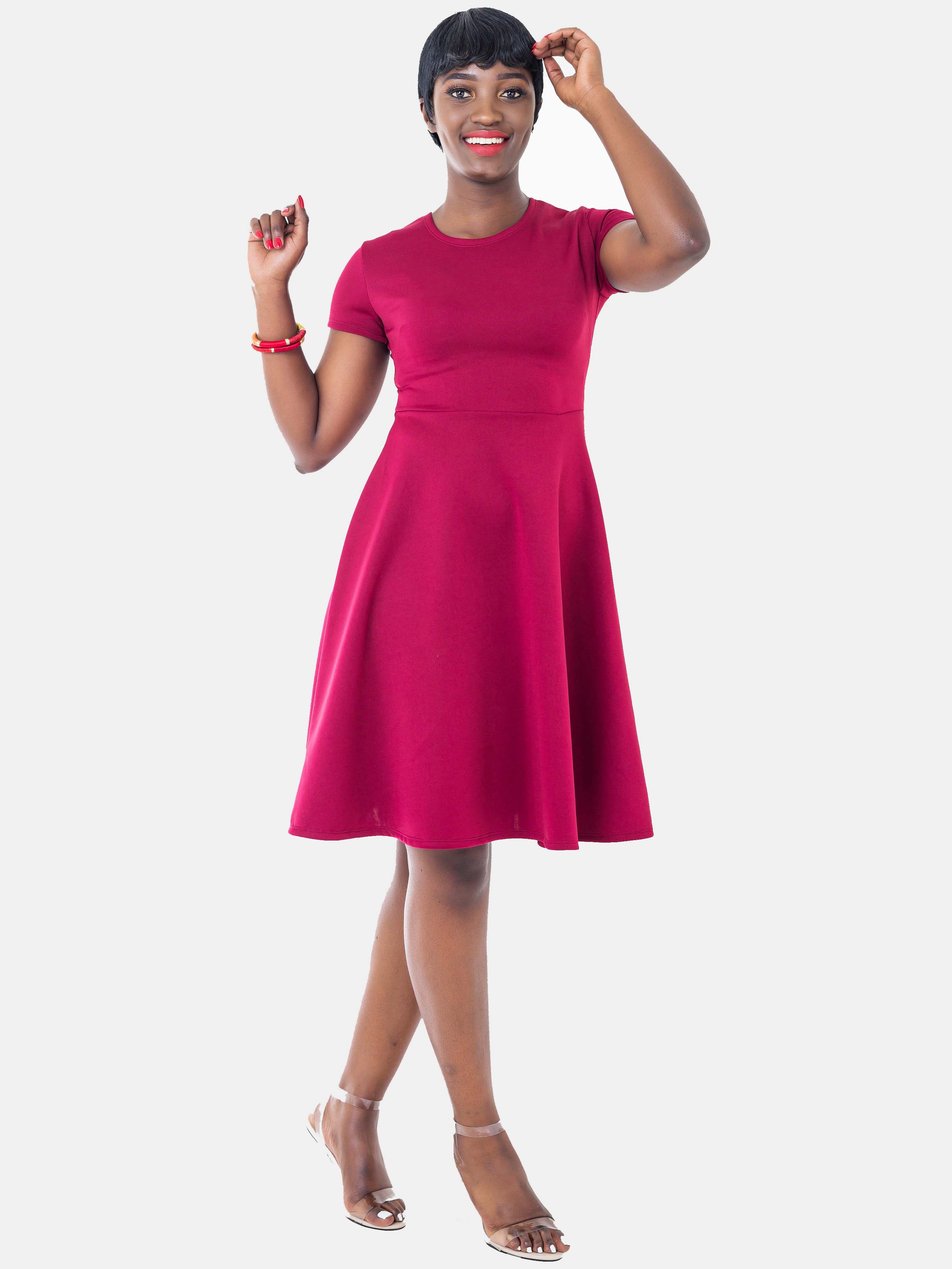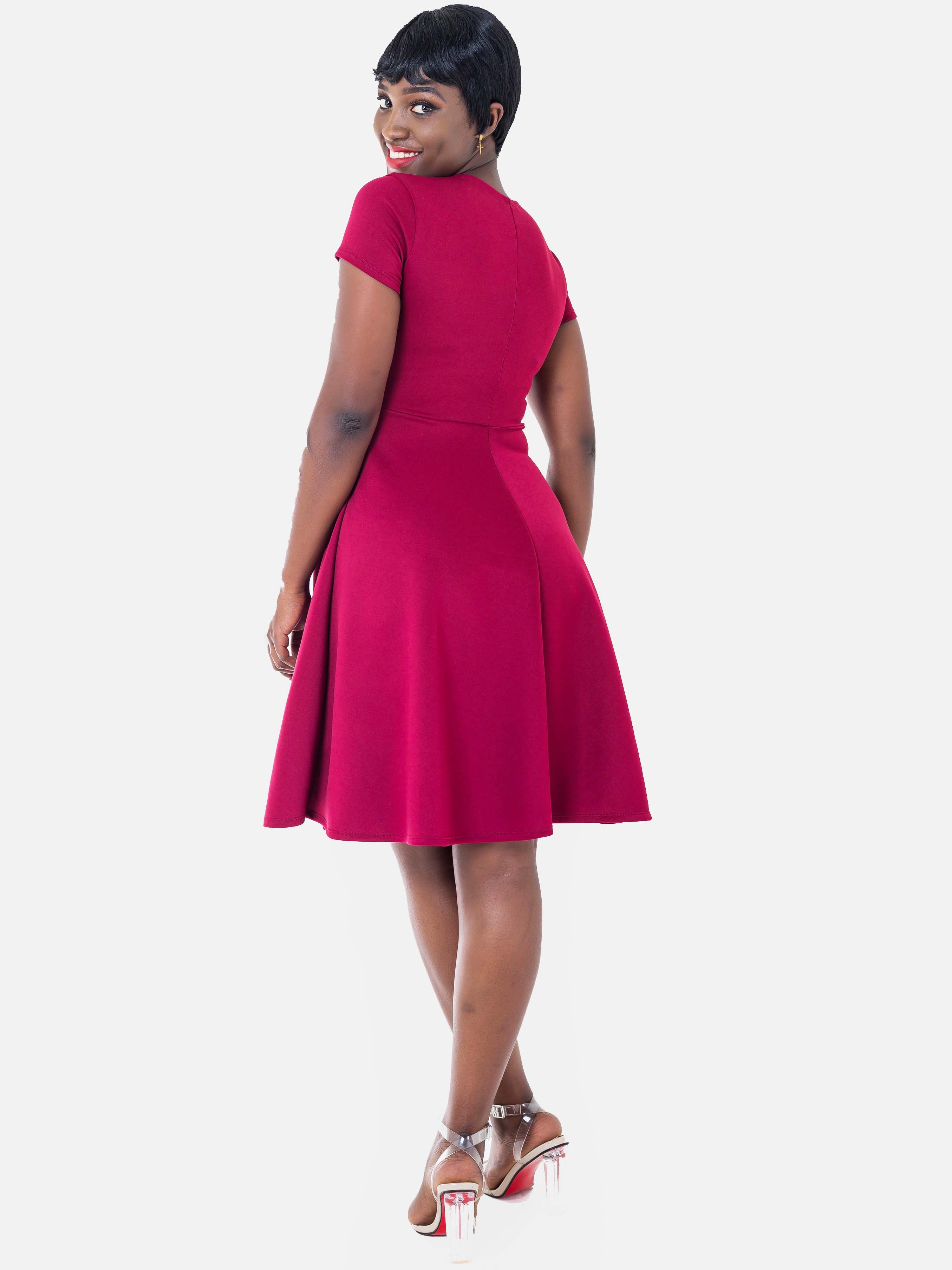 Vivo Scuba Circular Dress - Maroon