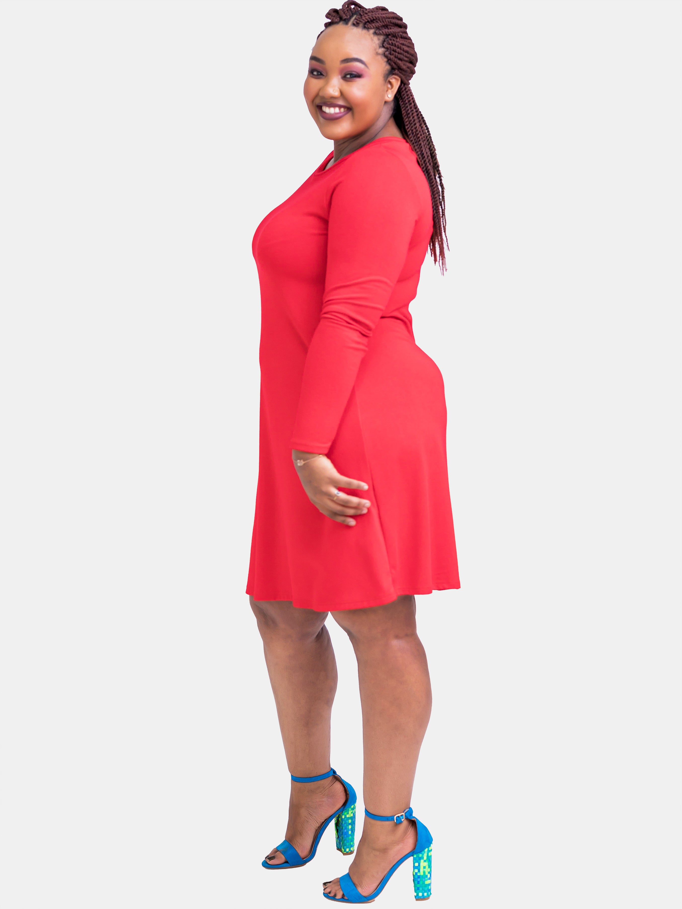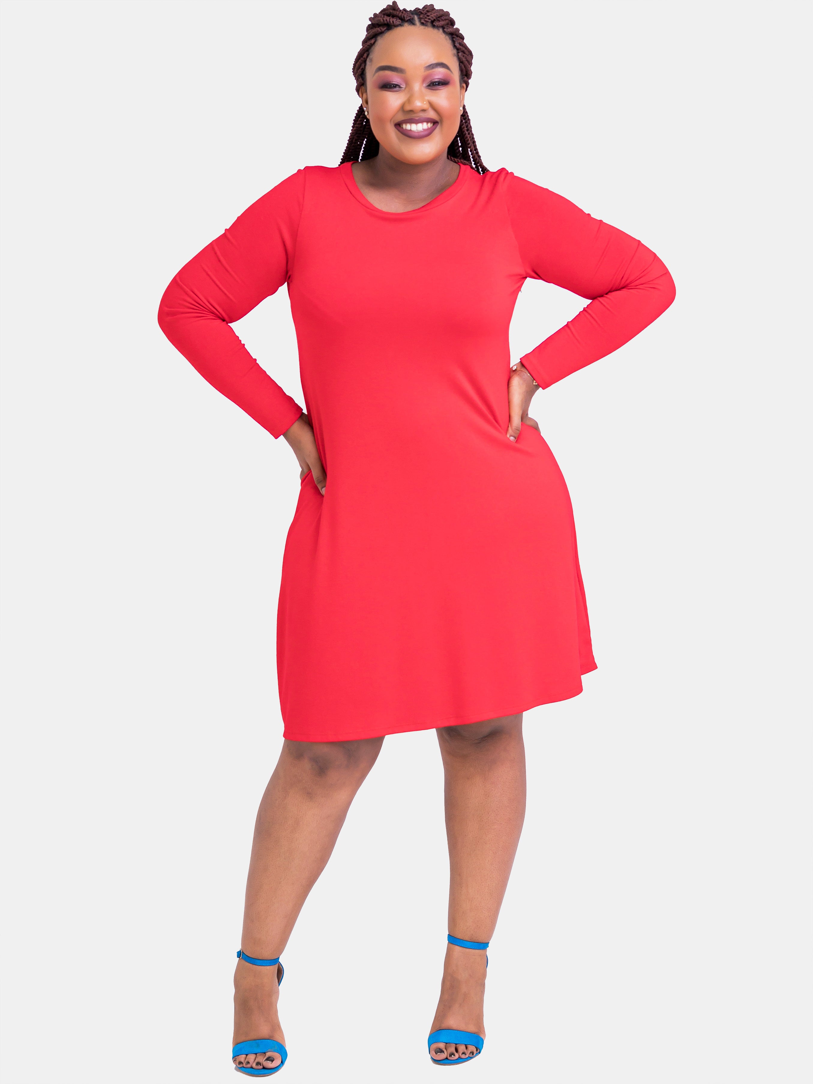 Vivo Judith A-Line Sweater Dress - Red