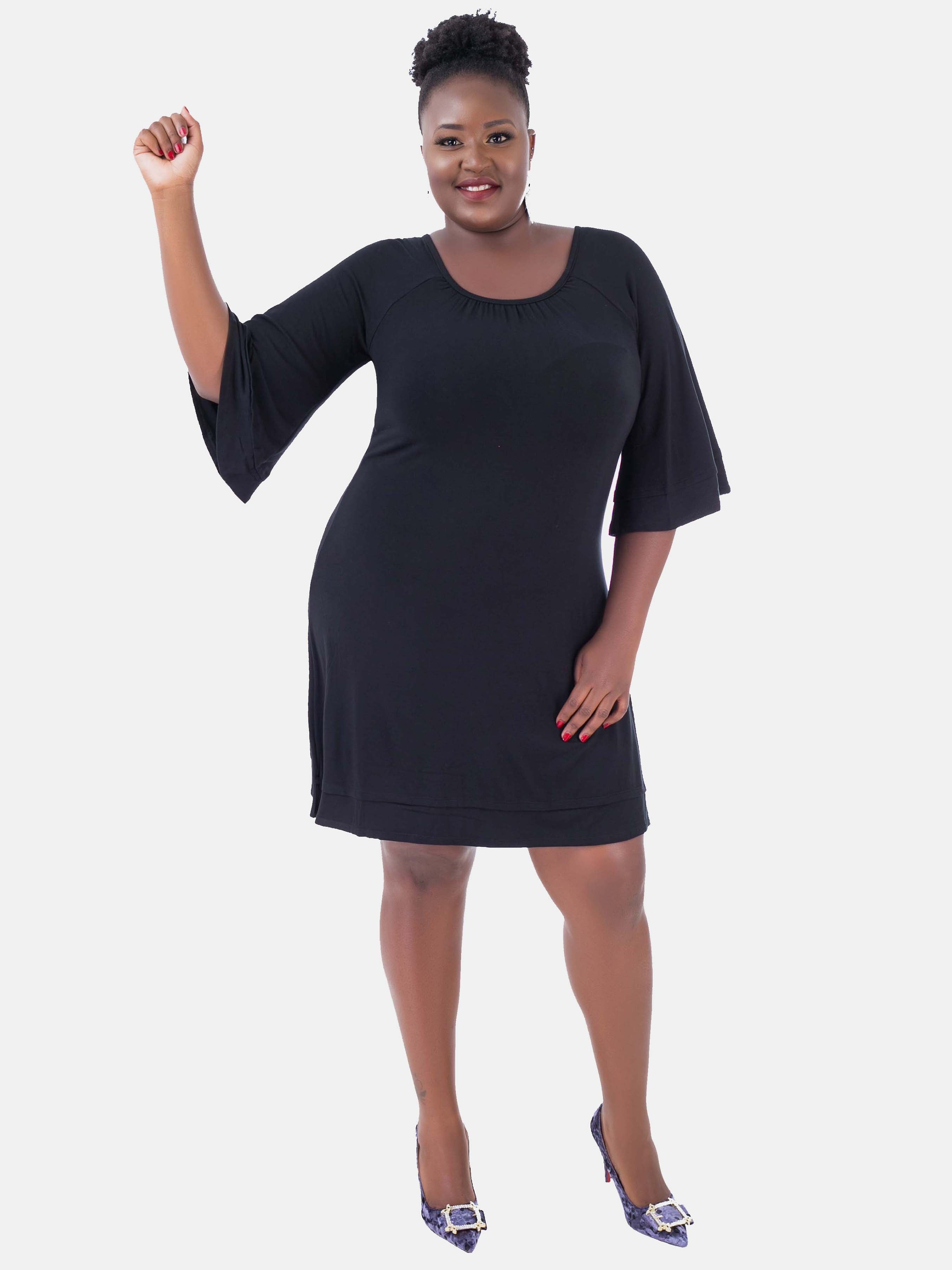Vivo Basic Dolman Jersey Dress - Black