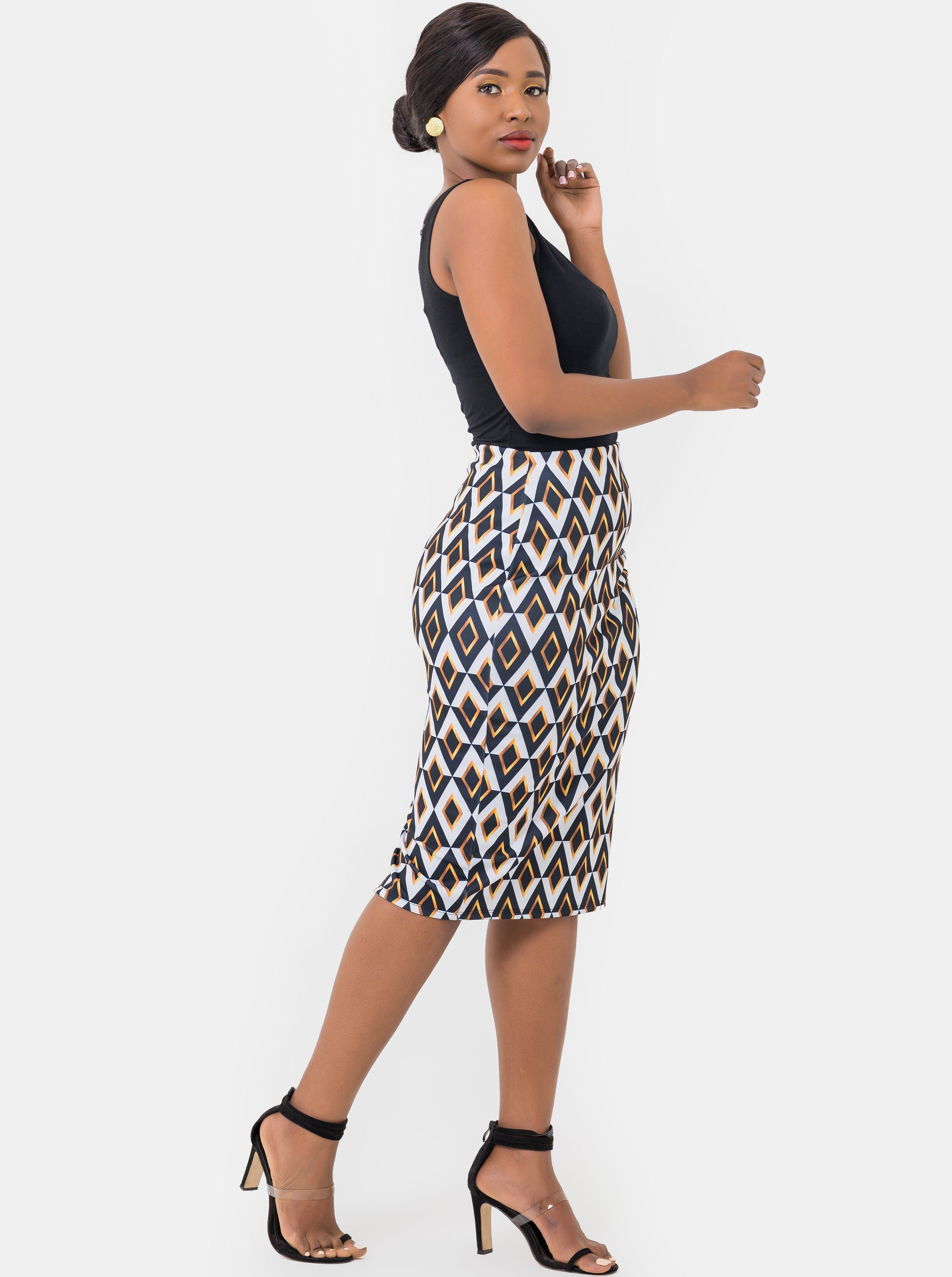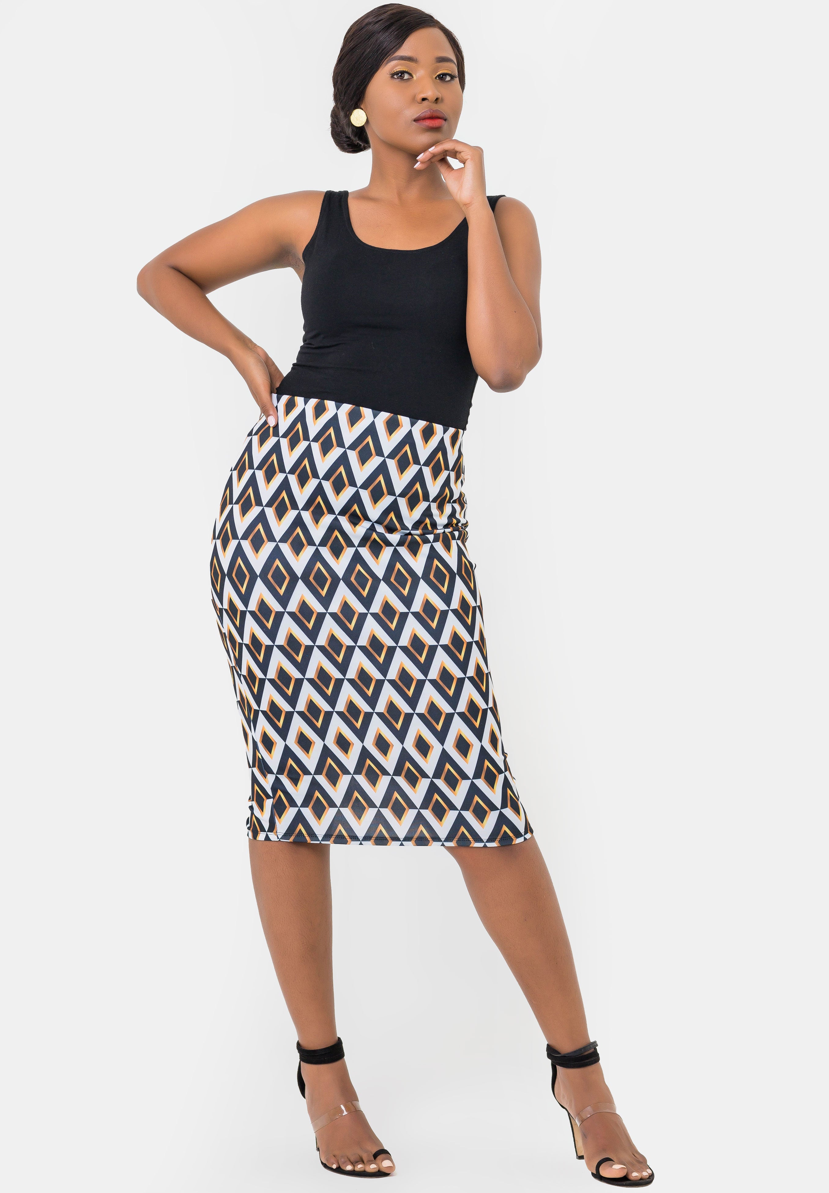 Vivo Scuba Pencil Skirt - Yellow Print