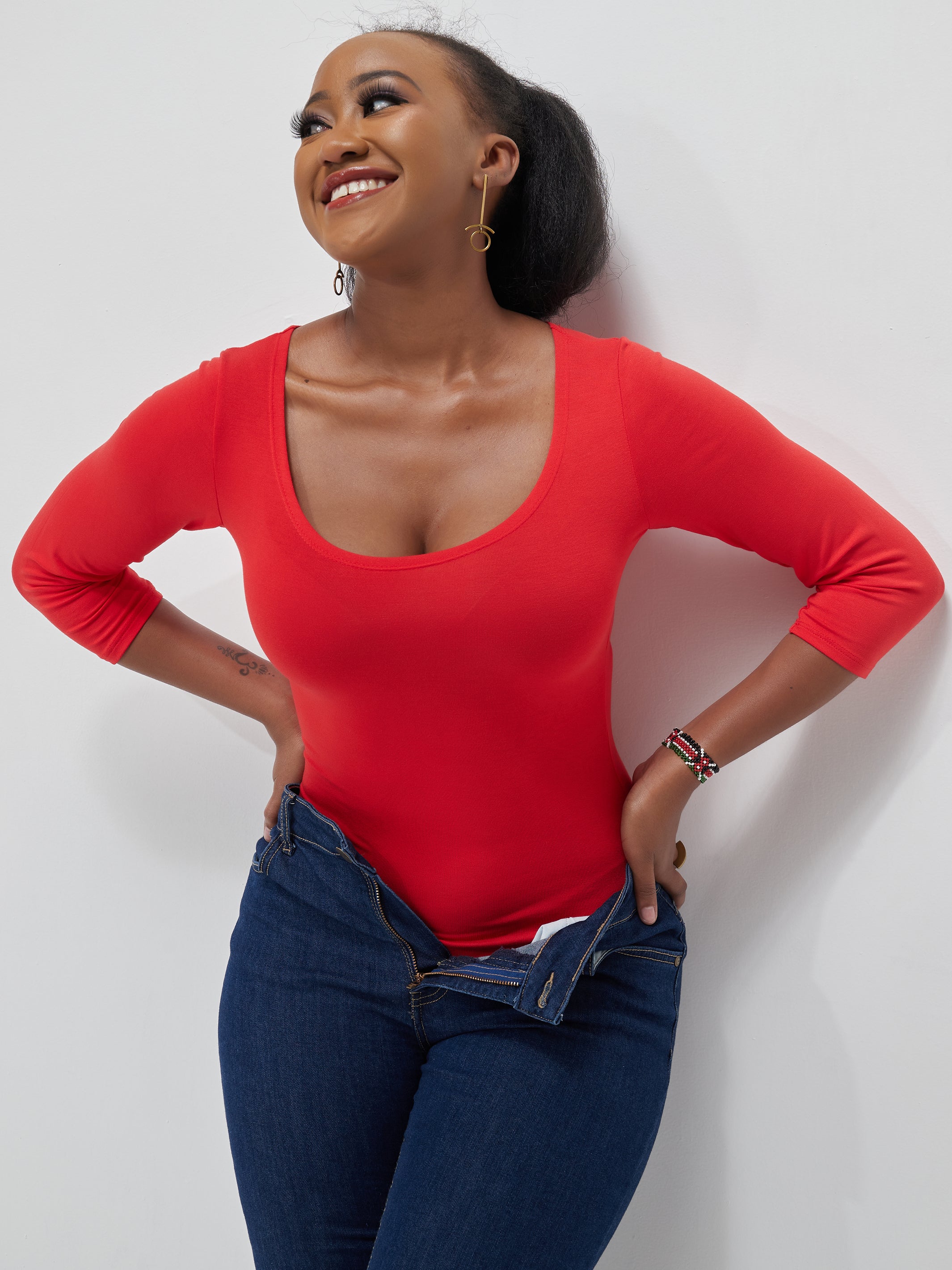 Vivo Basic 3/4 Sleeved Bodysuit - Red