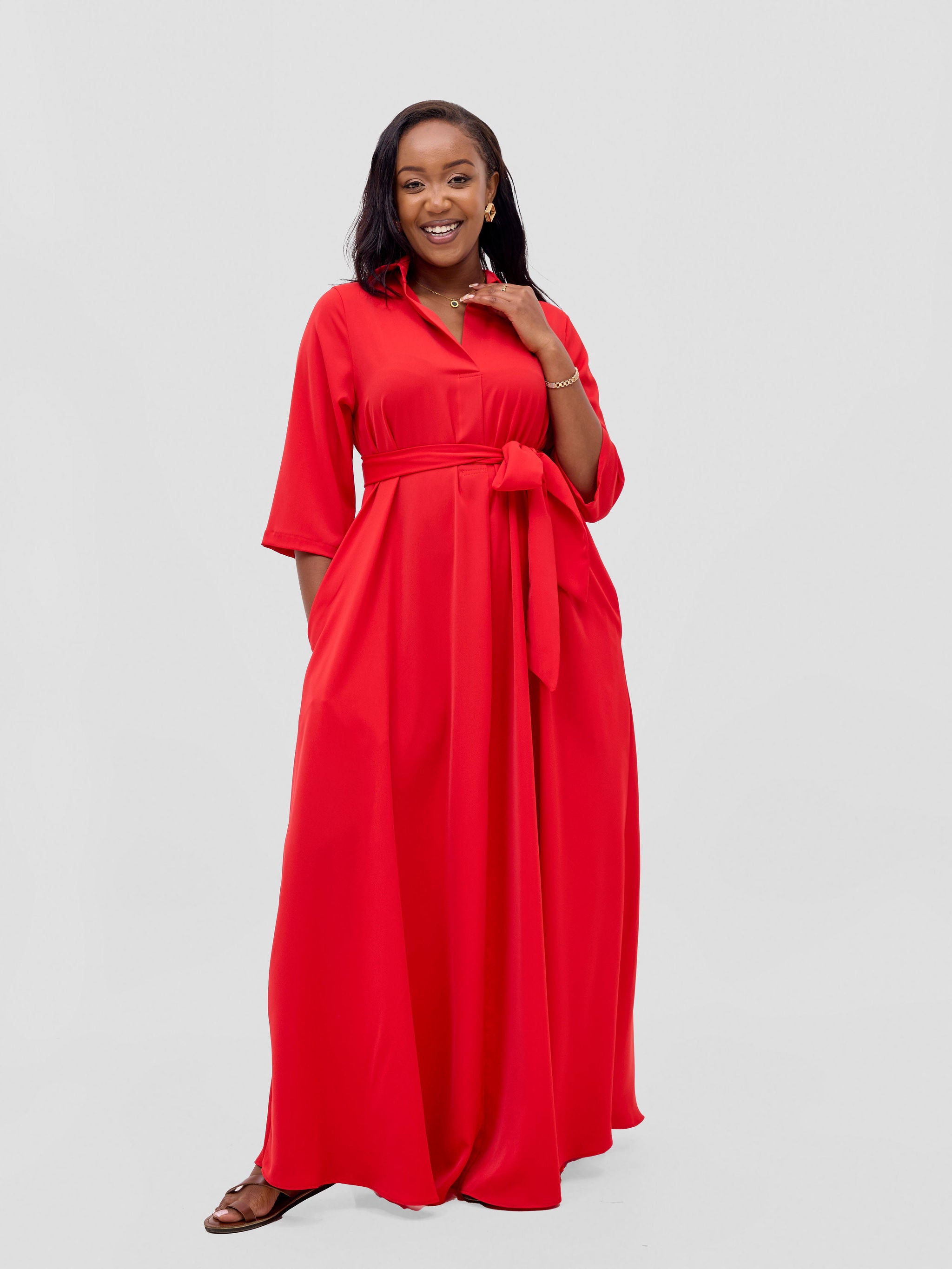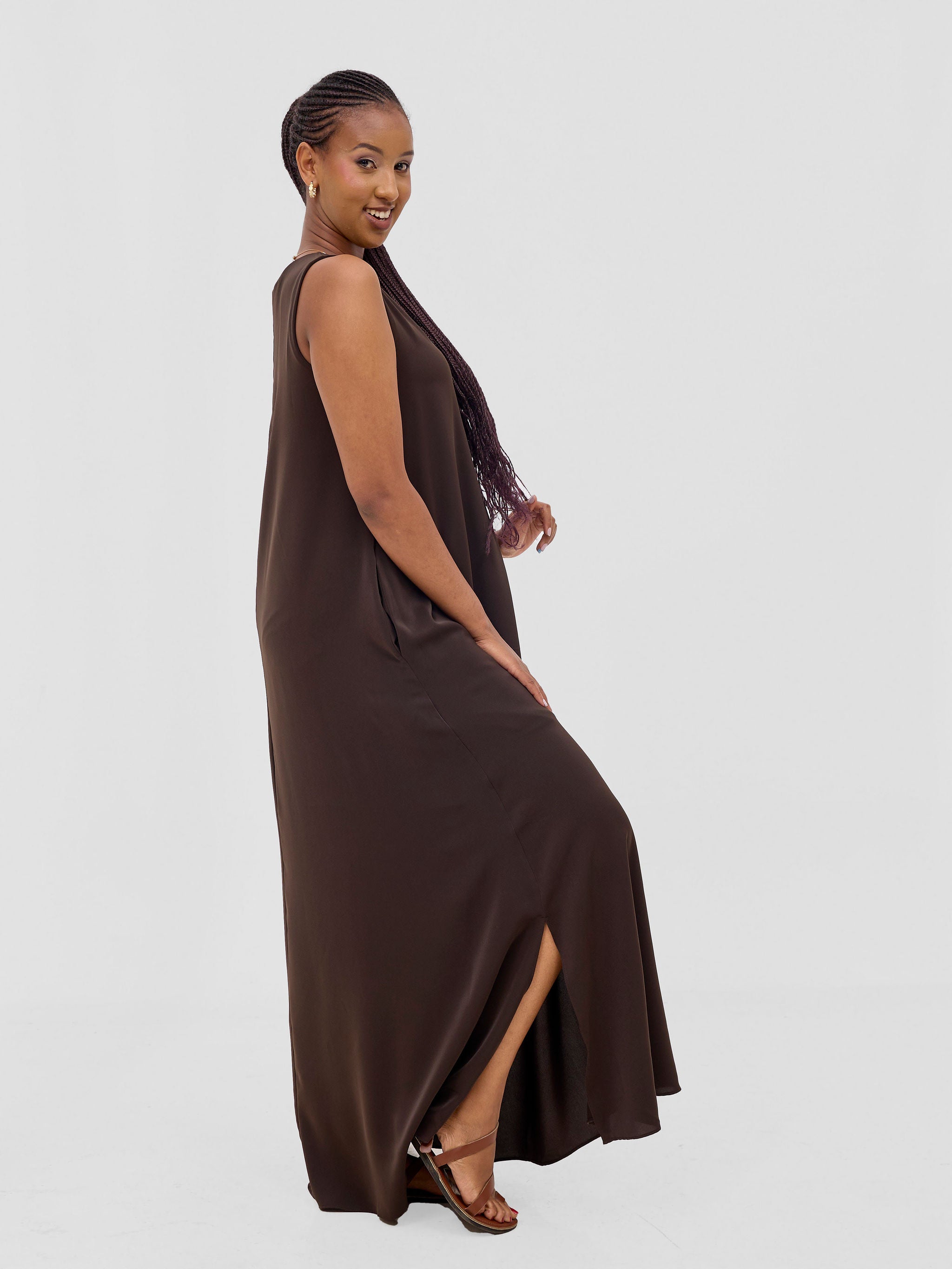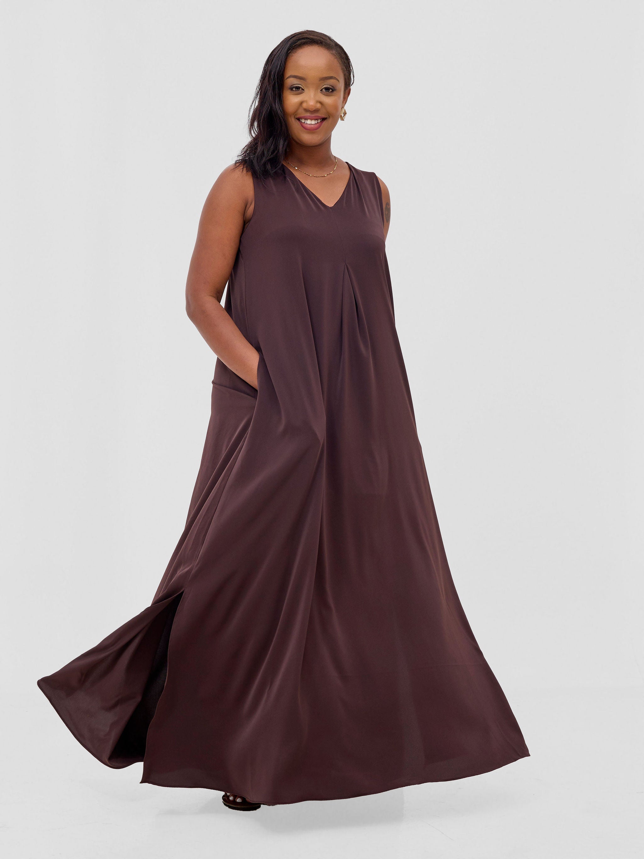 Vivo Ava Front Pleat Maxi Dress - Brown