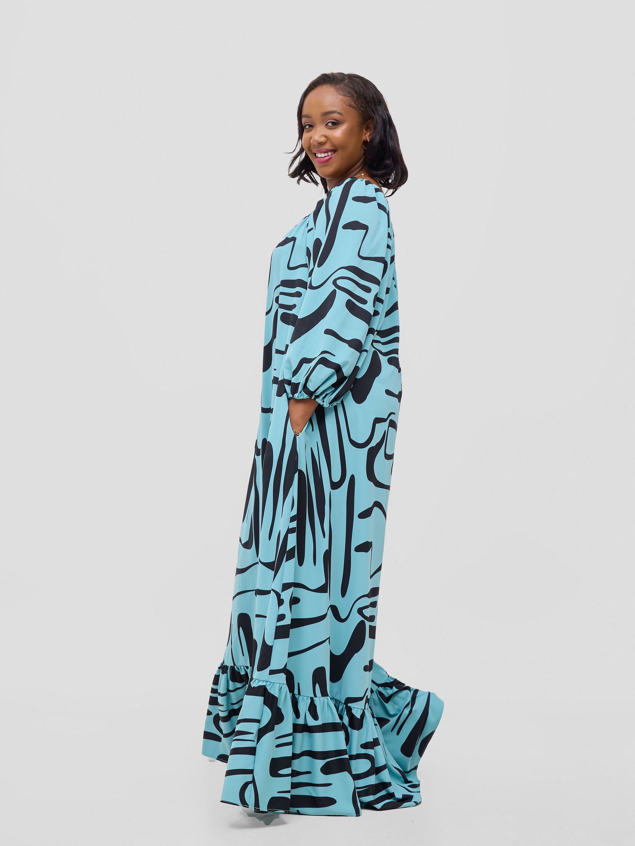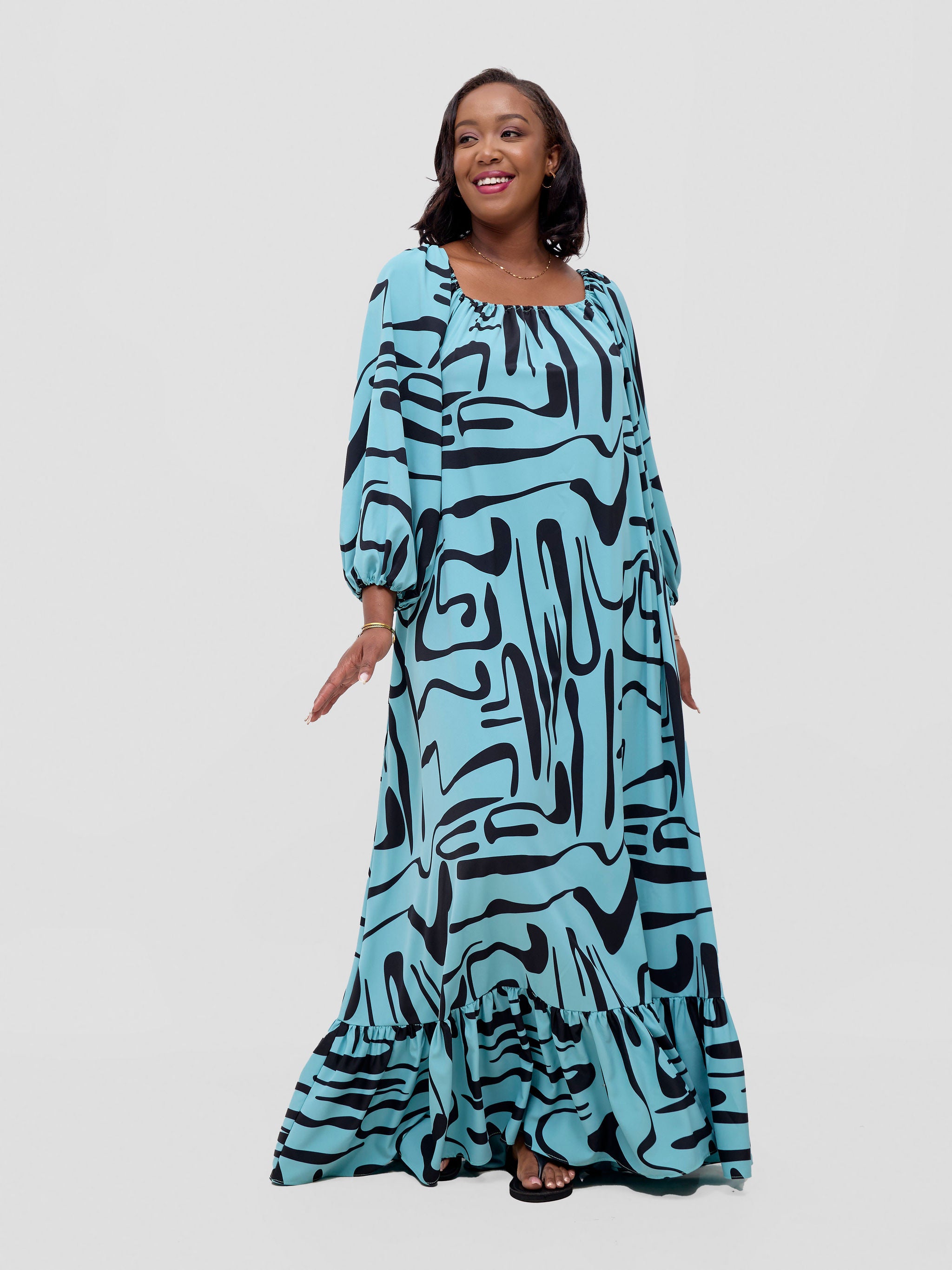 Vivo Serwa Square Neck Maxi Dress - Navy