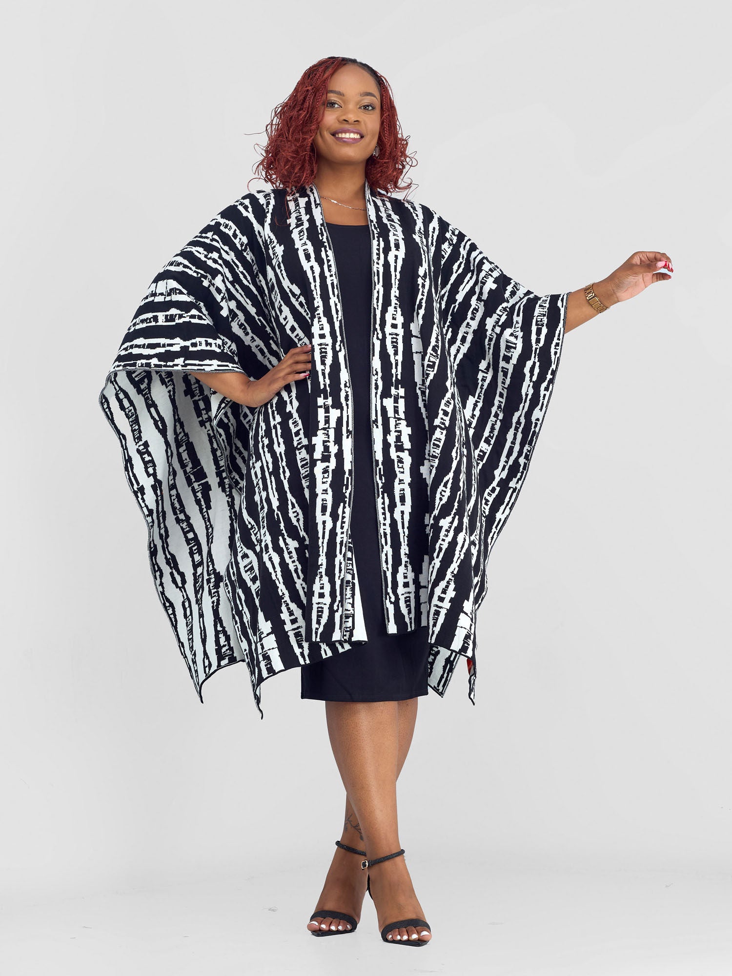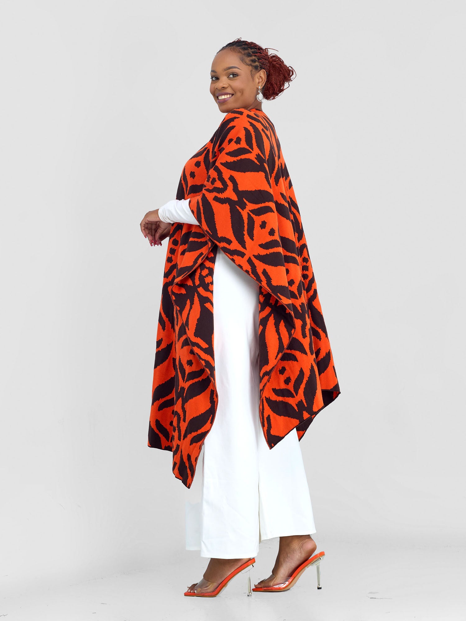 Vivo Reversible Poncho without Fringes - Mustard / Chocolate Brown Samba Print